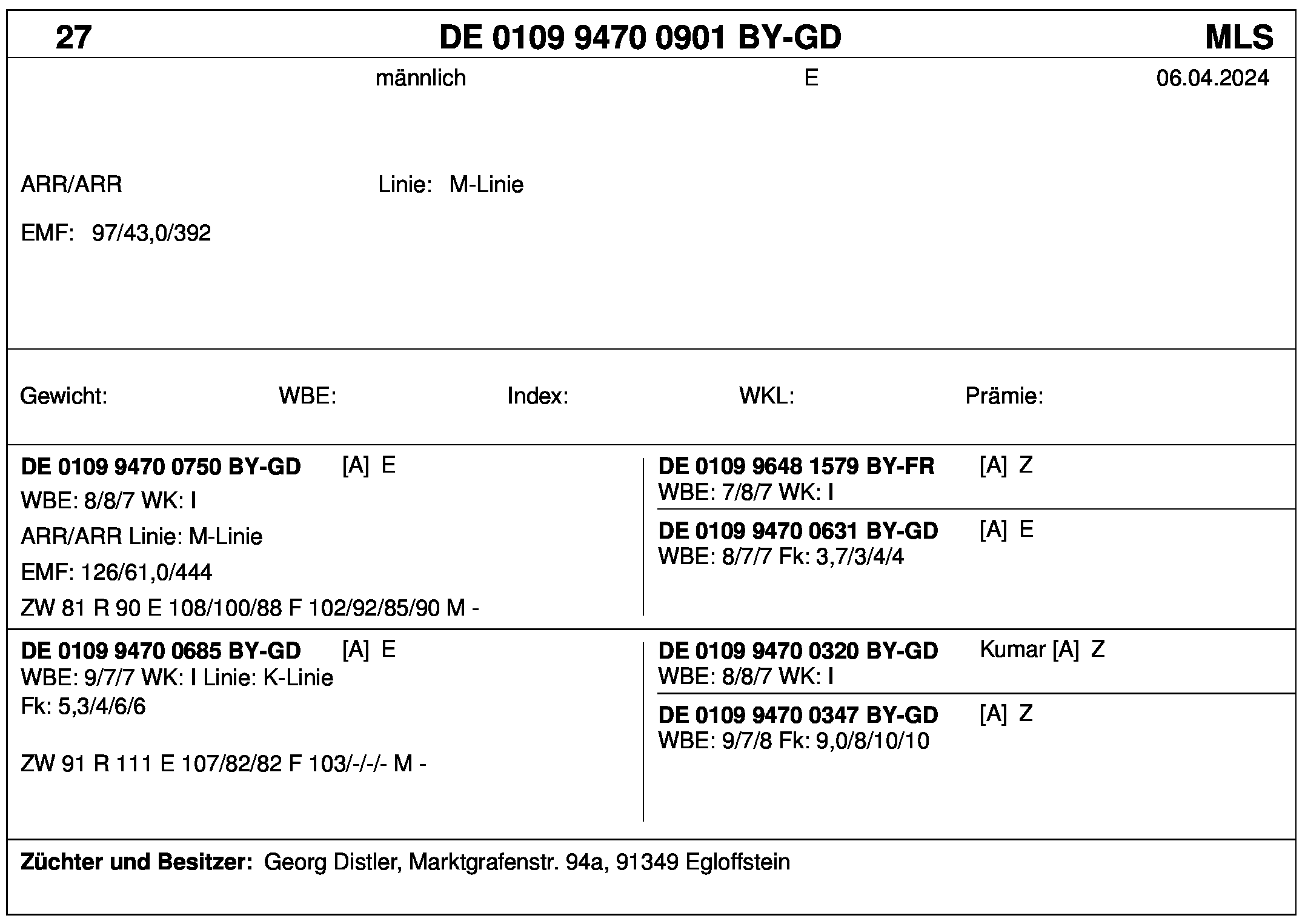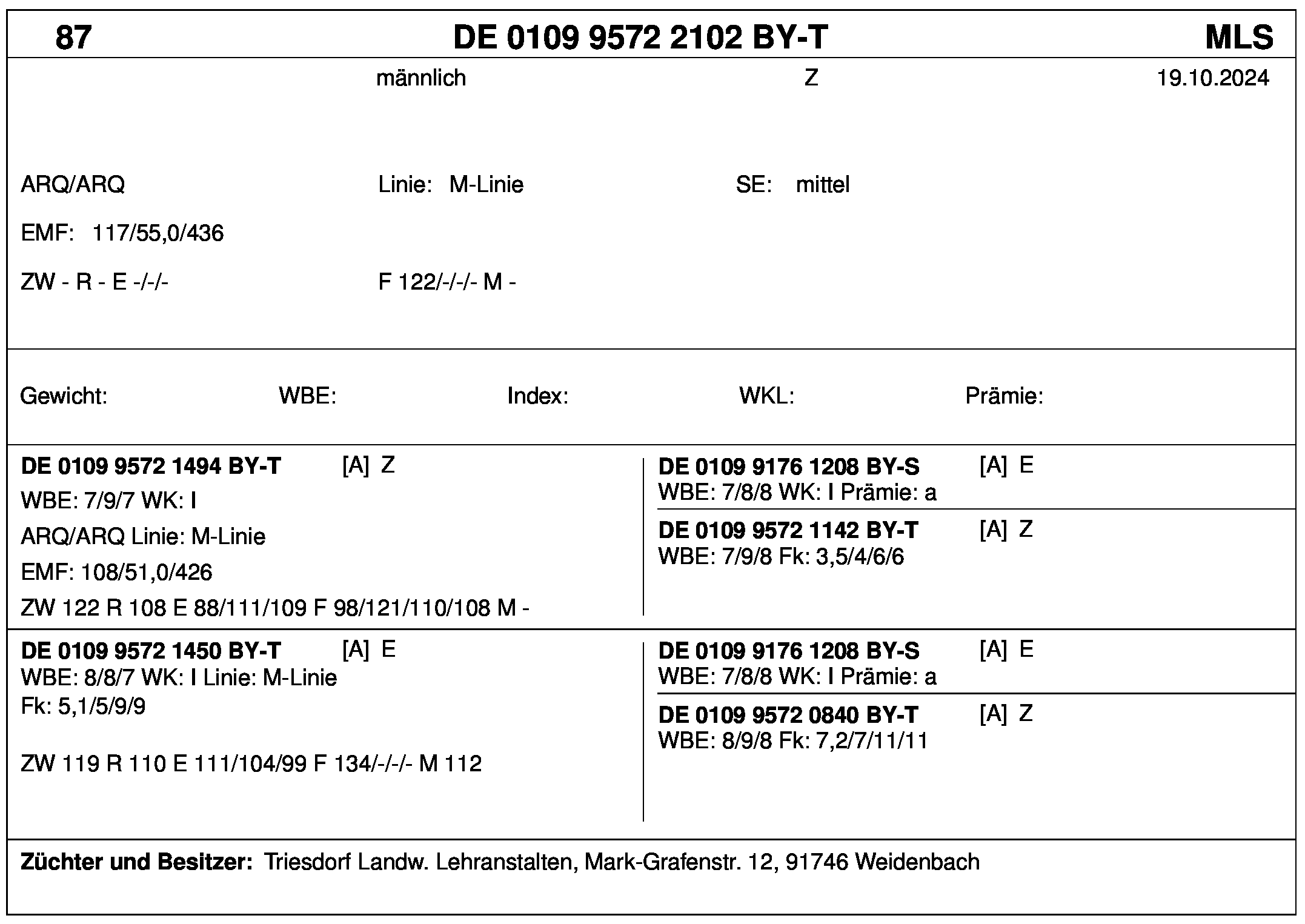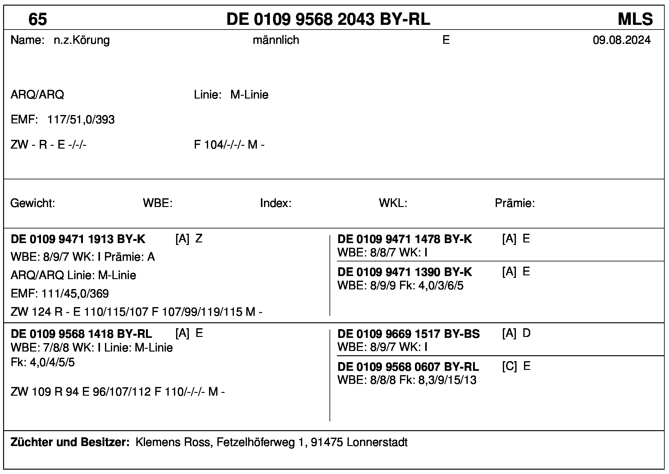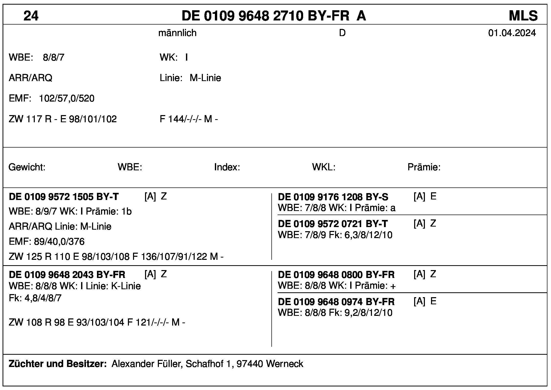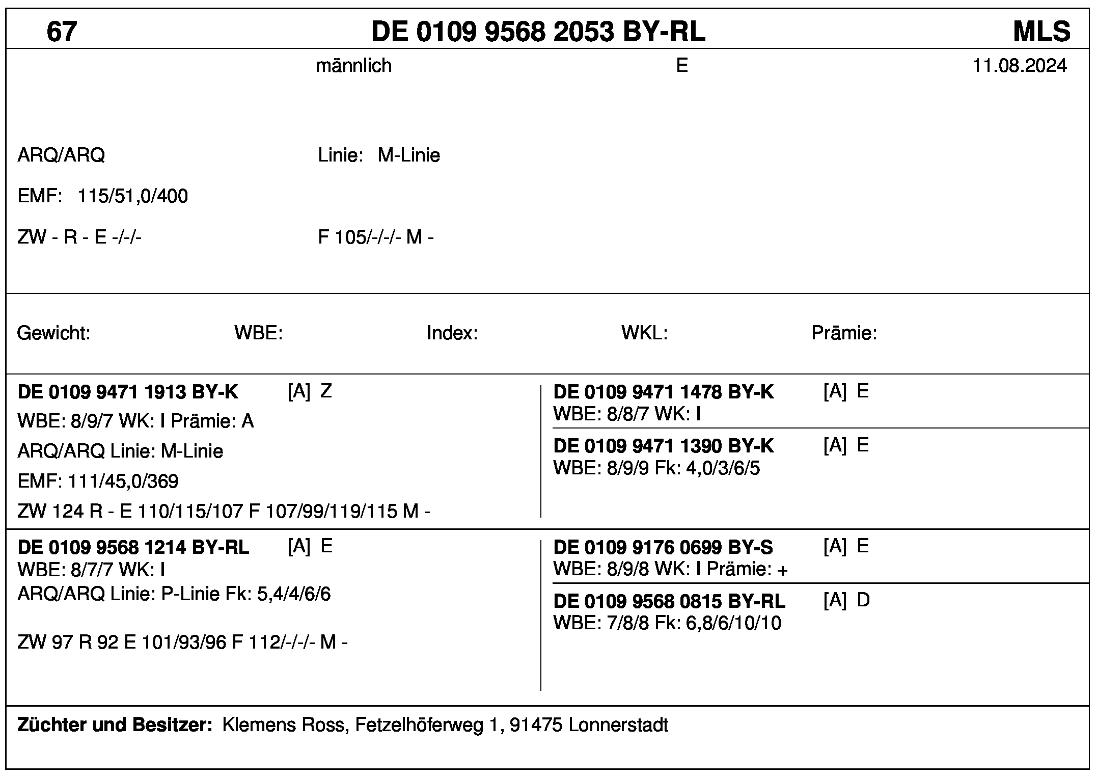 *** nicht für Herdbuchzüchter, nicht stationsgeprüft