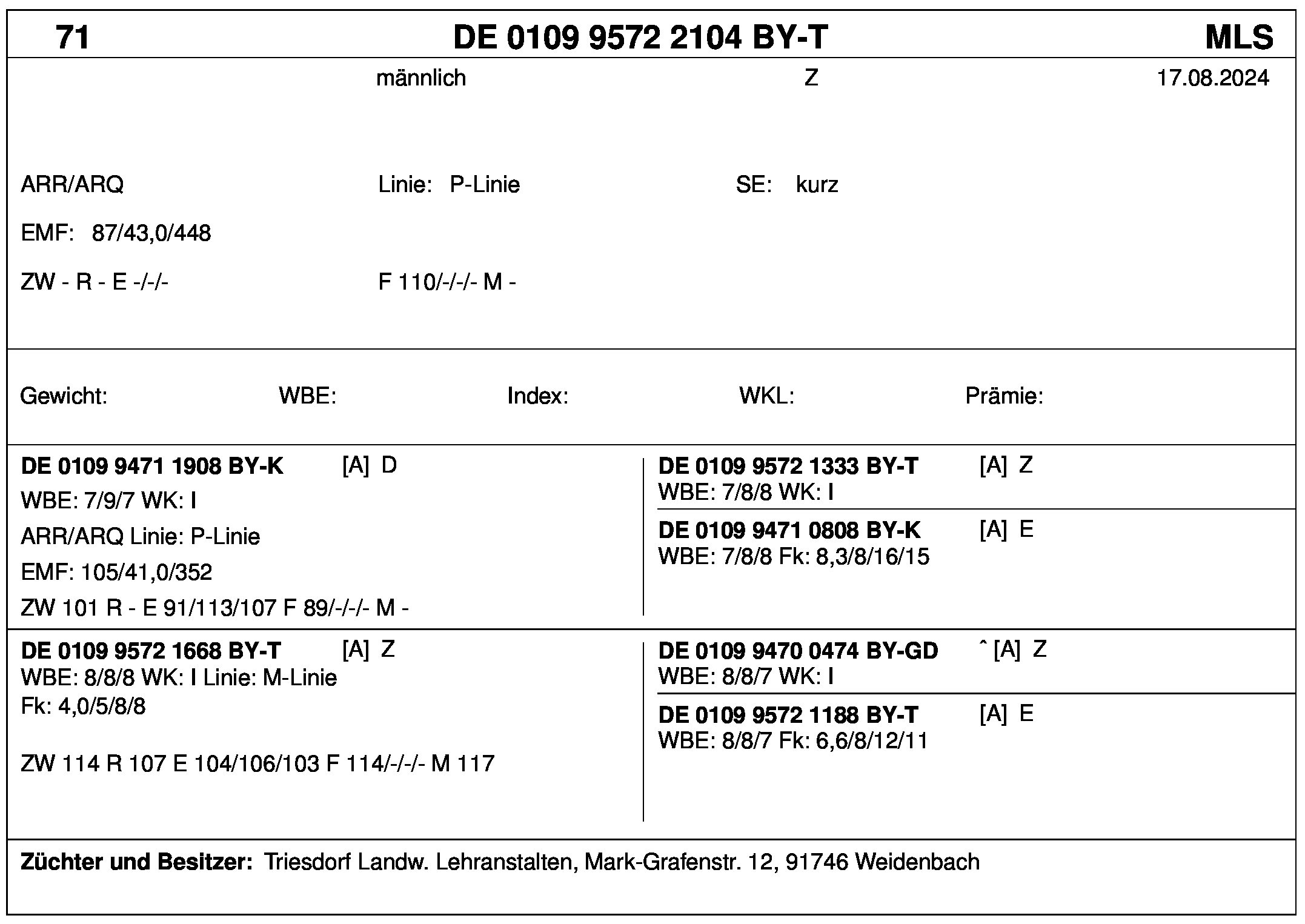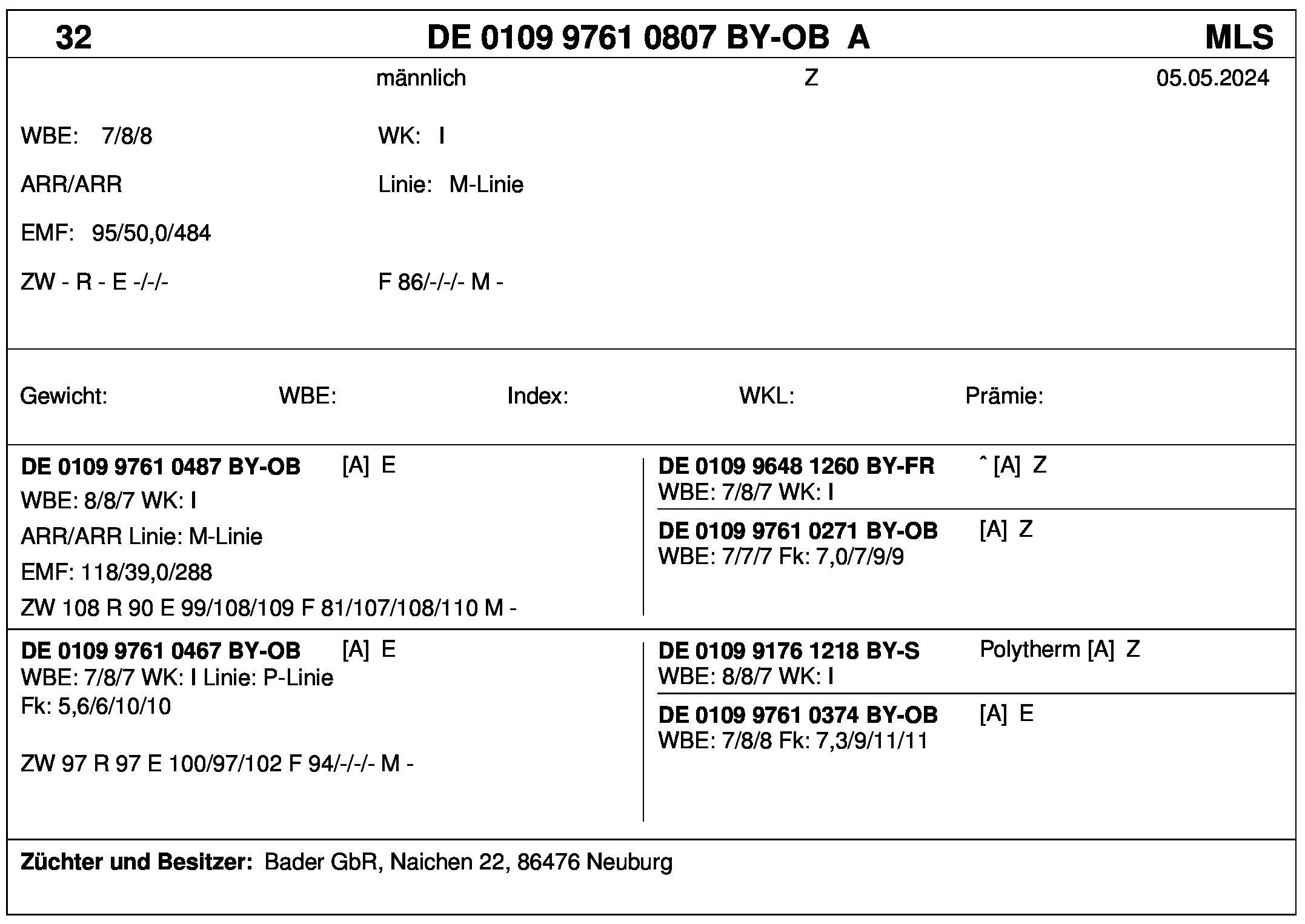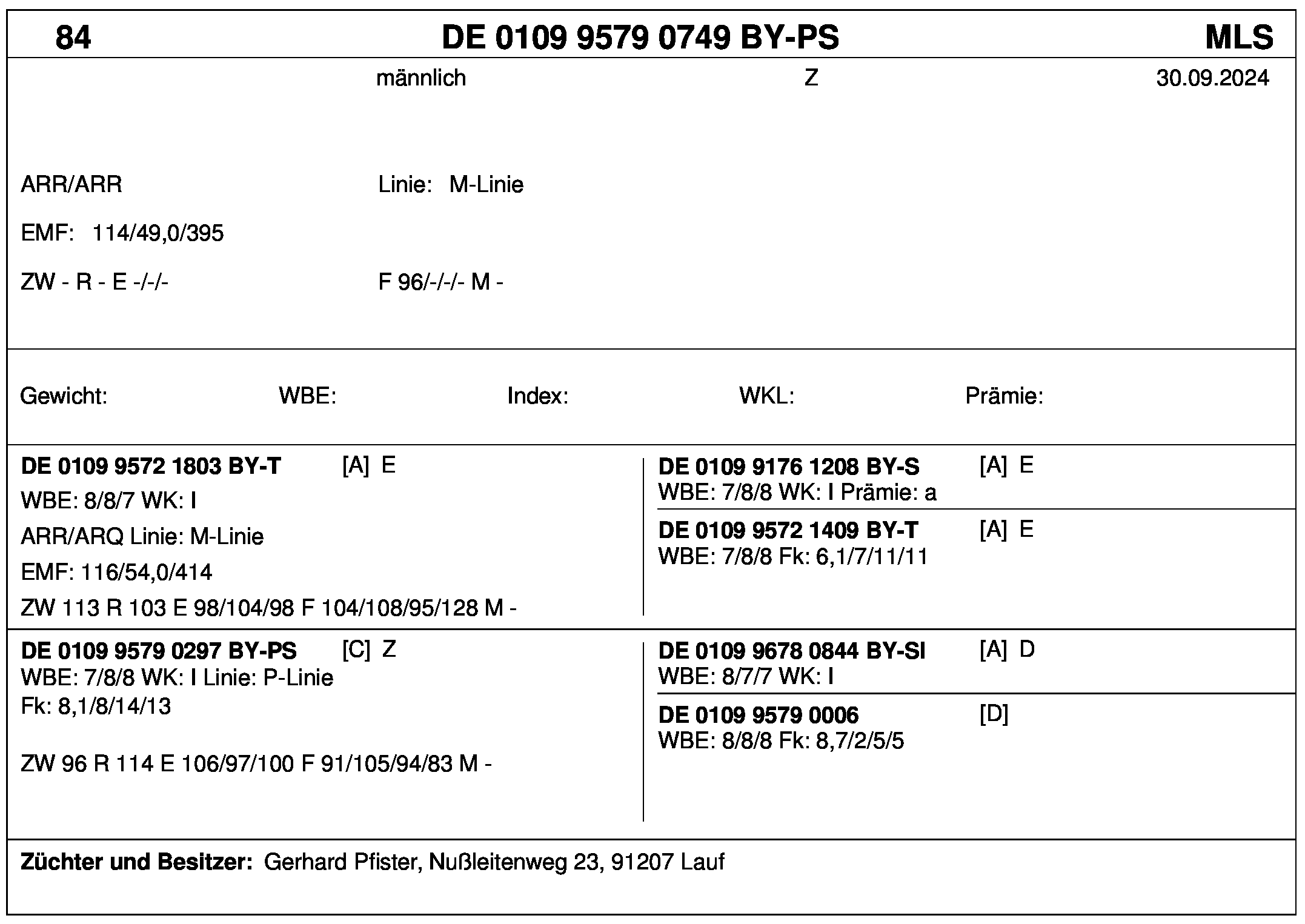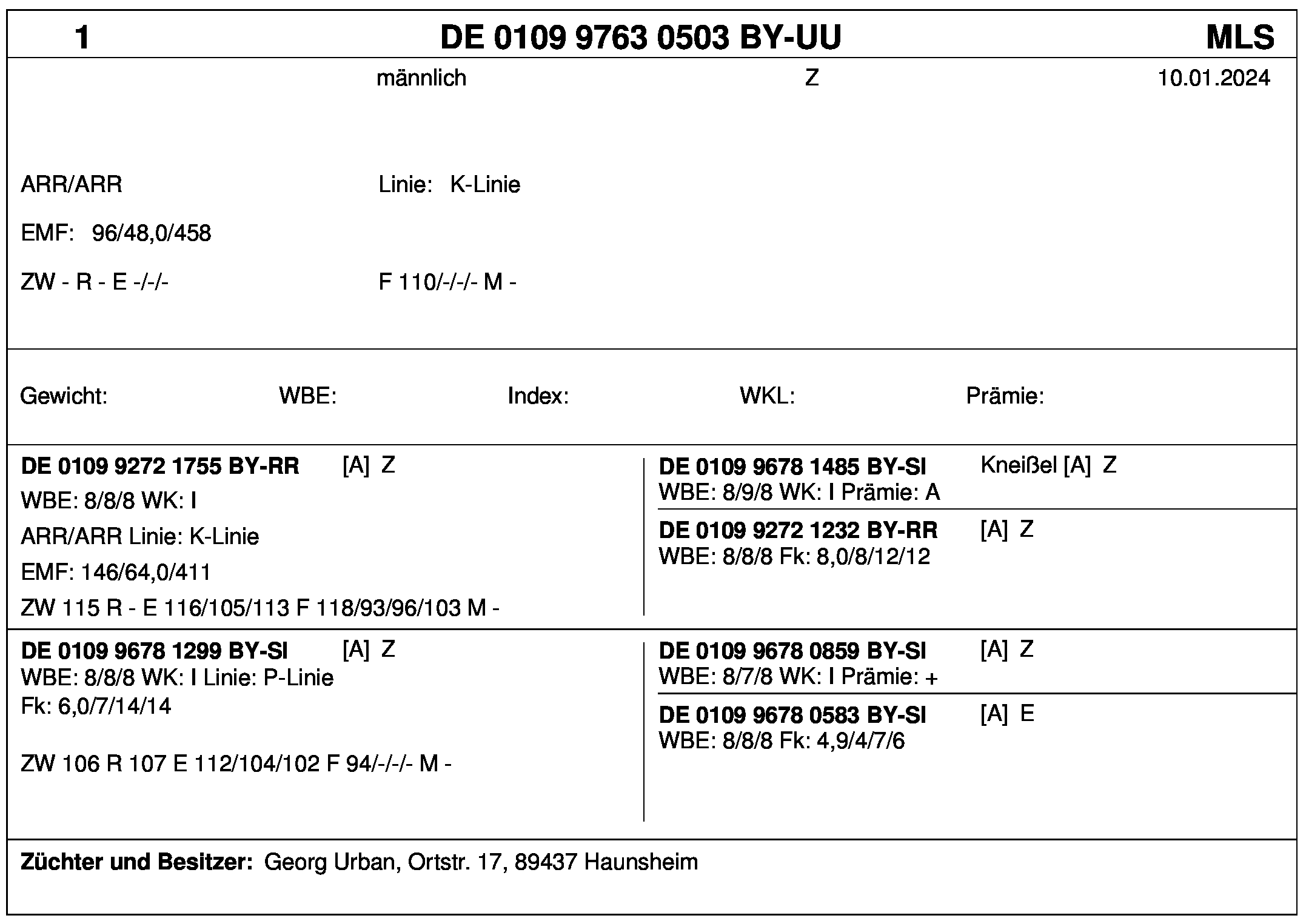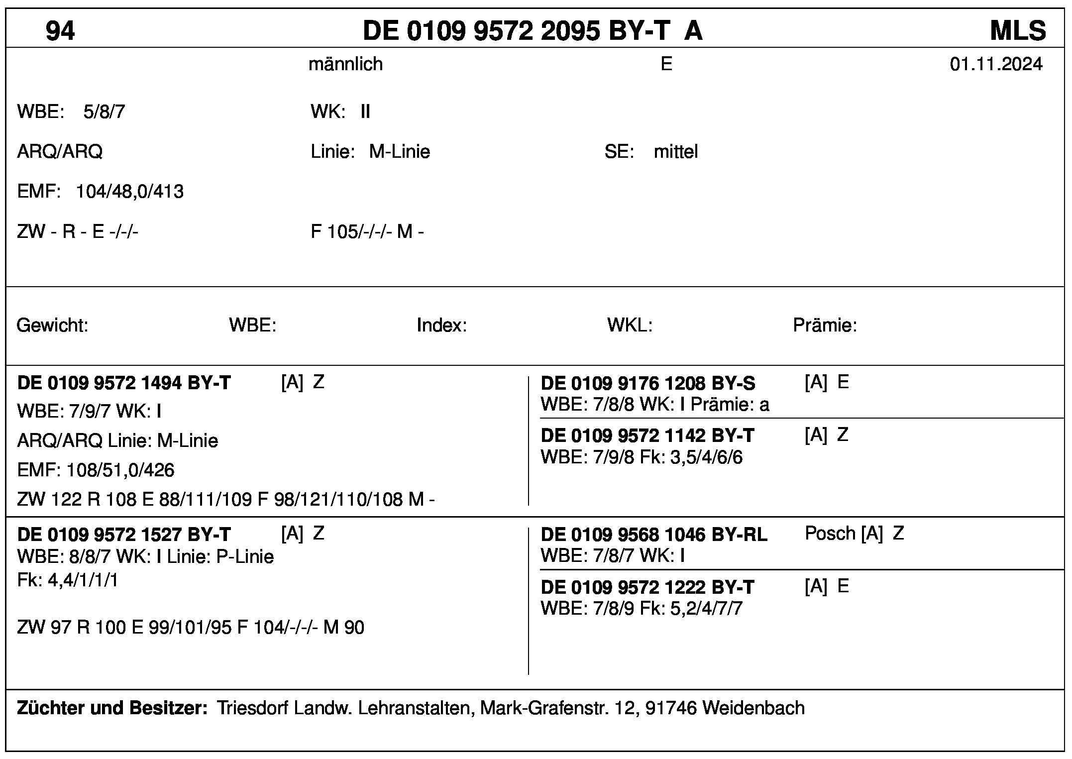 *** nicht für Herdbuchzüchter, nicht stationsgeprüft
