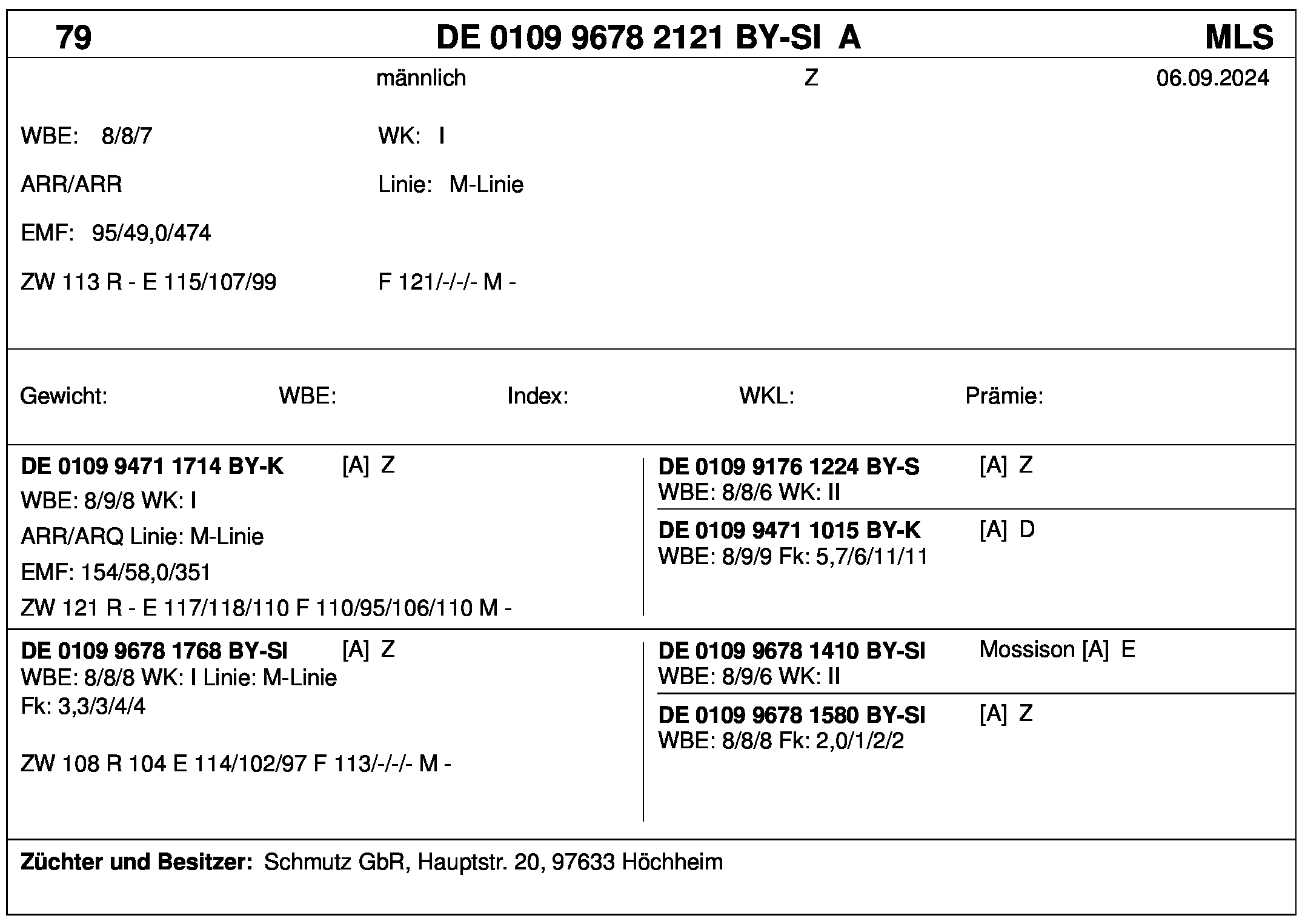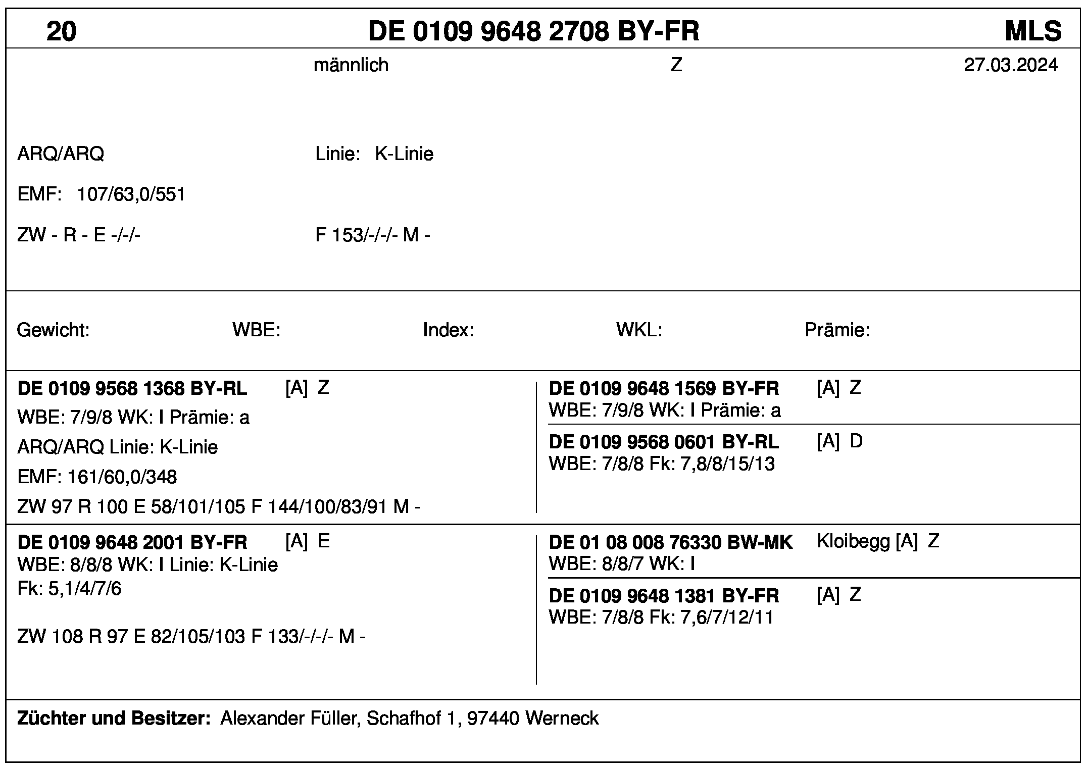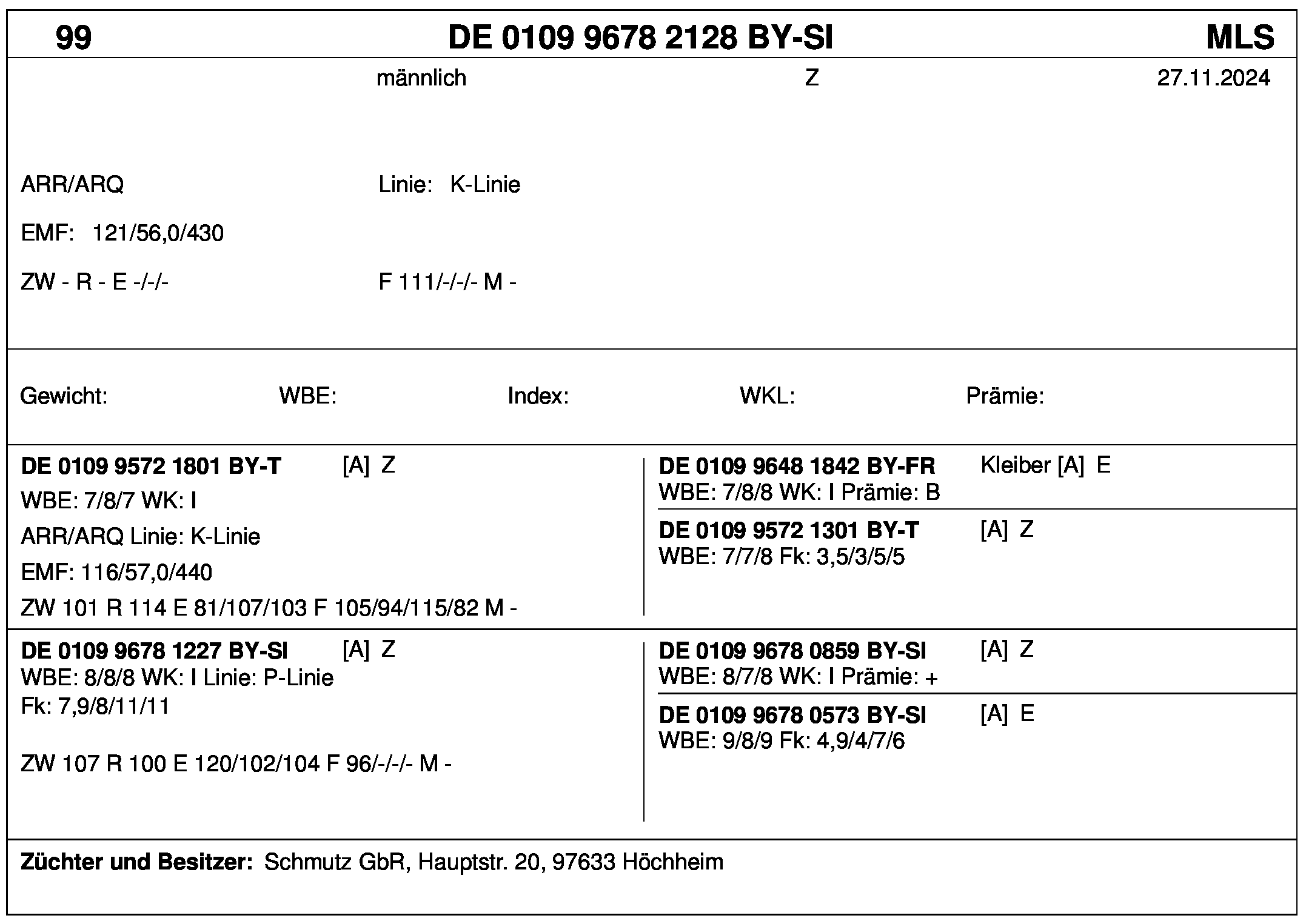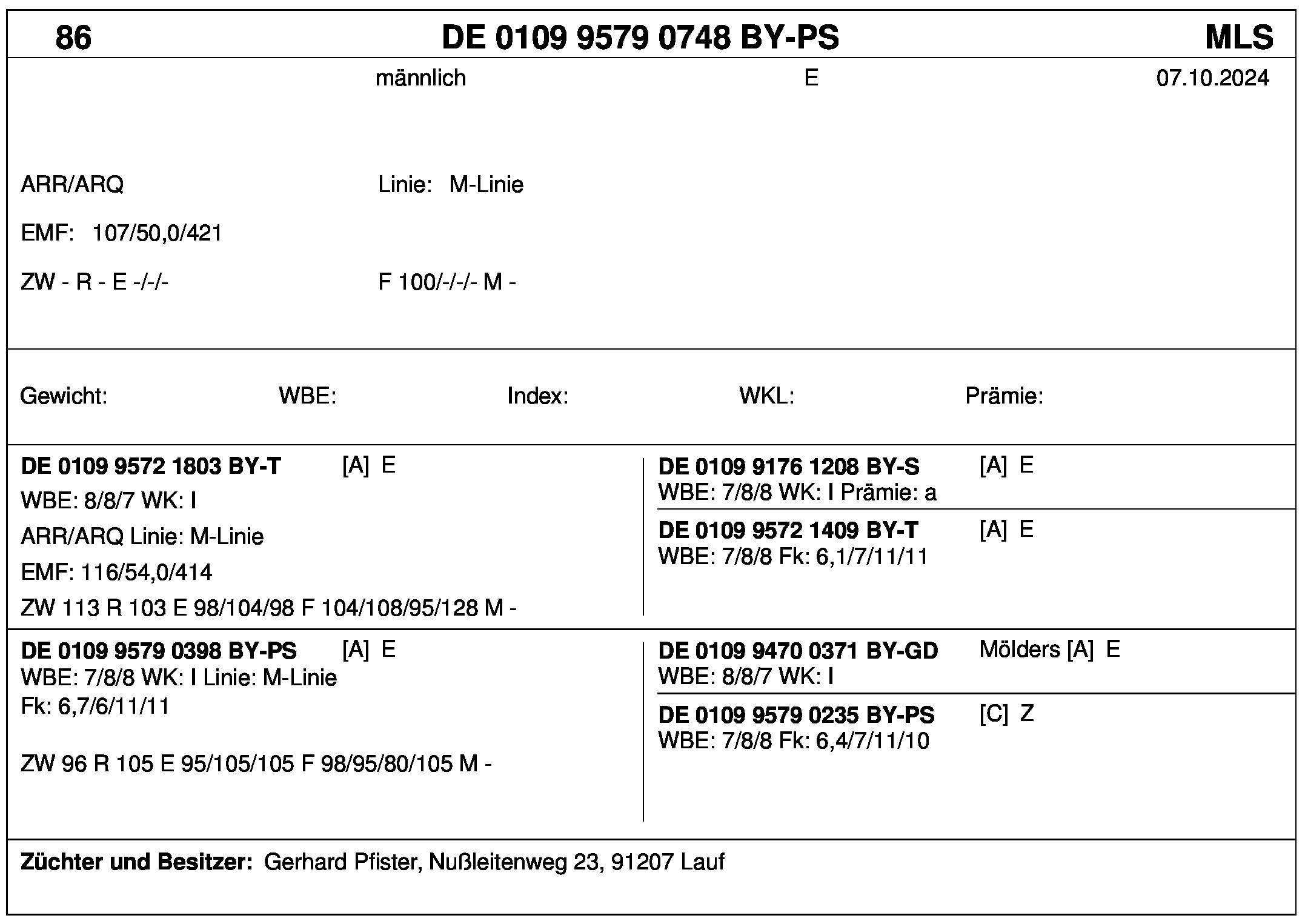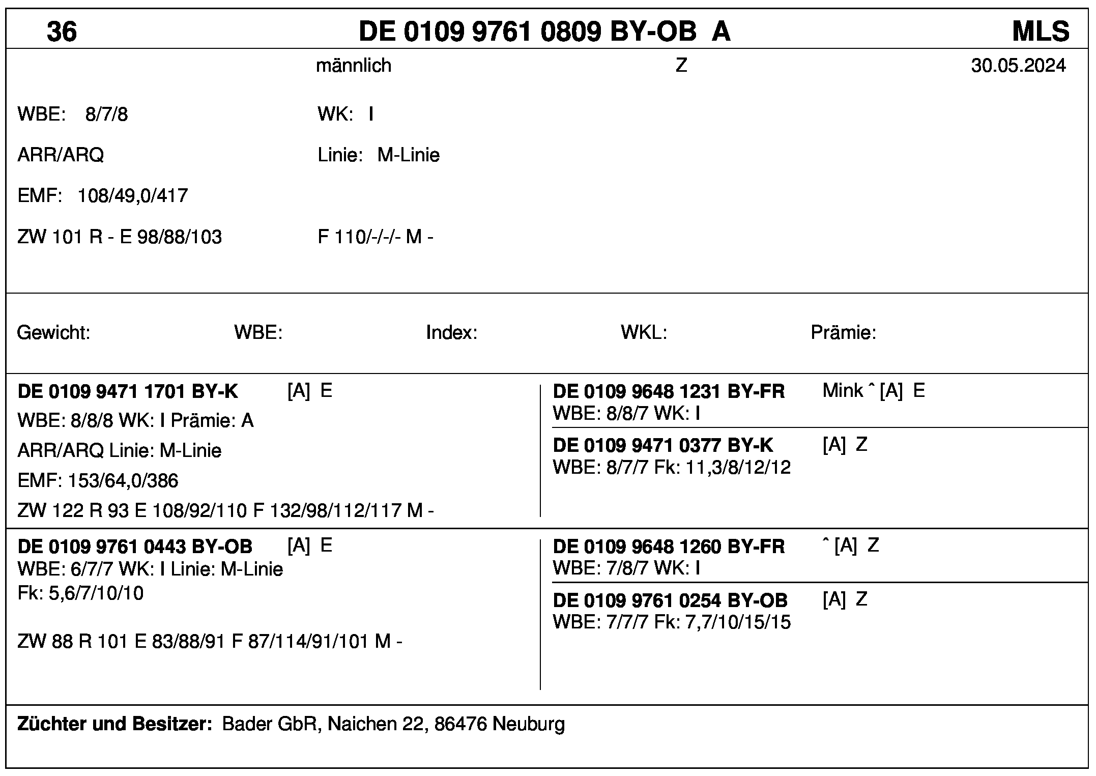 *** nicht für Herdbuchzüchter, nicht stationsgeprüft