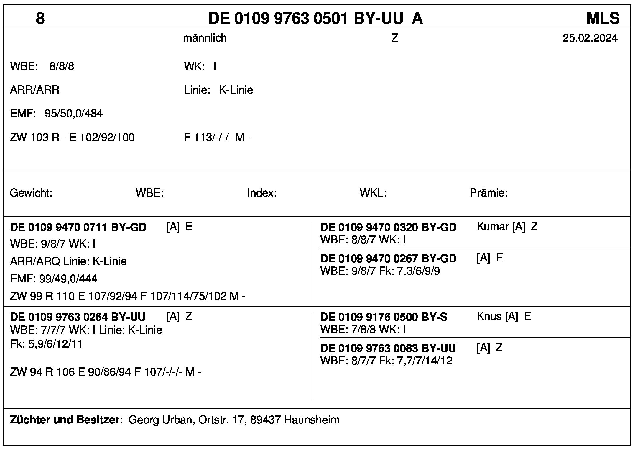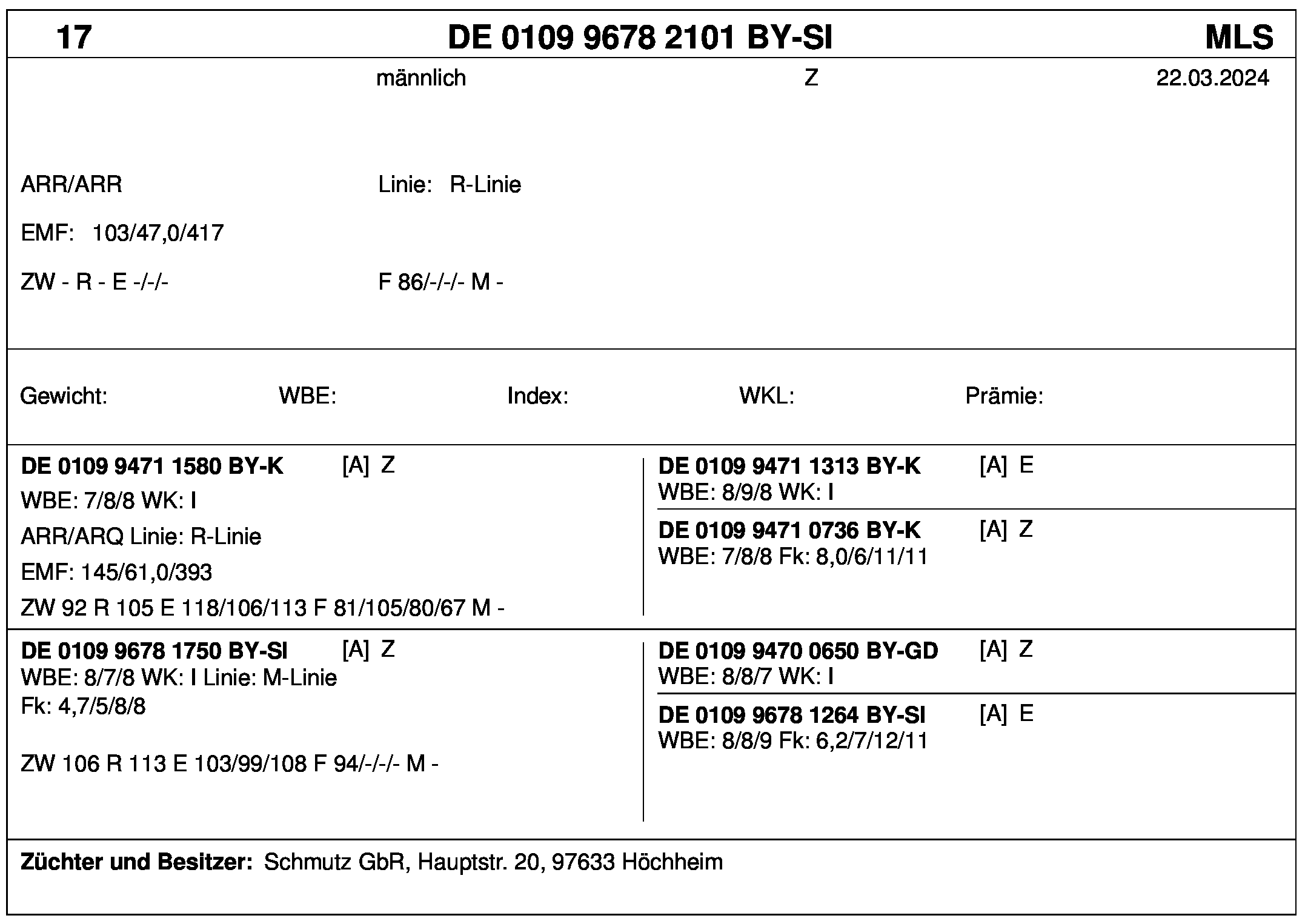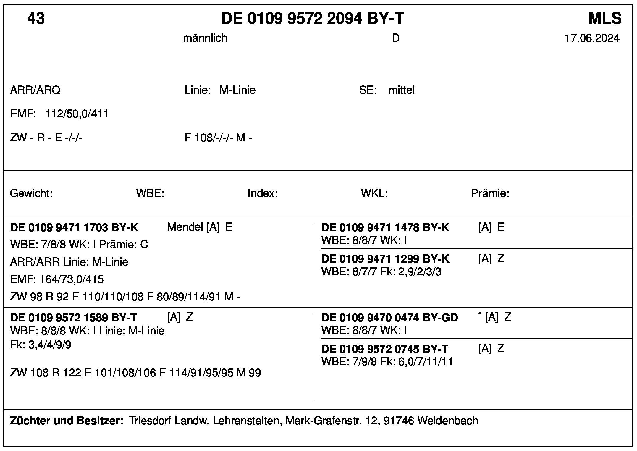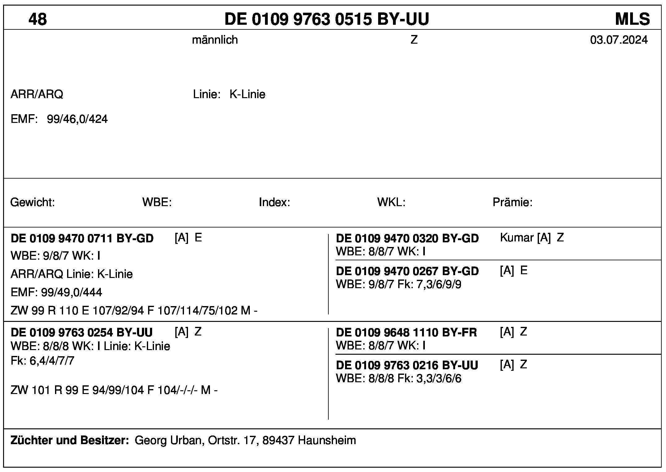 *** nicht für Herdbuchzüchter, nicht stationsgeprüft