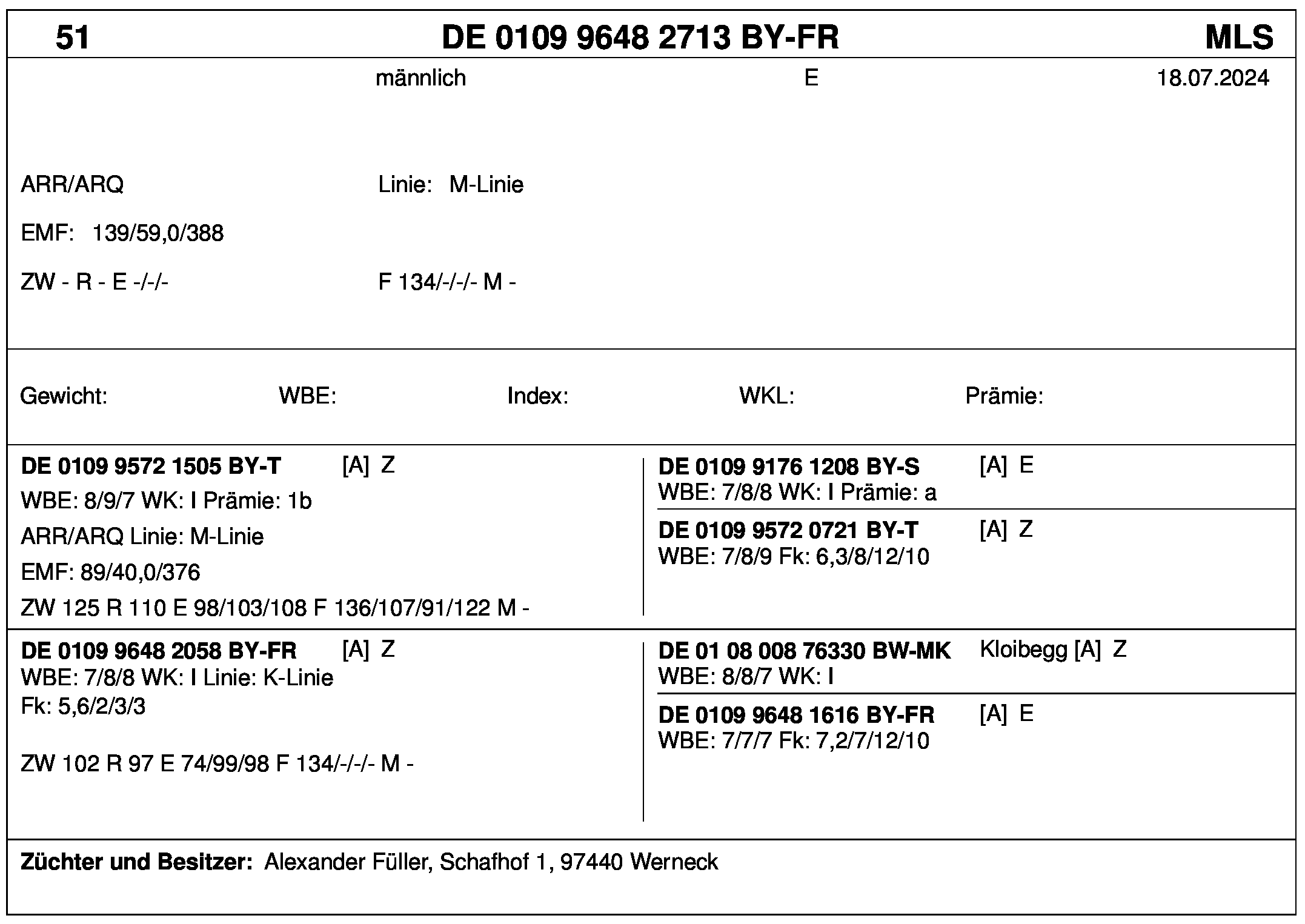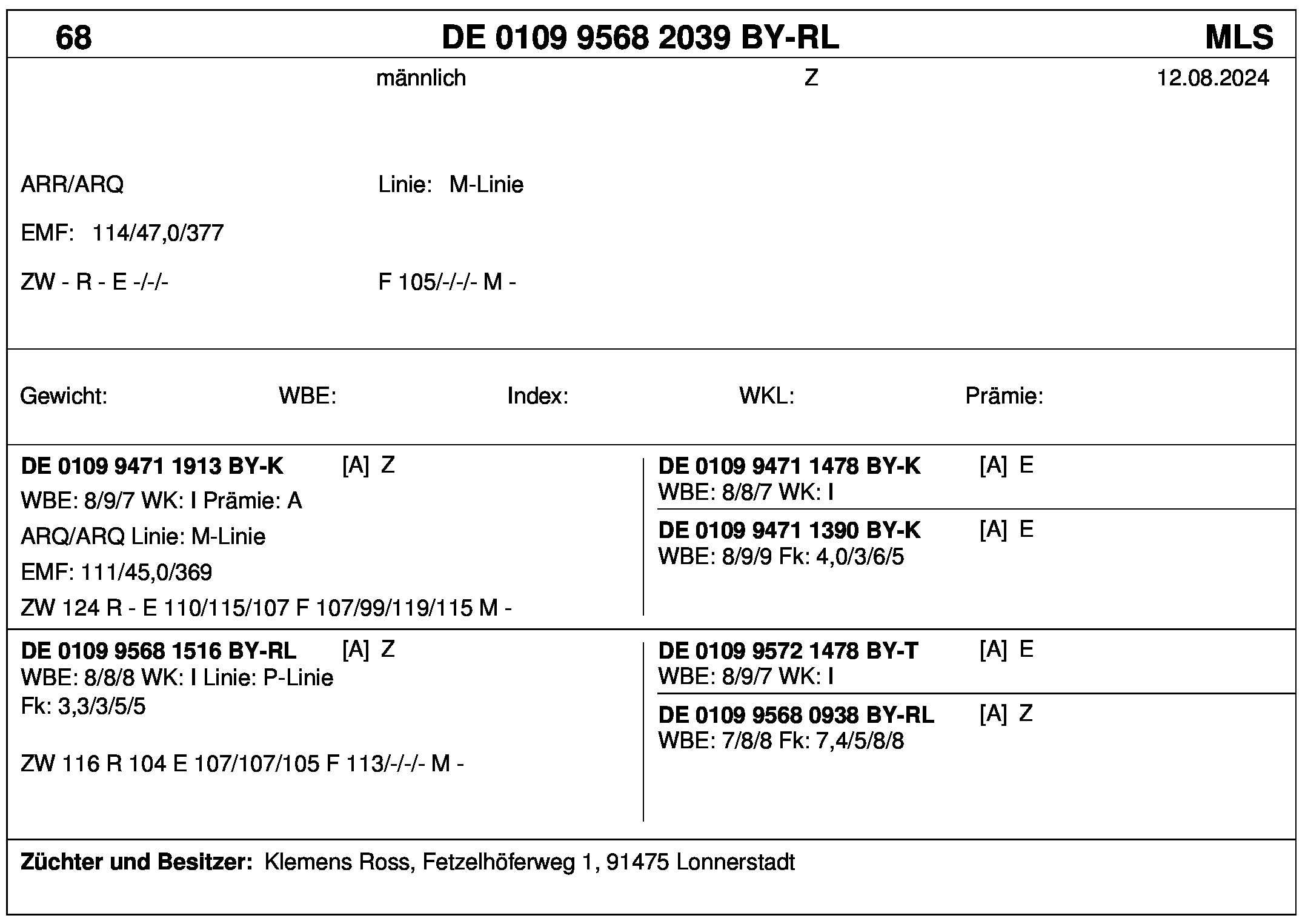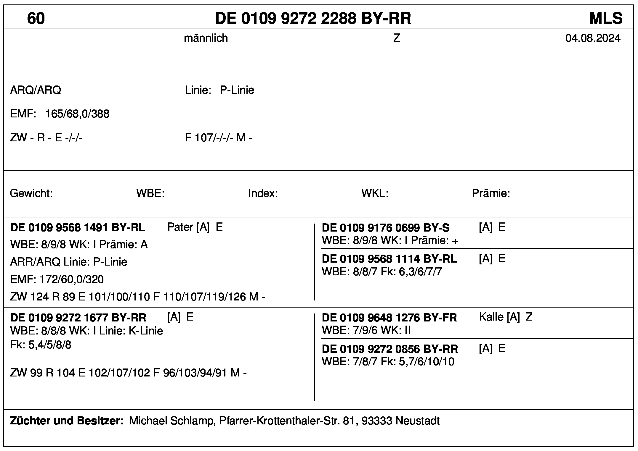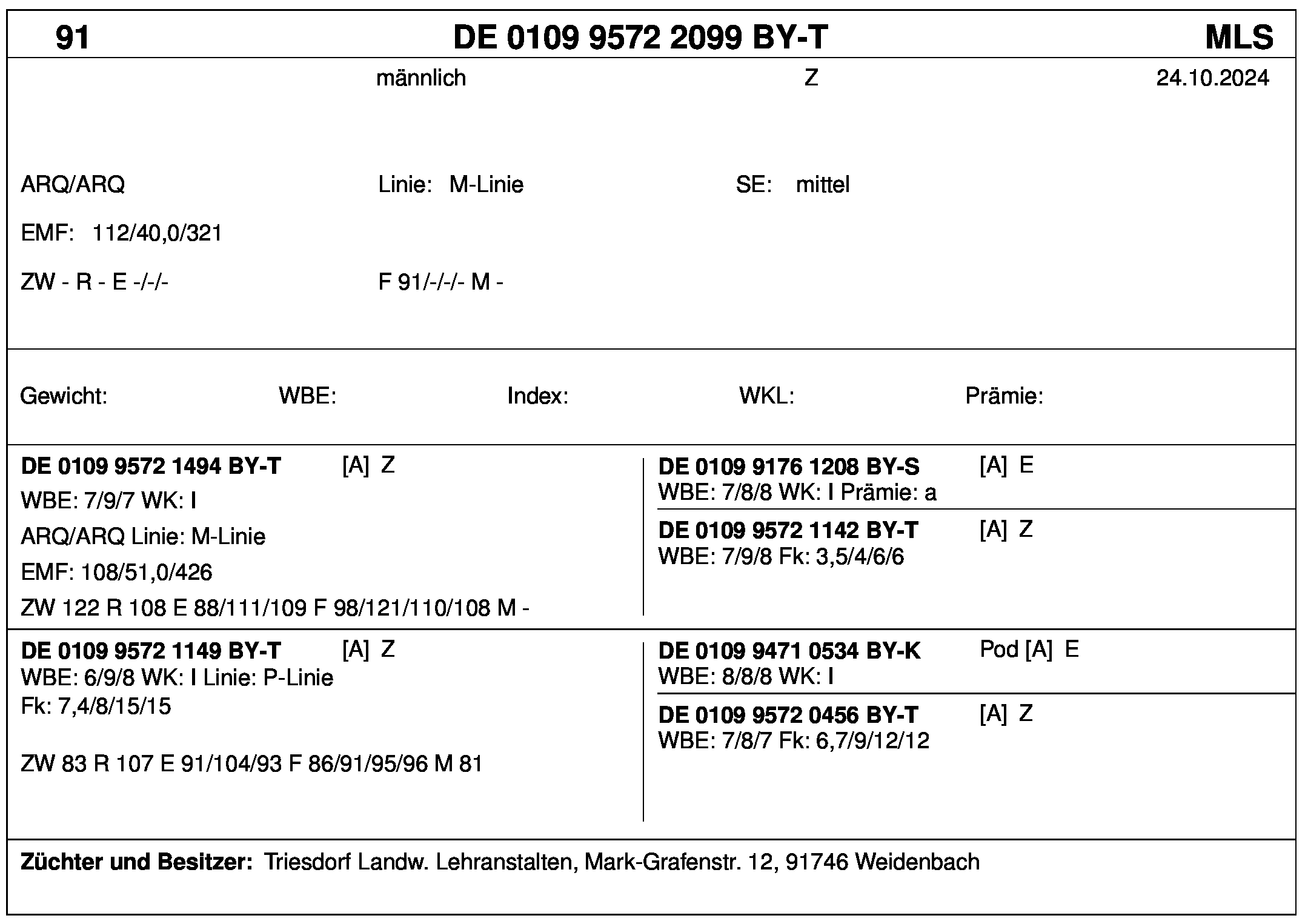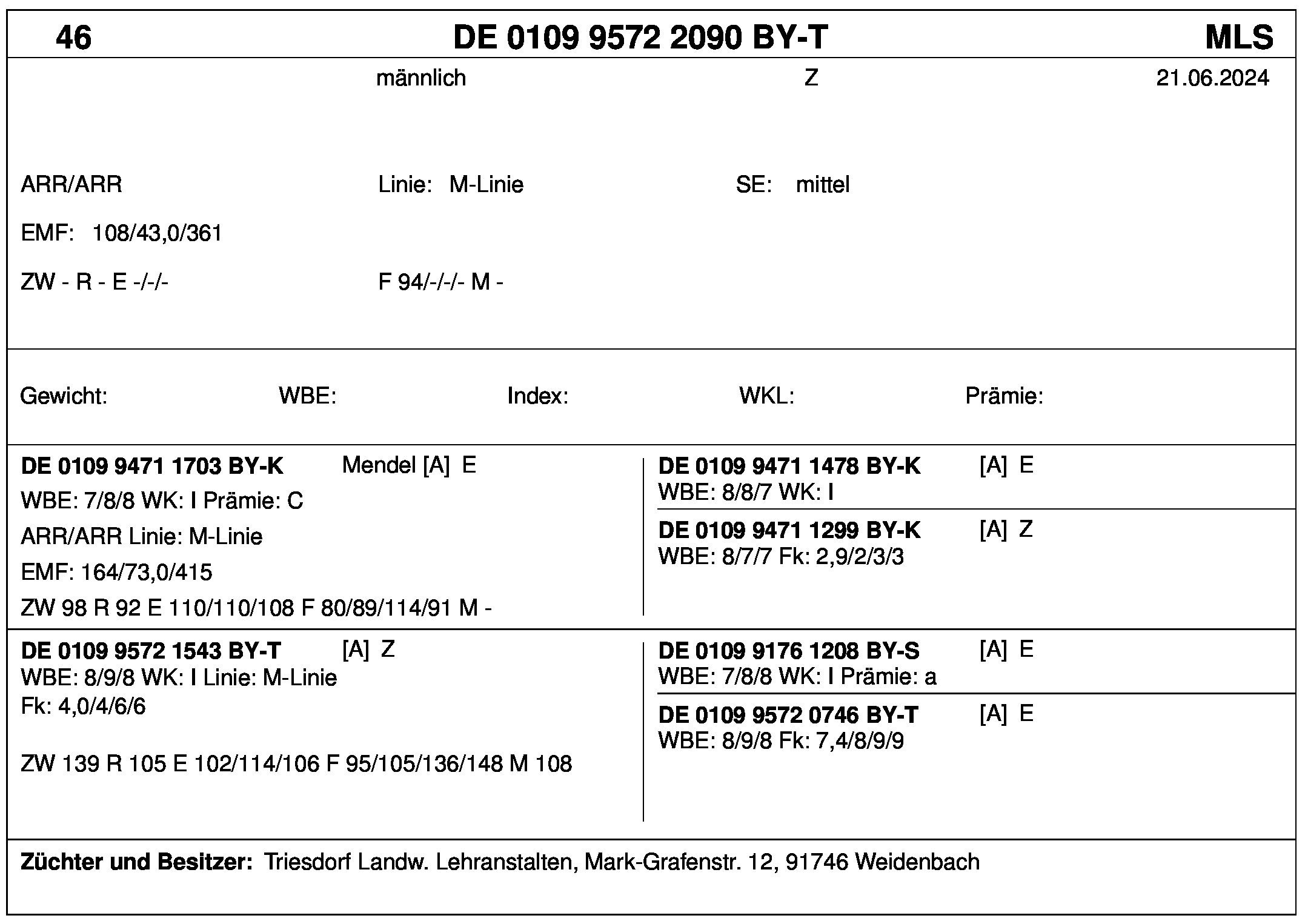 *** nicht für Herdbuchzüchter, nicht stationsgeprüft