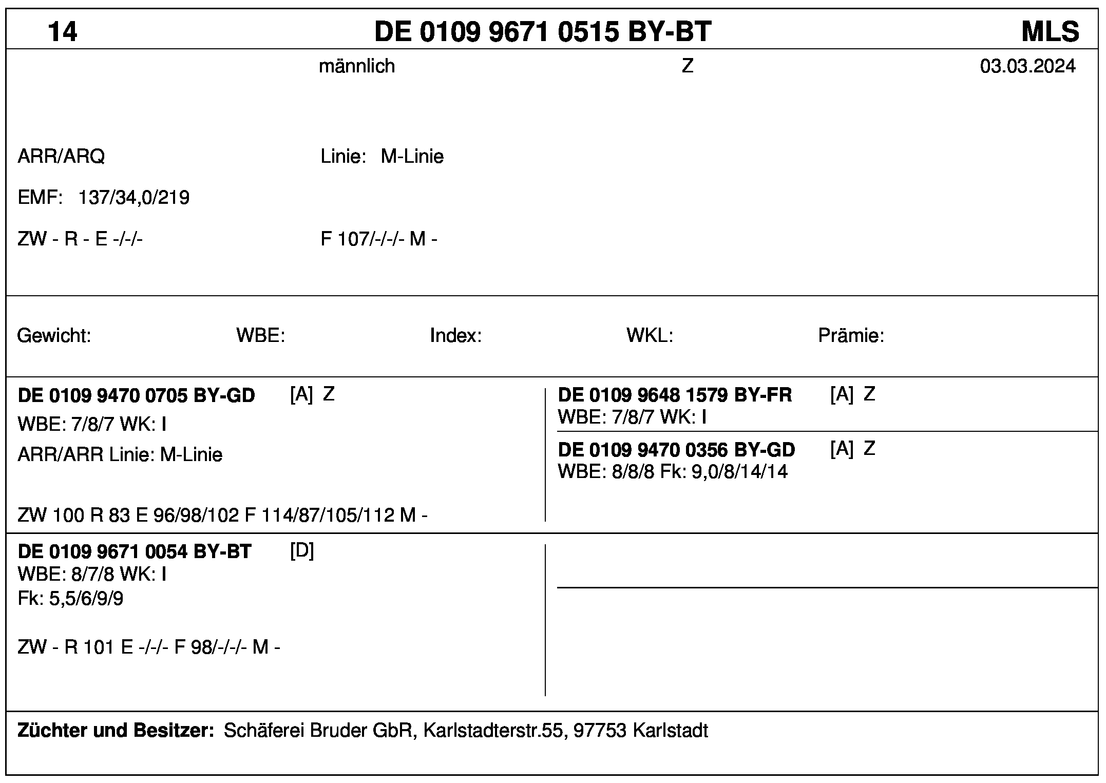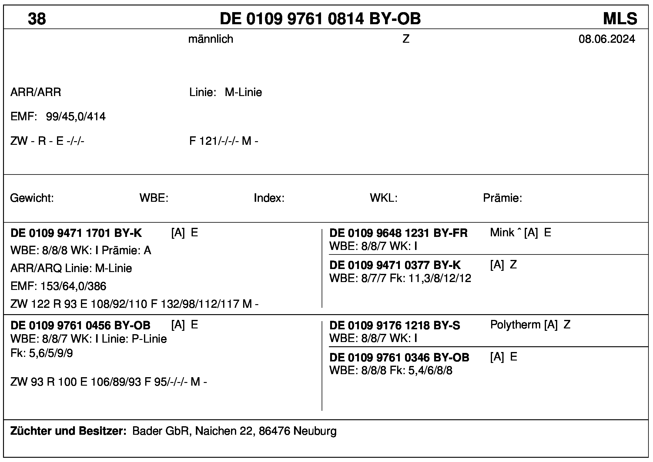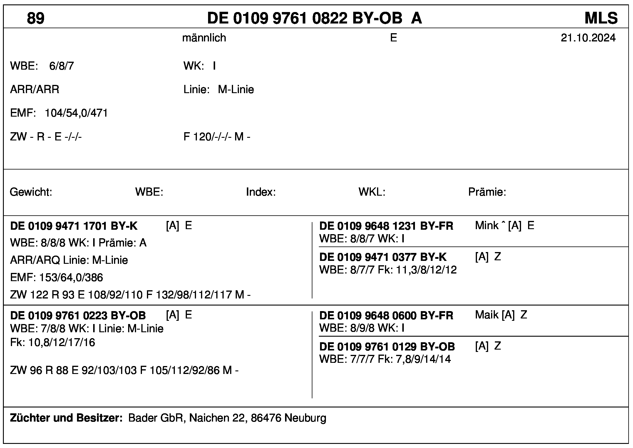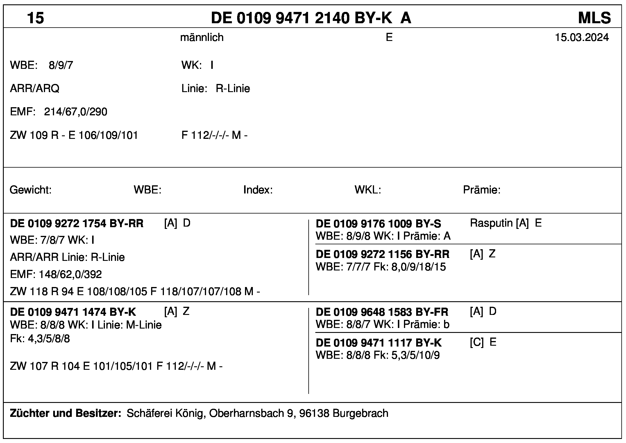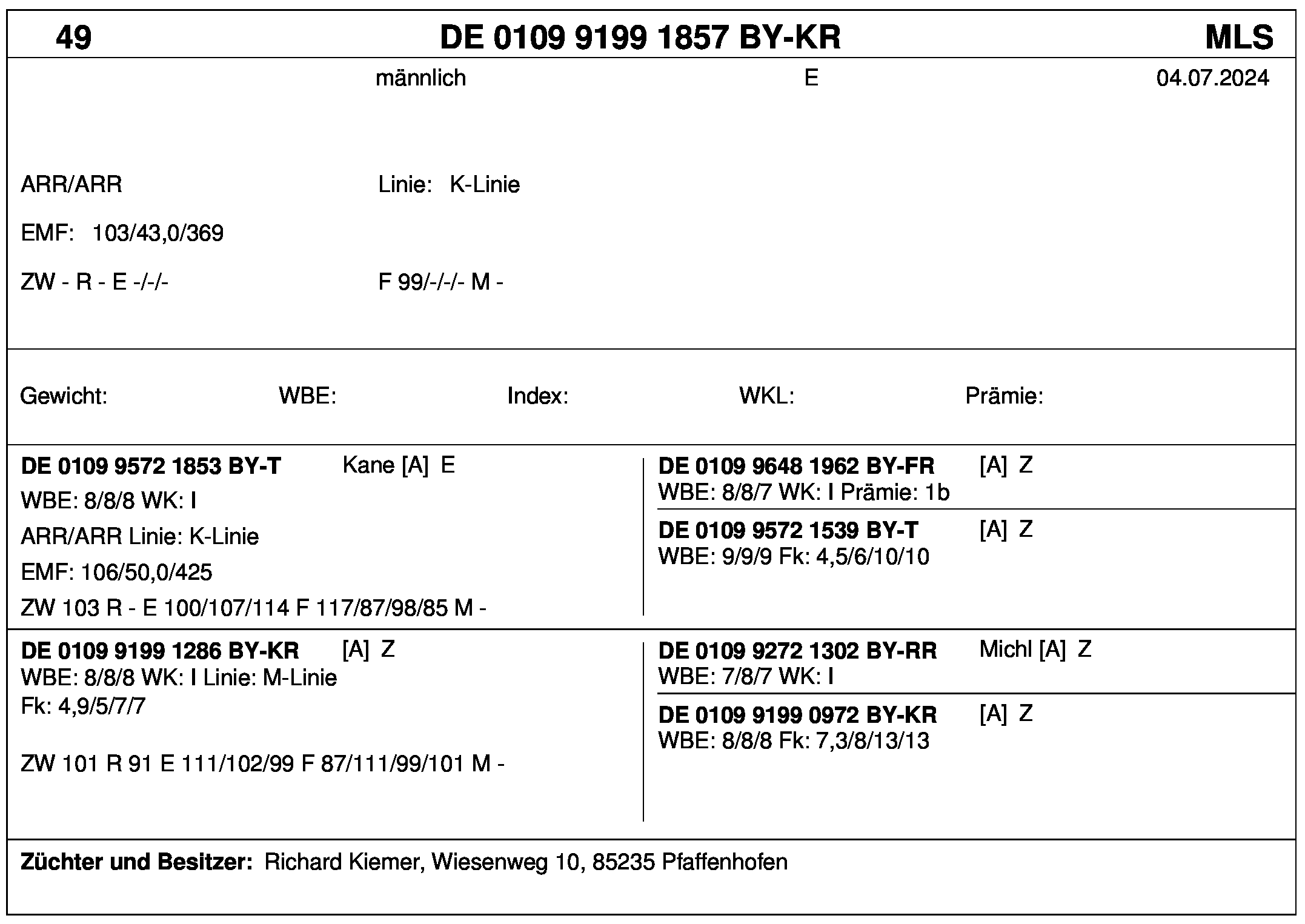 *** nicht für Herdbuchzüchter, nicht stationsgeprüft