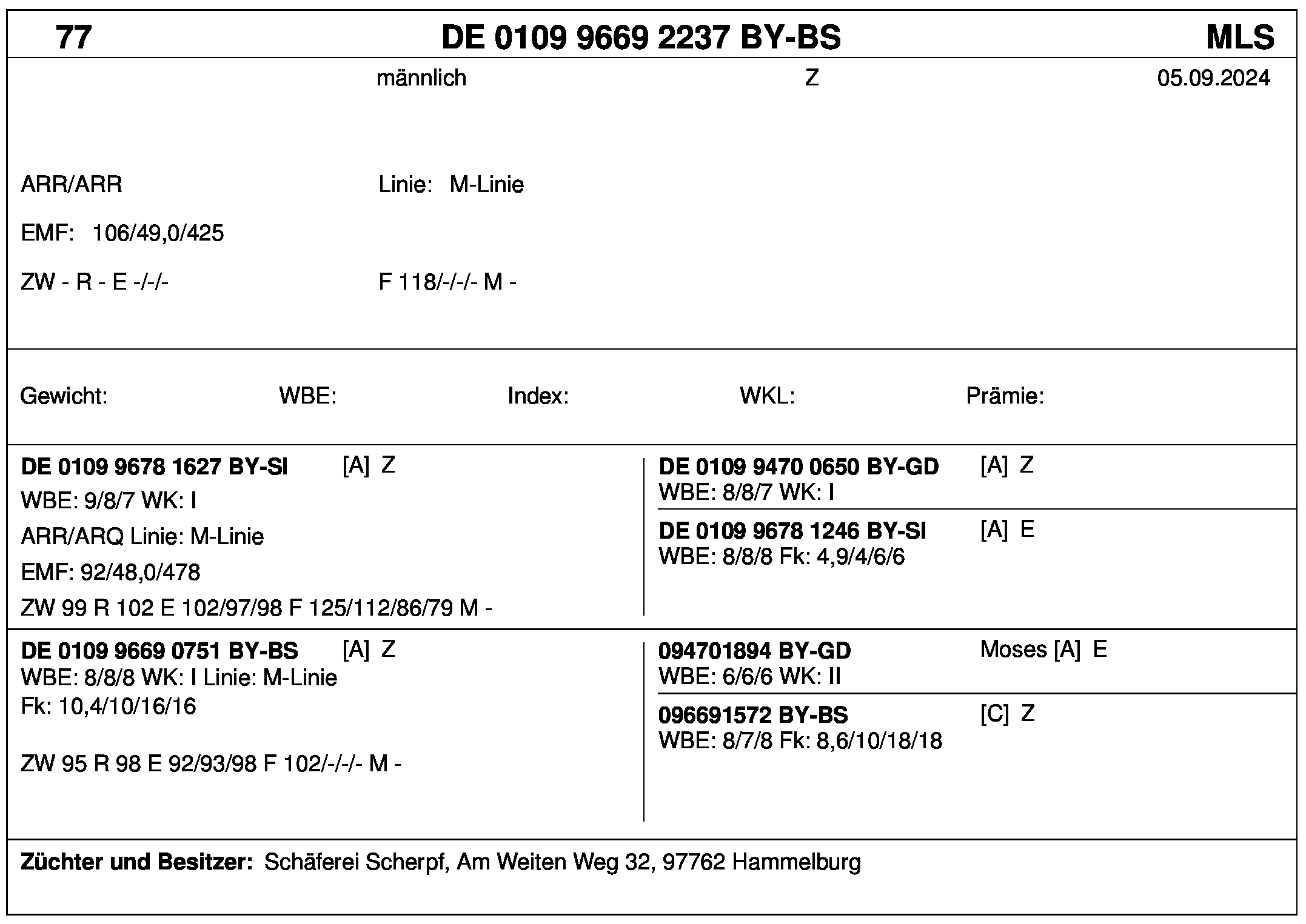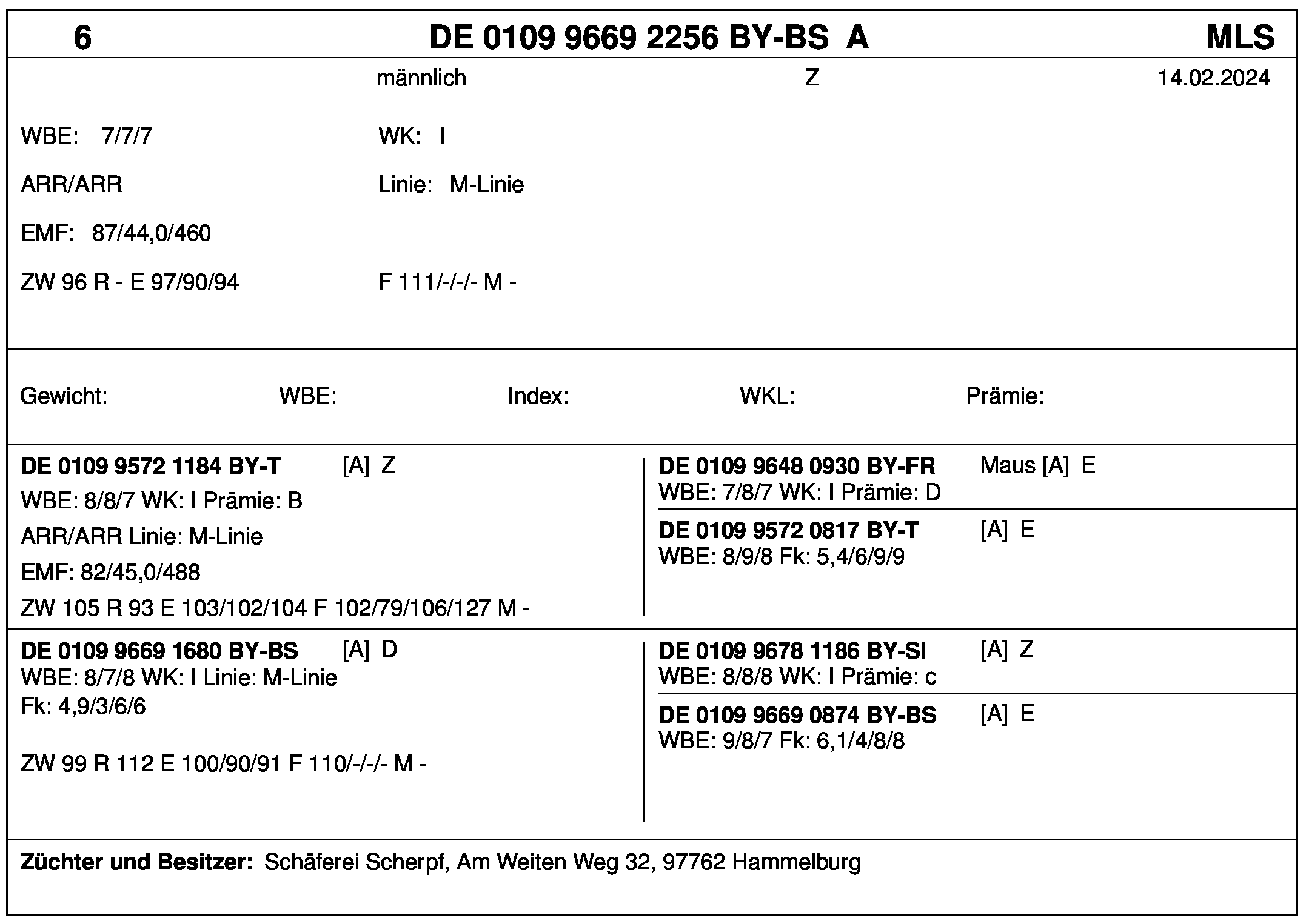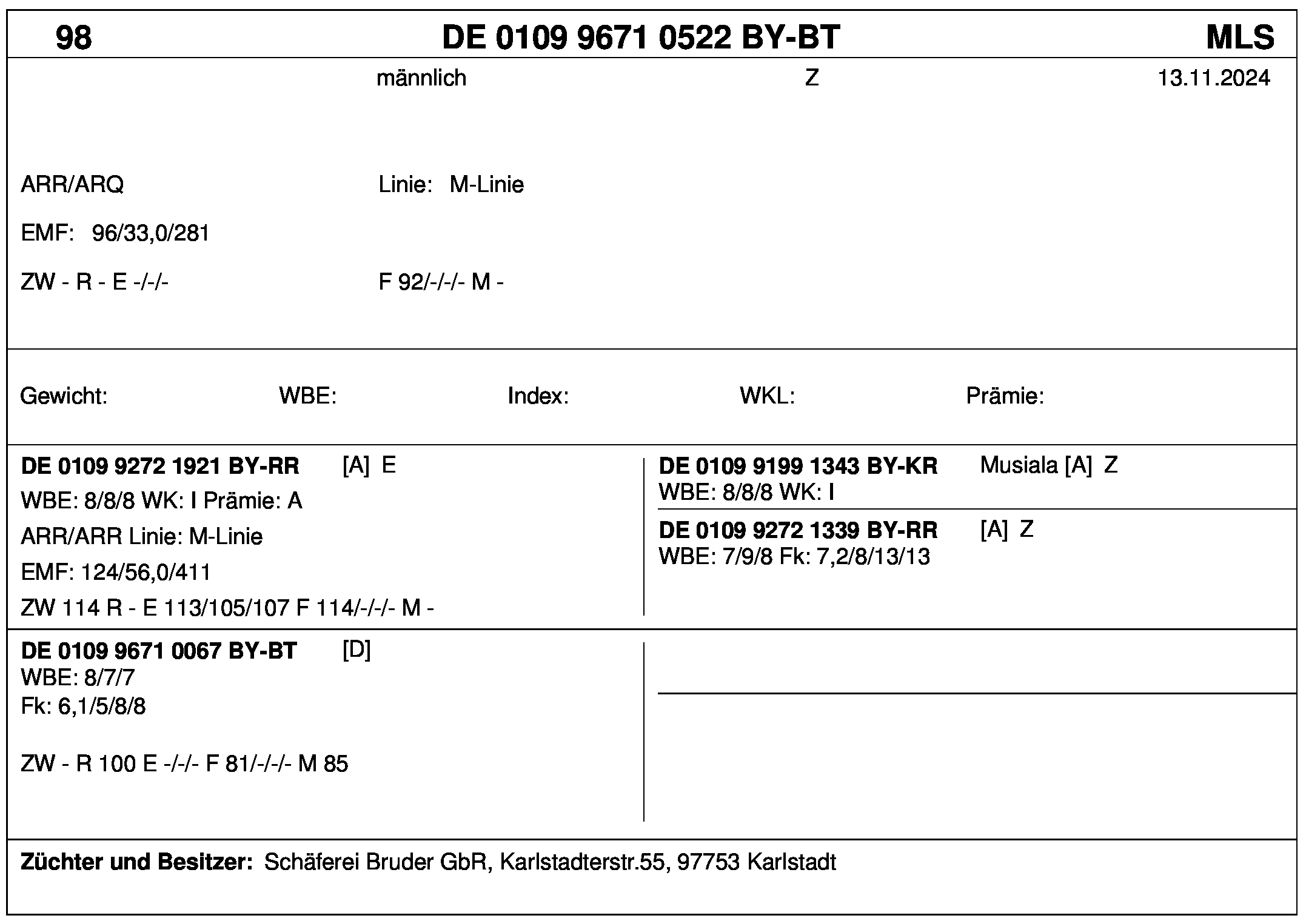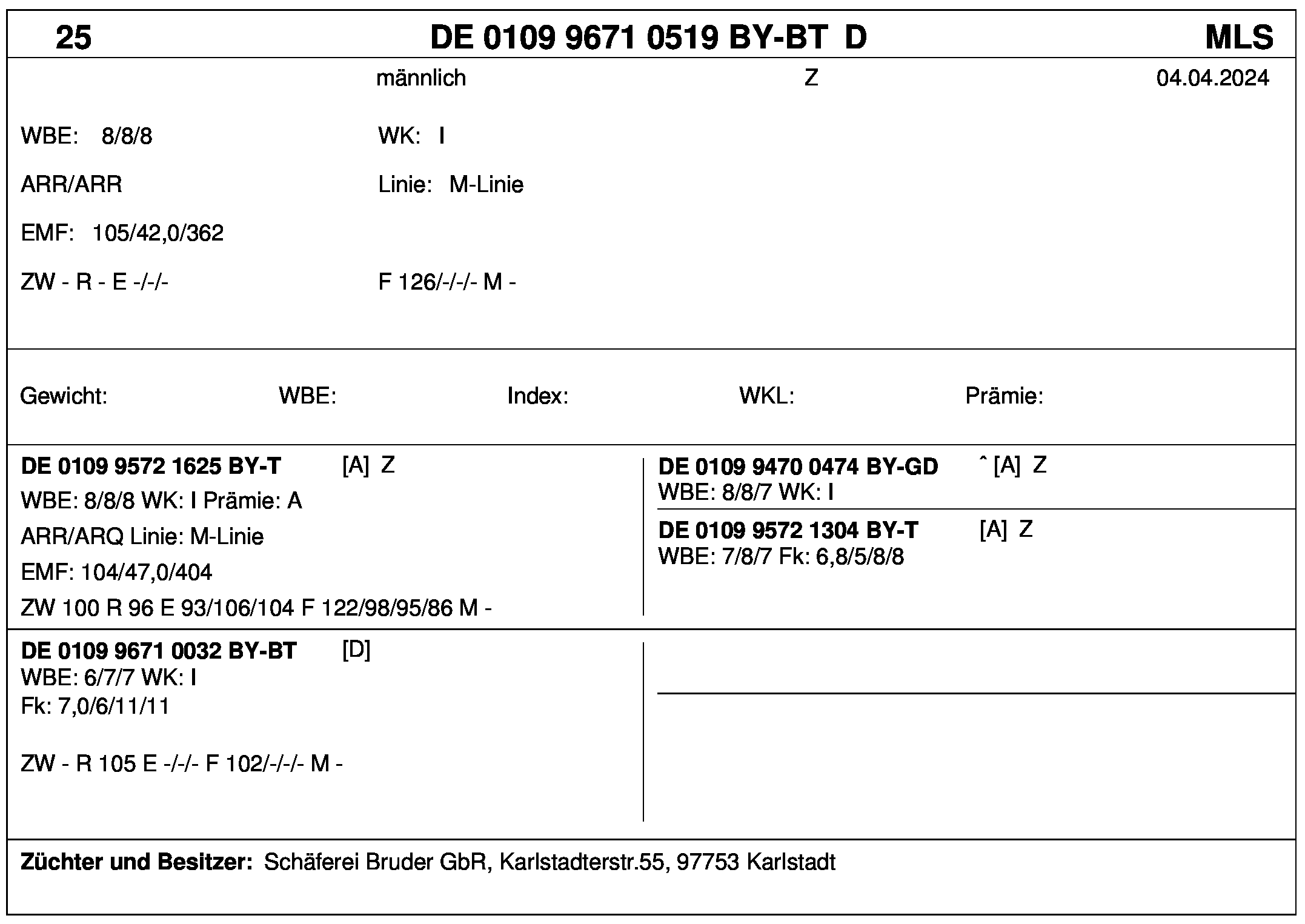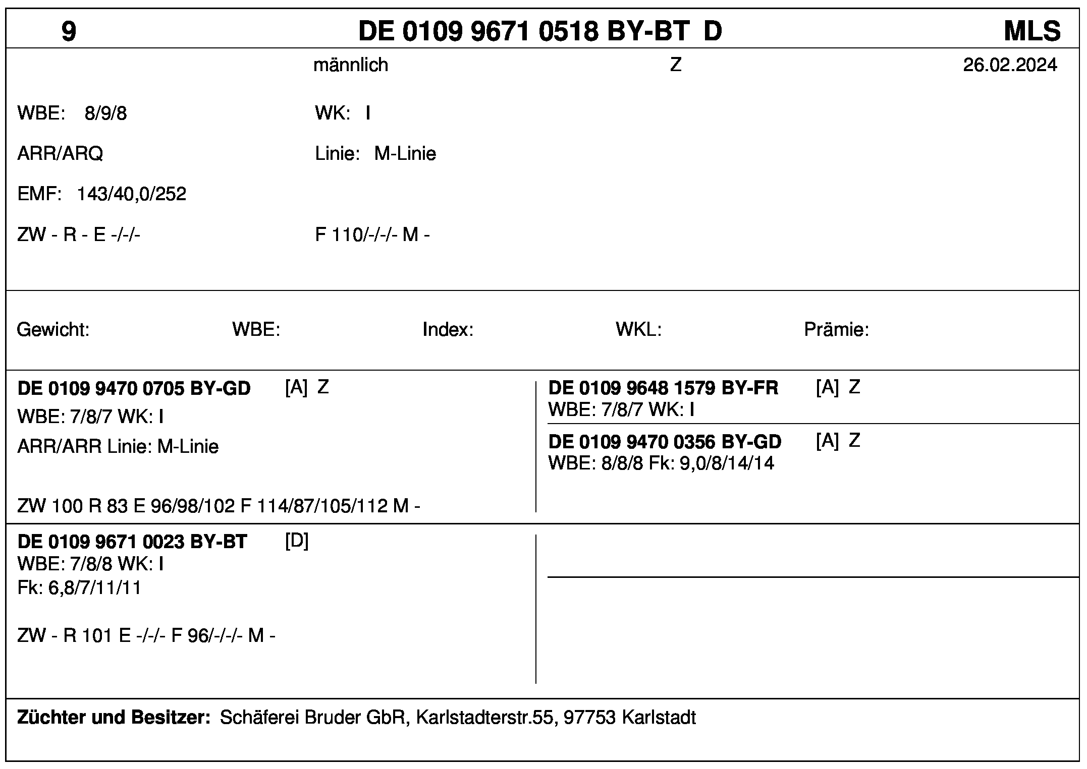 *** nicht für Herdbuchzüchter, nicht stationsgeprüft
