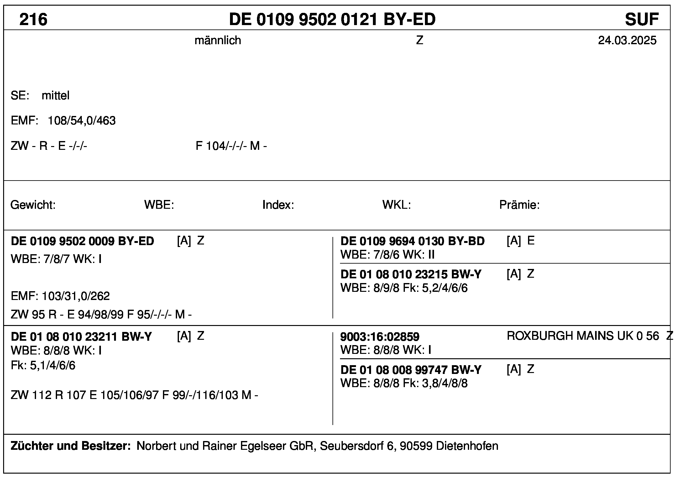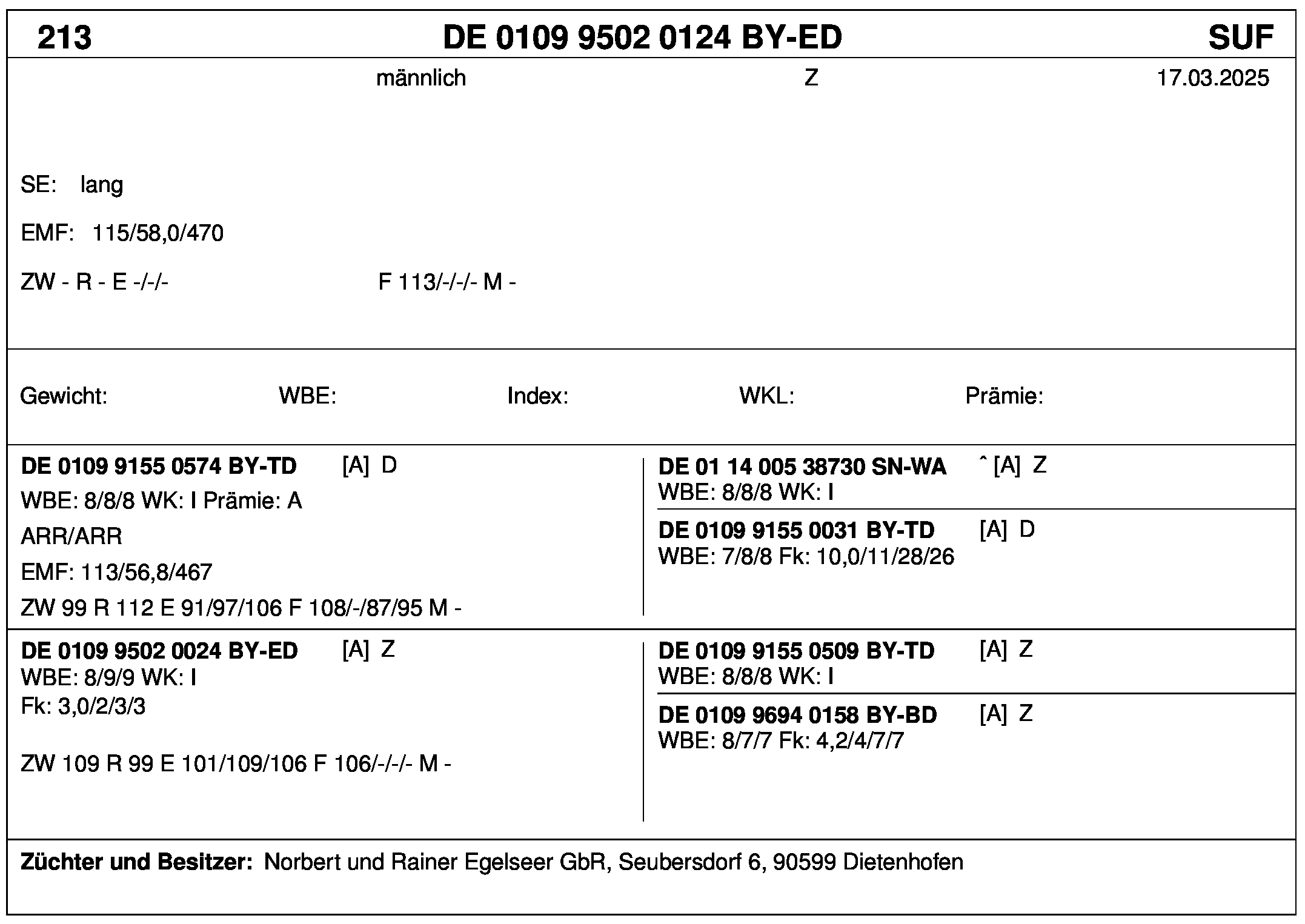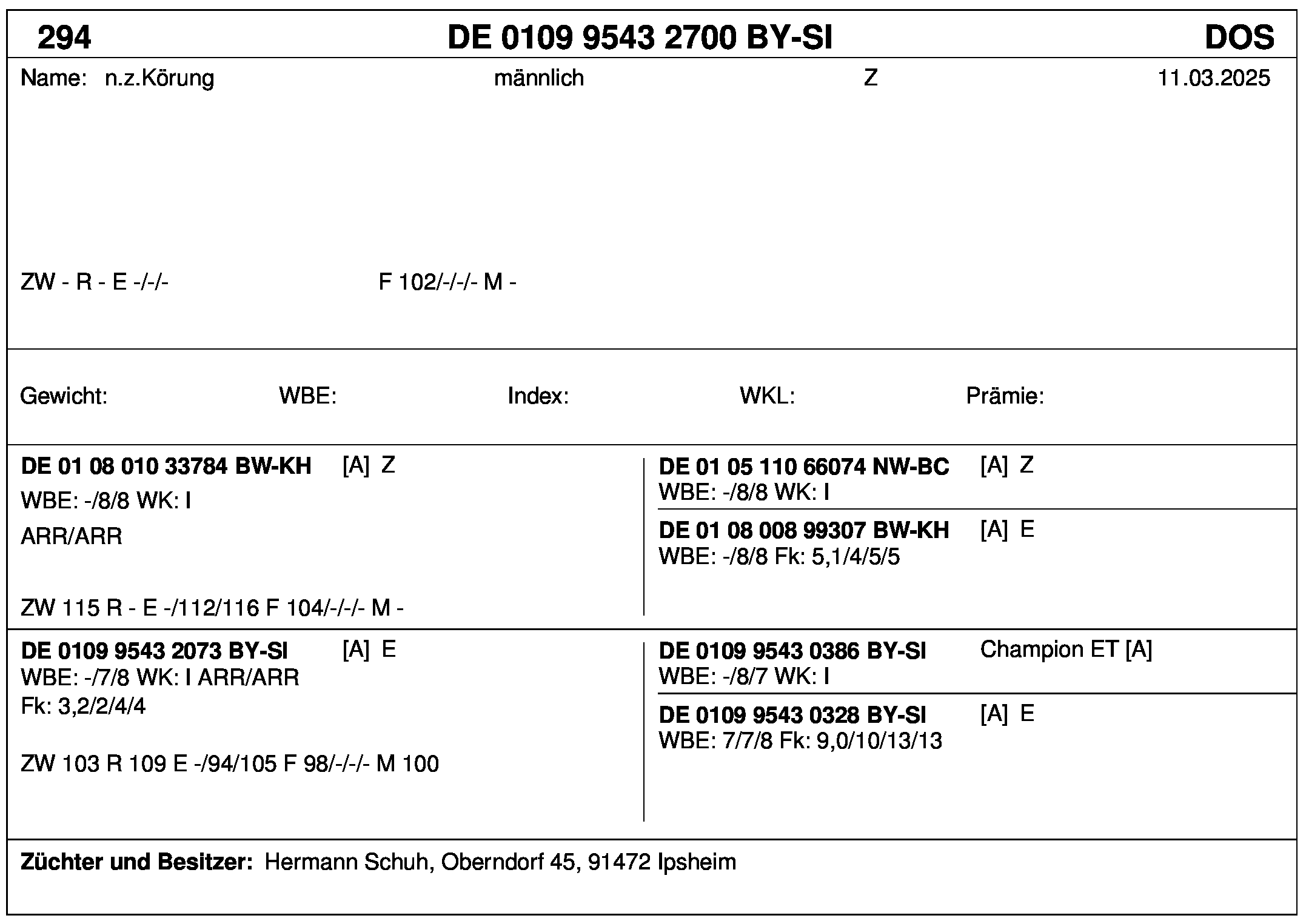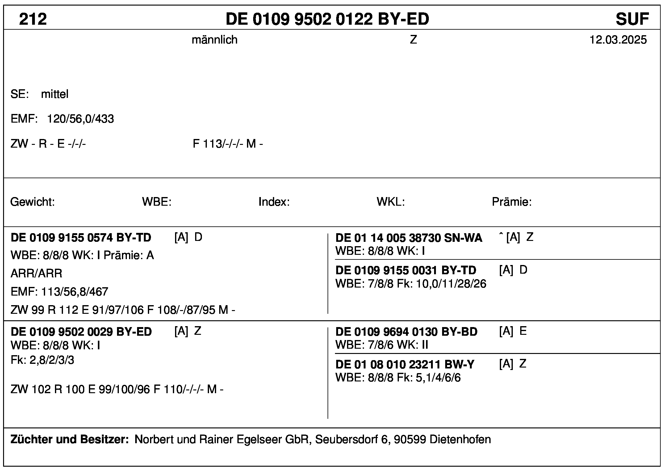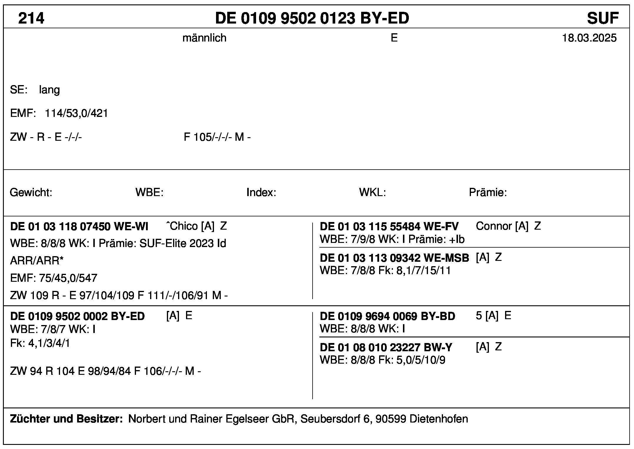 *** nicht für Herdbuchzüchter, nicht stationsgeprüft