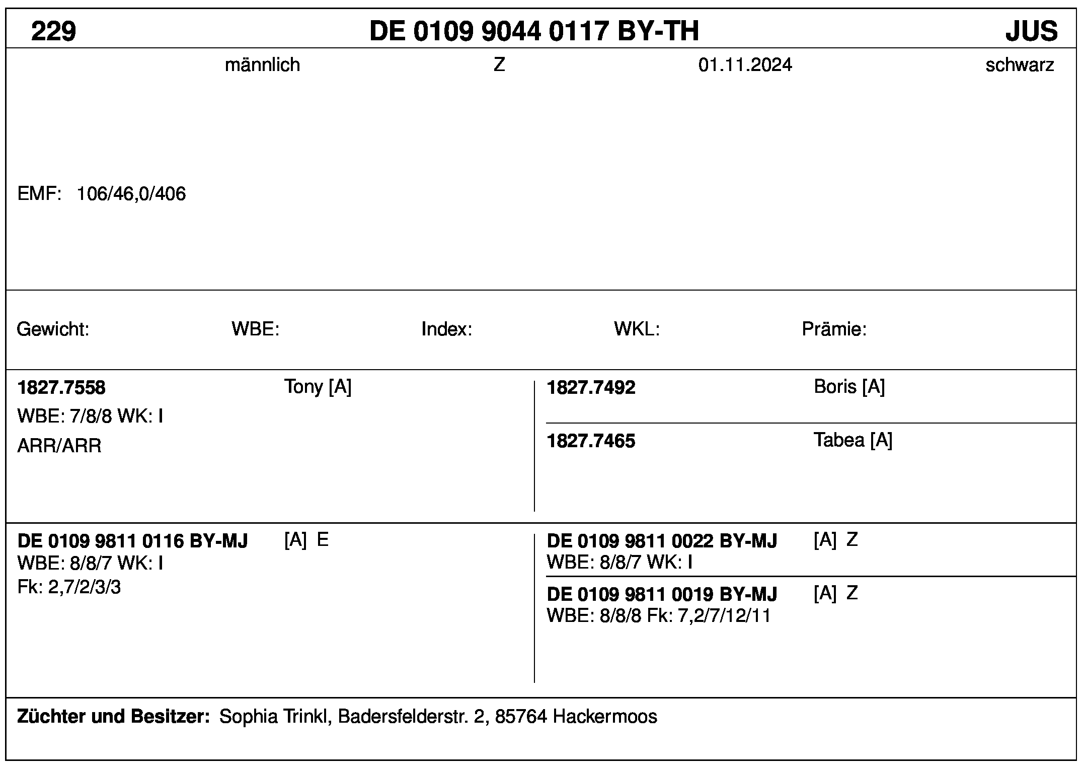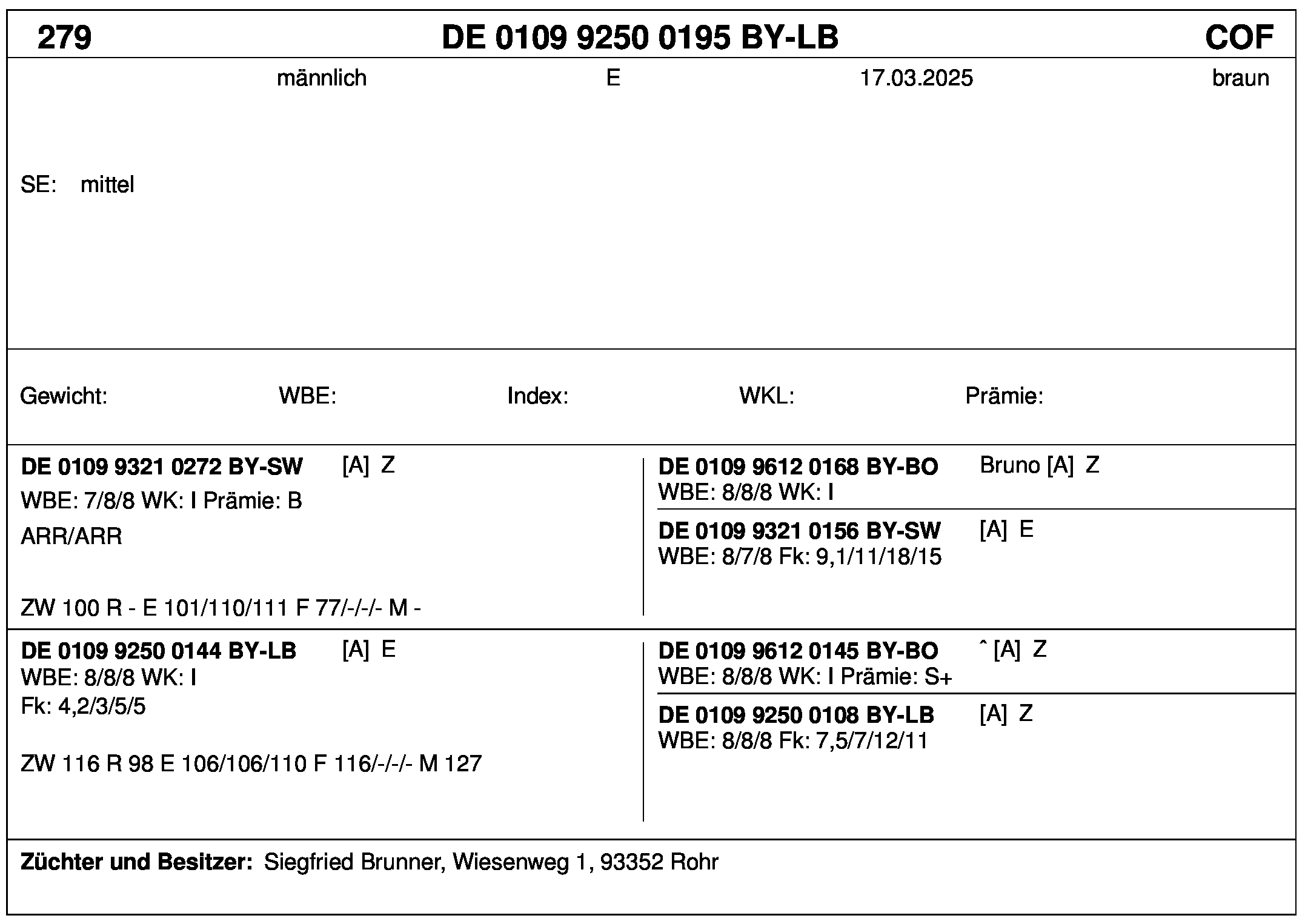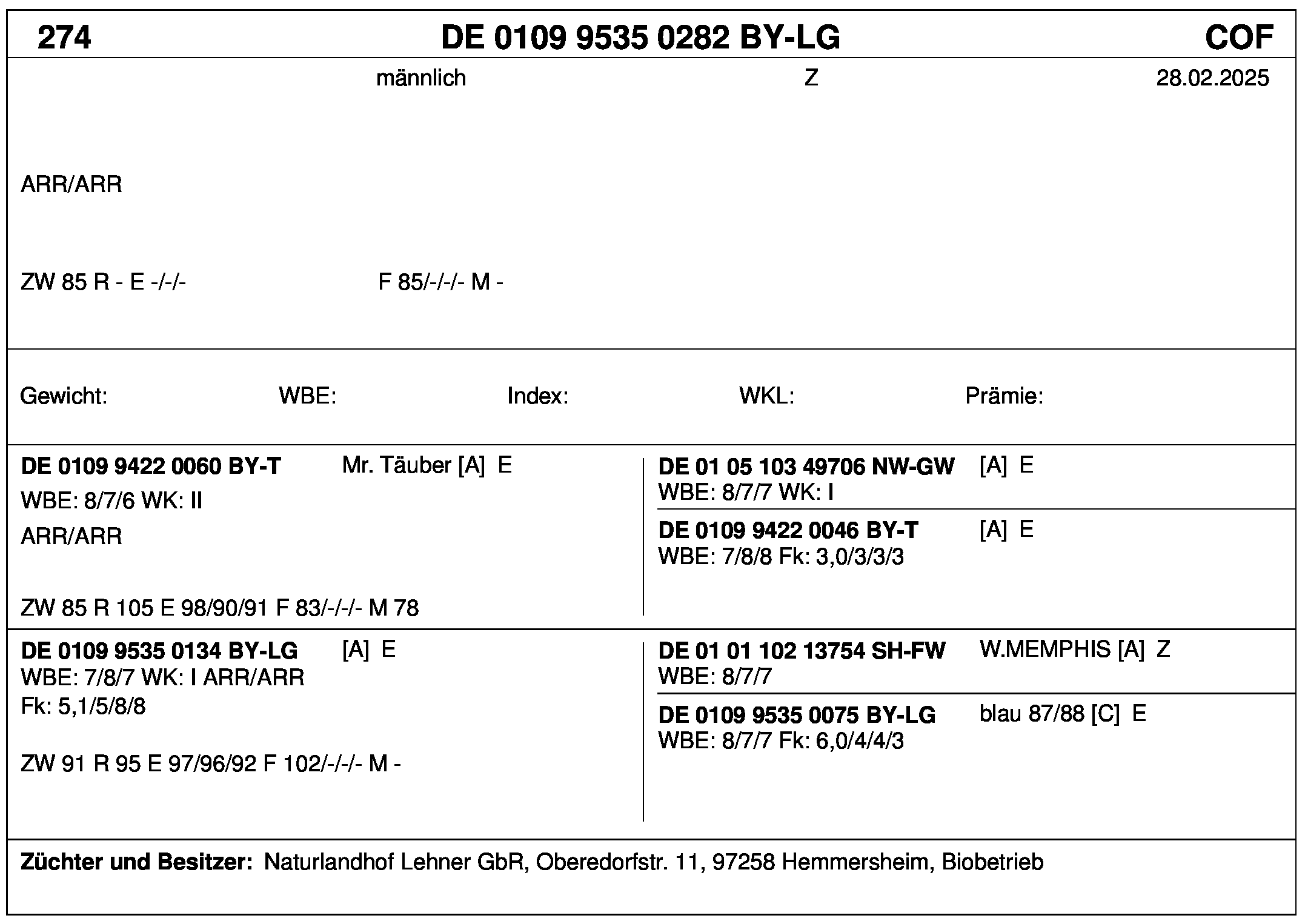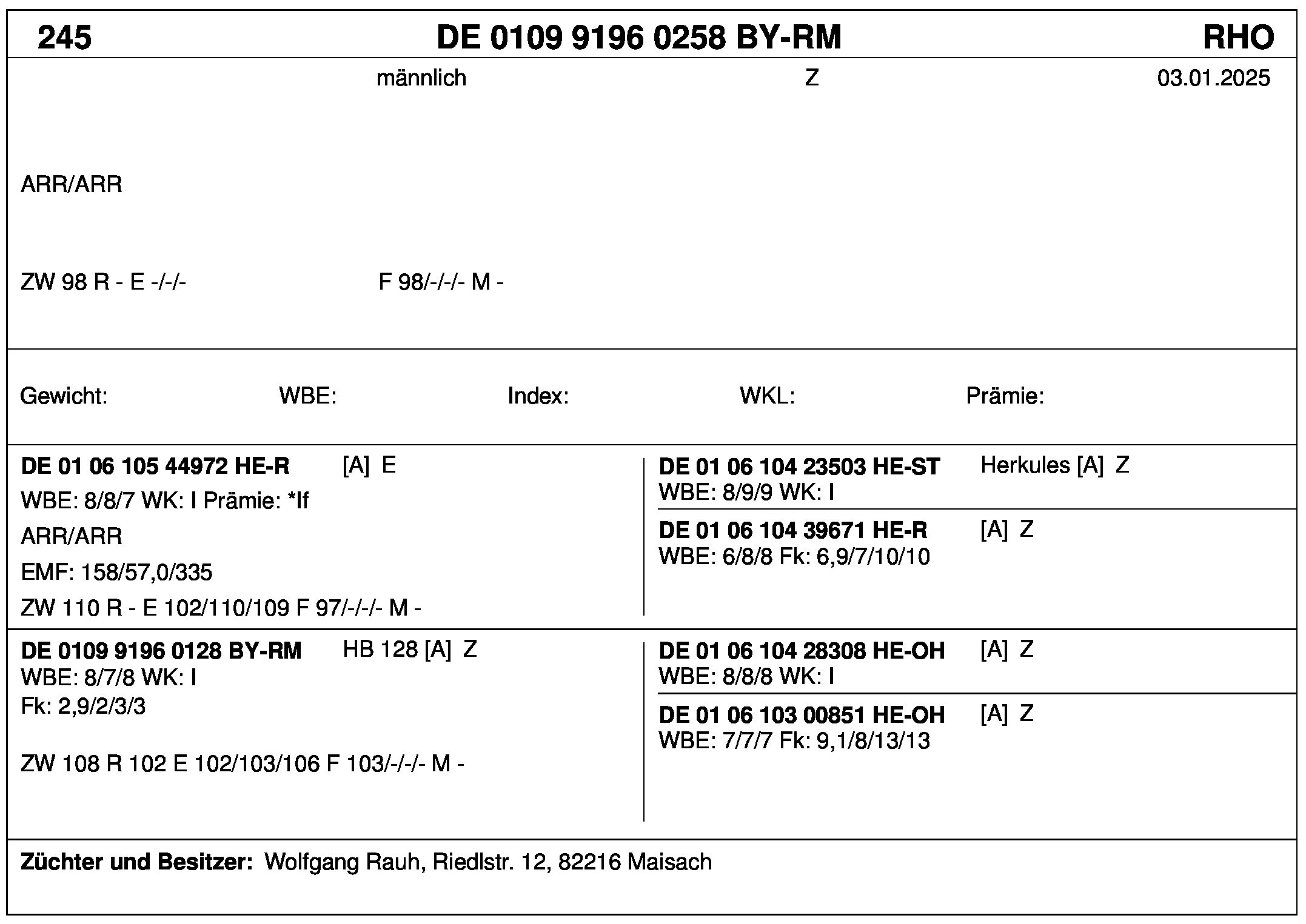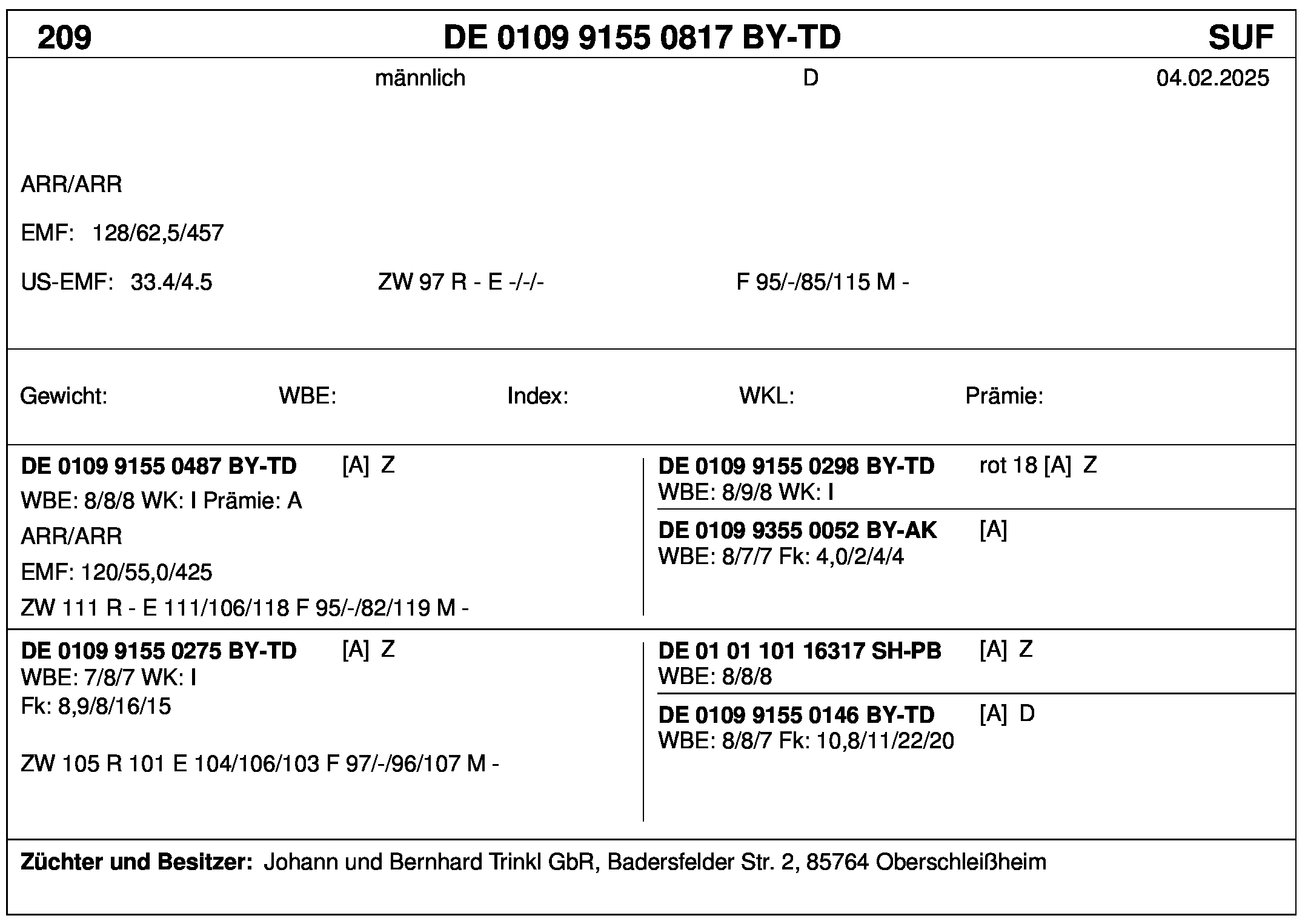*** nicht für Herdbuchzüchter, nicht stationsgeprüft