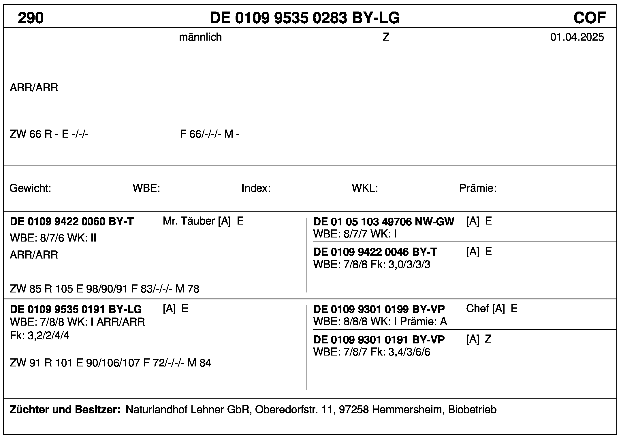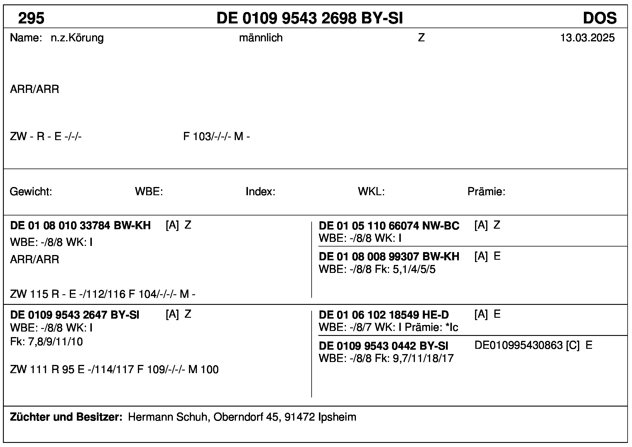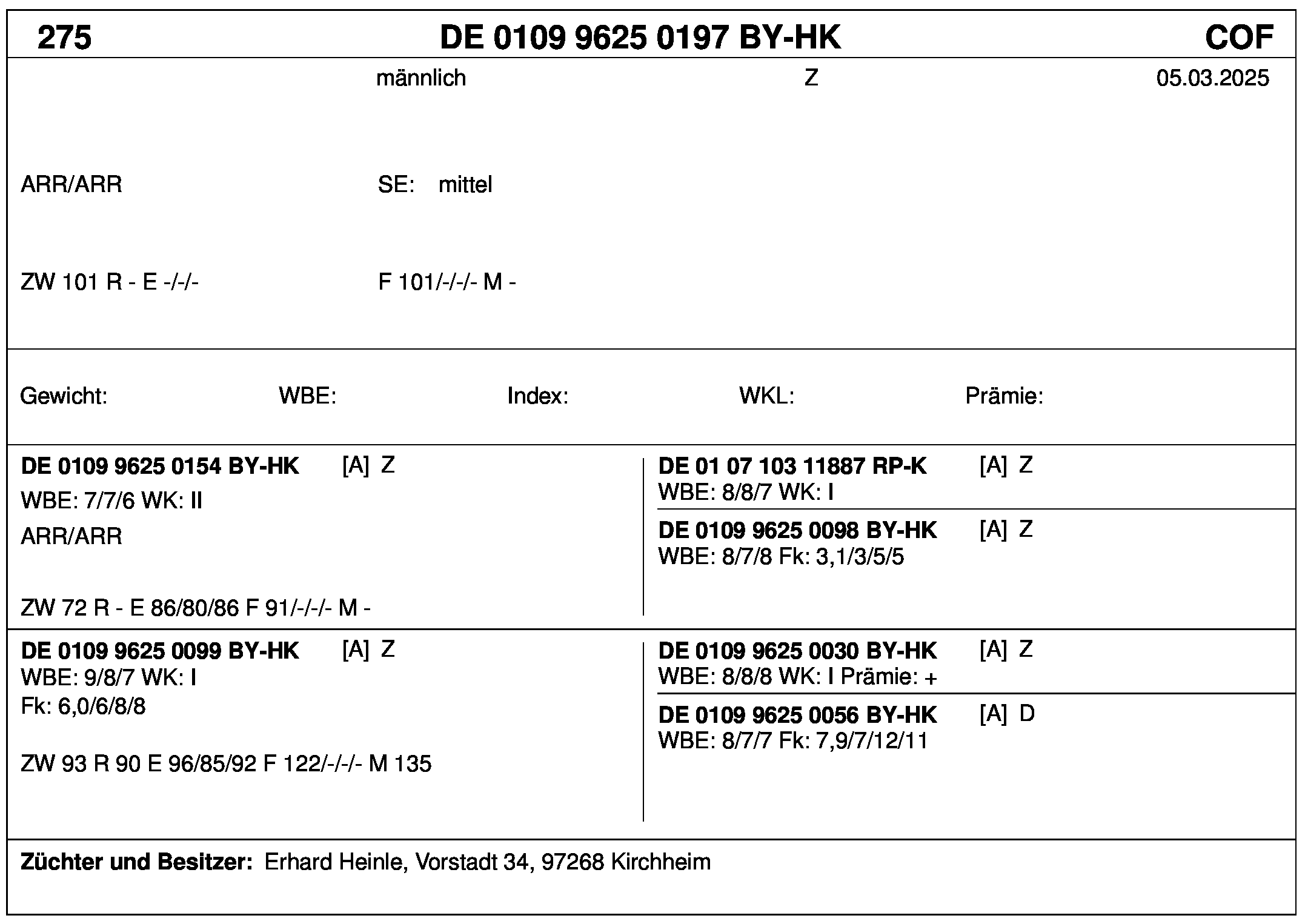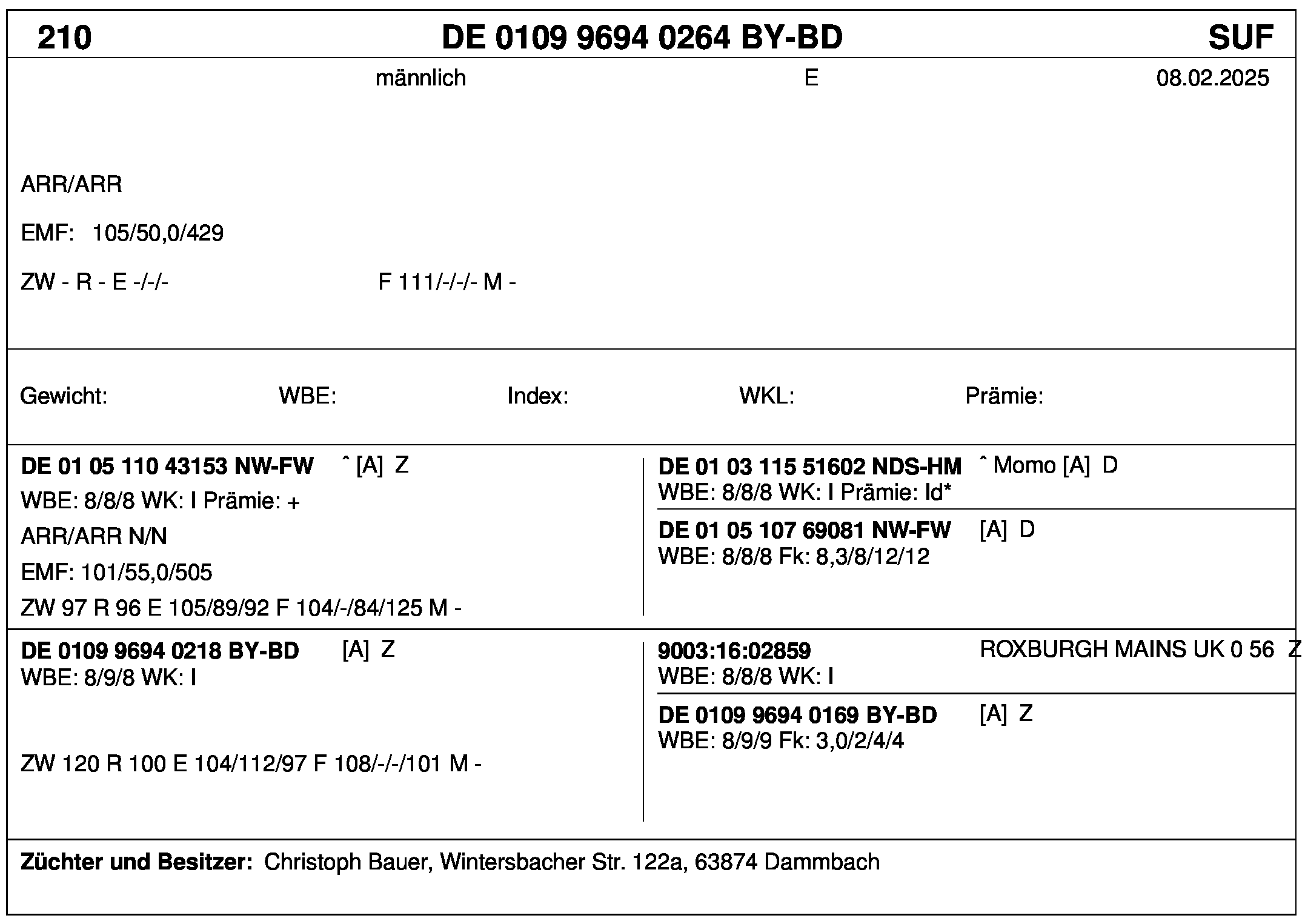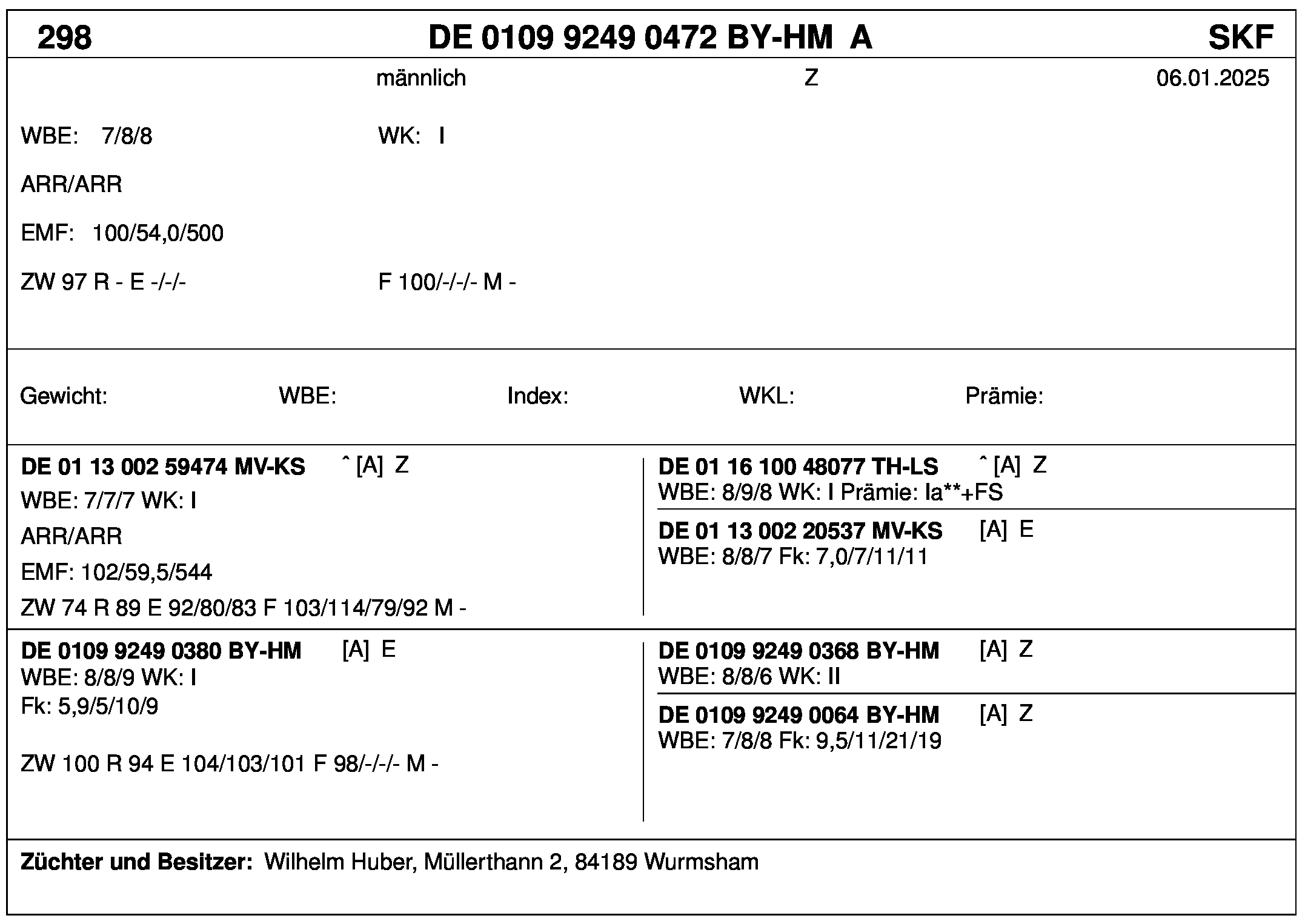 *** nicht für Herdbuchzüchter, nicht stationsgeprüft