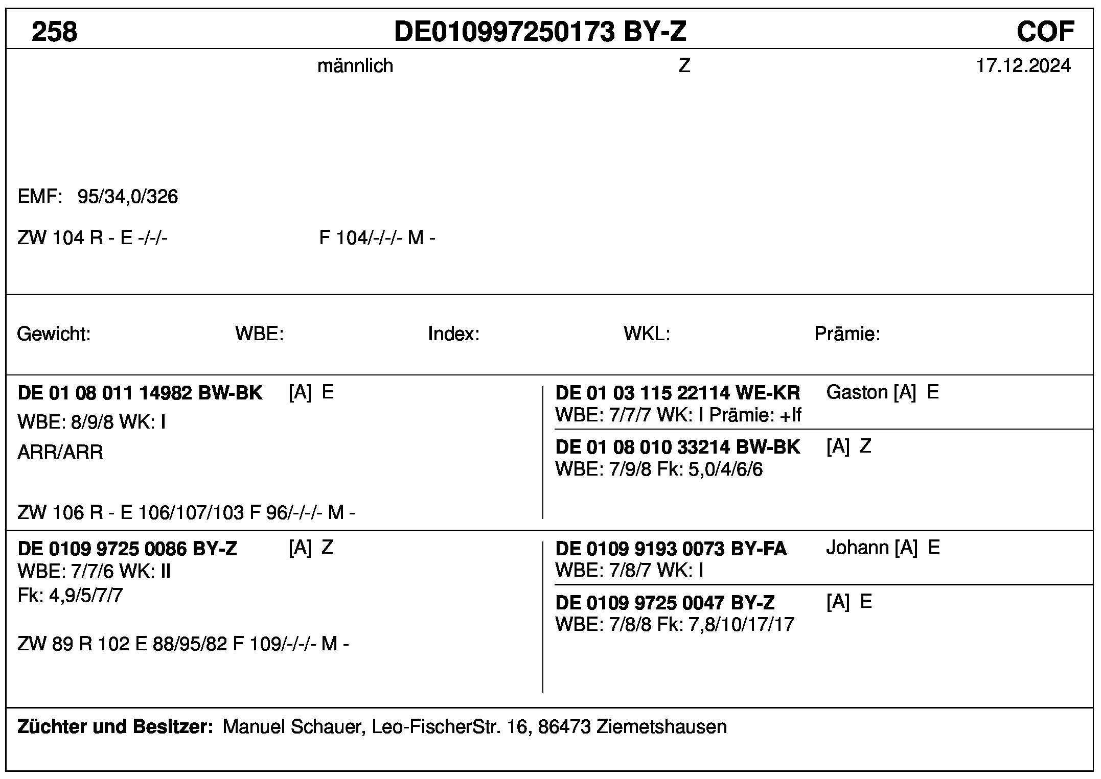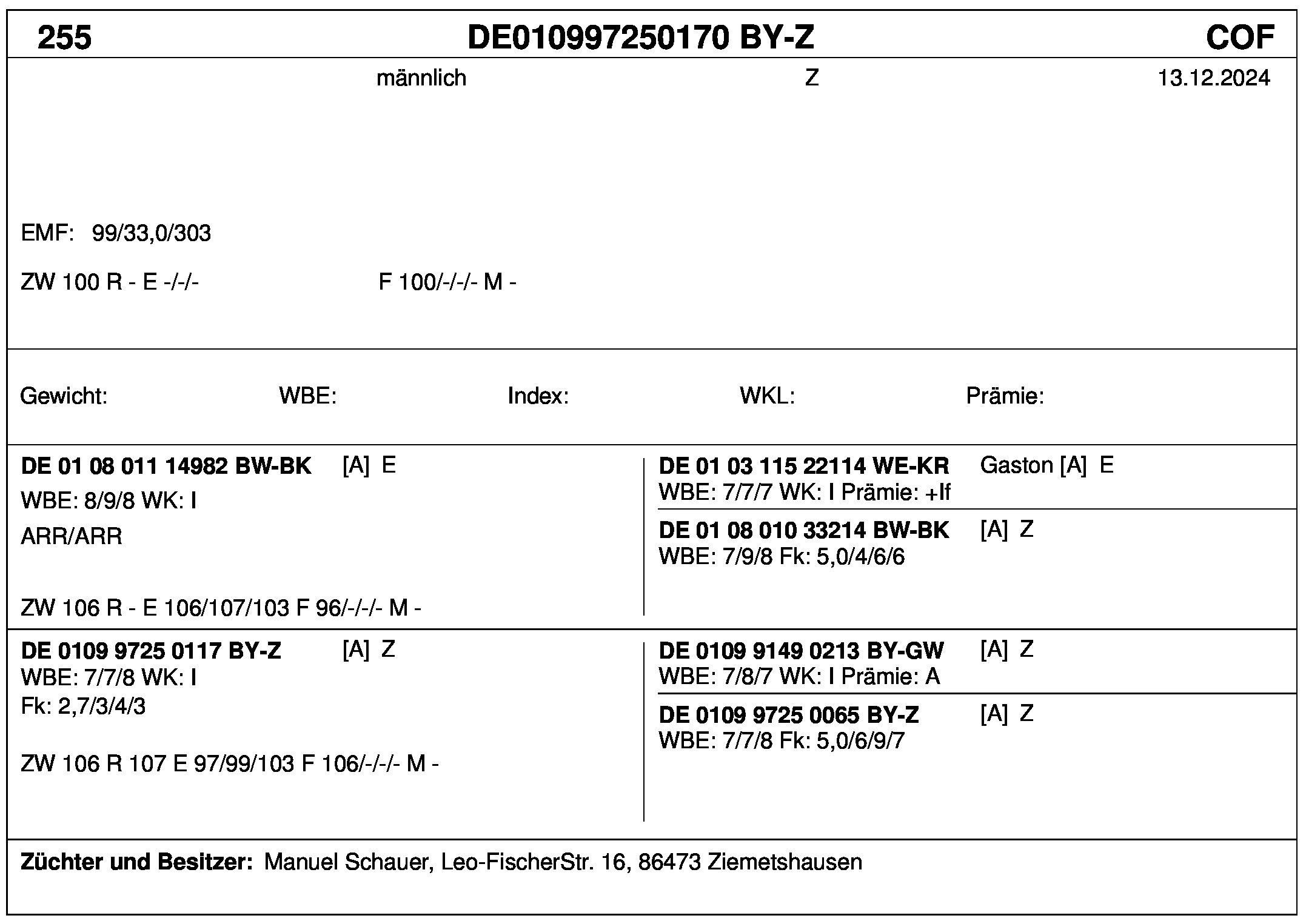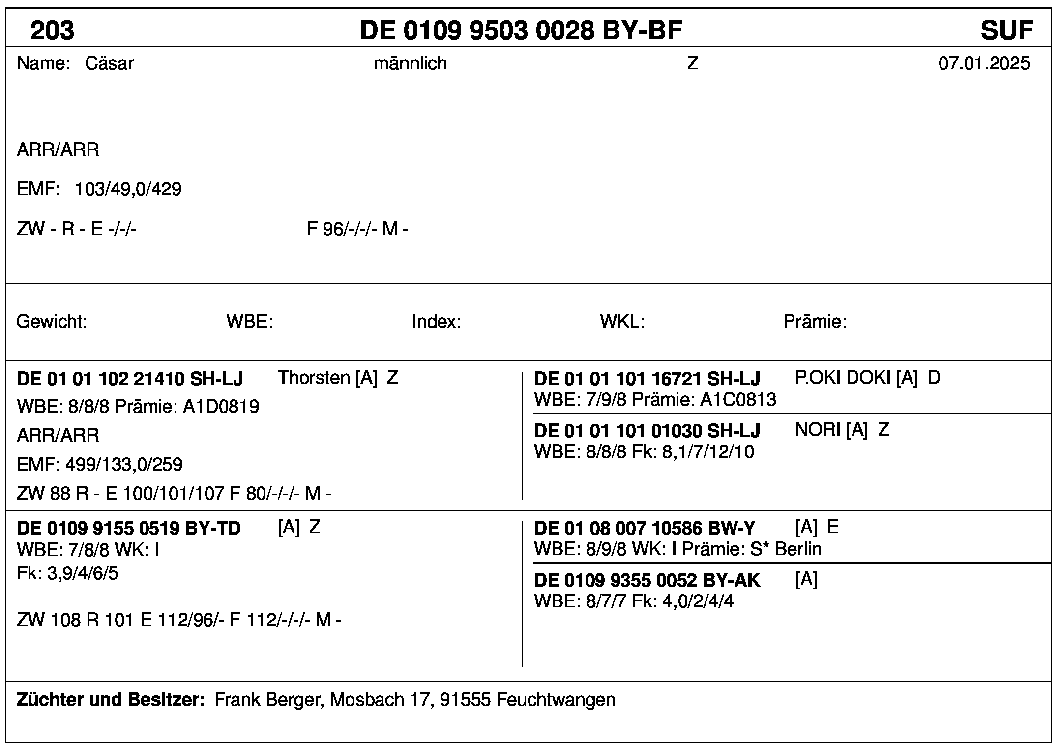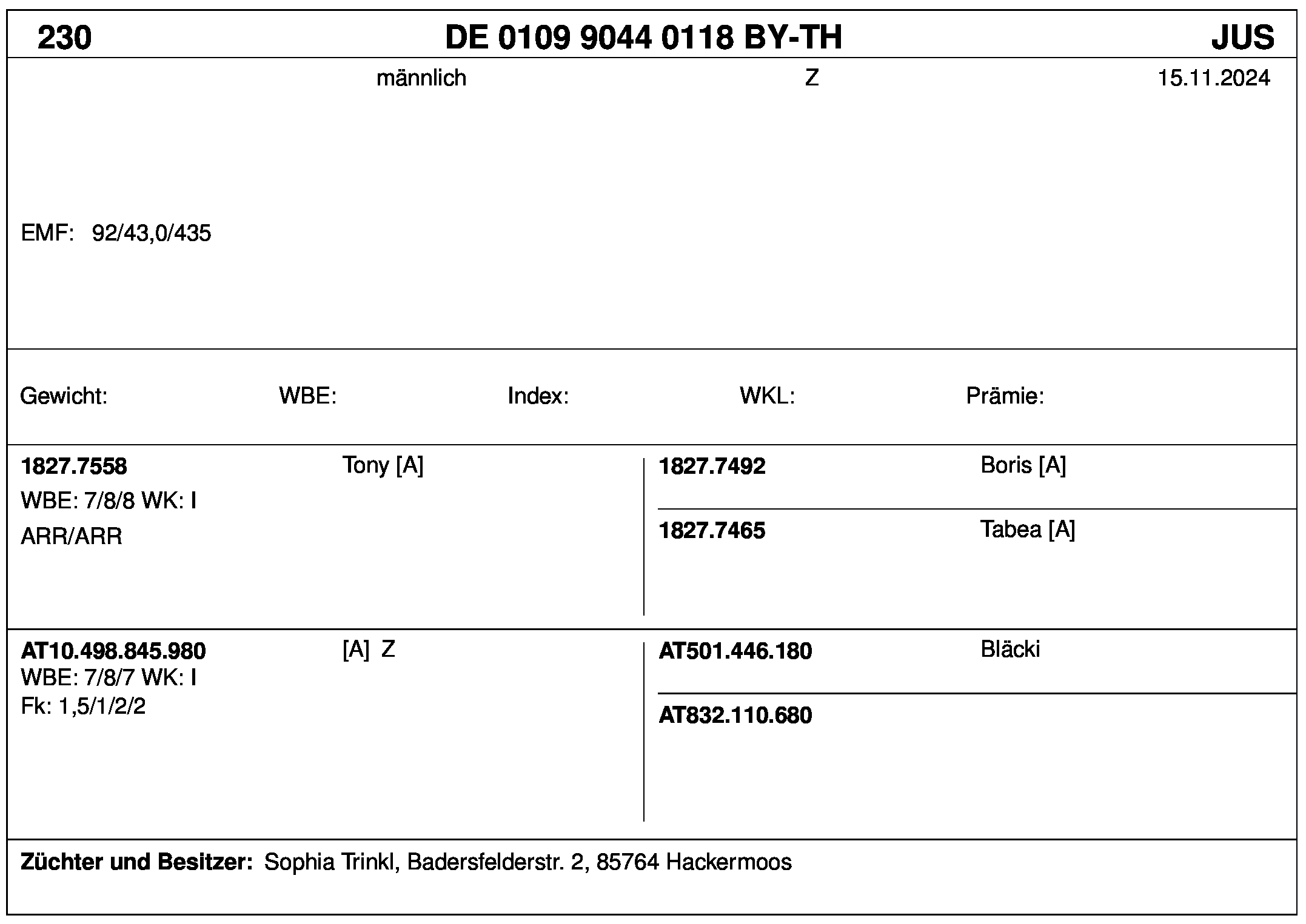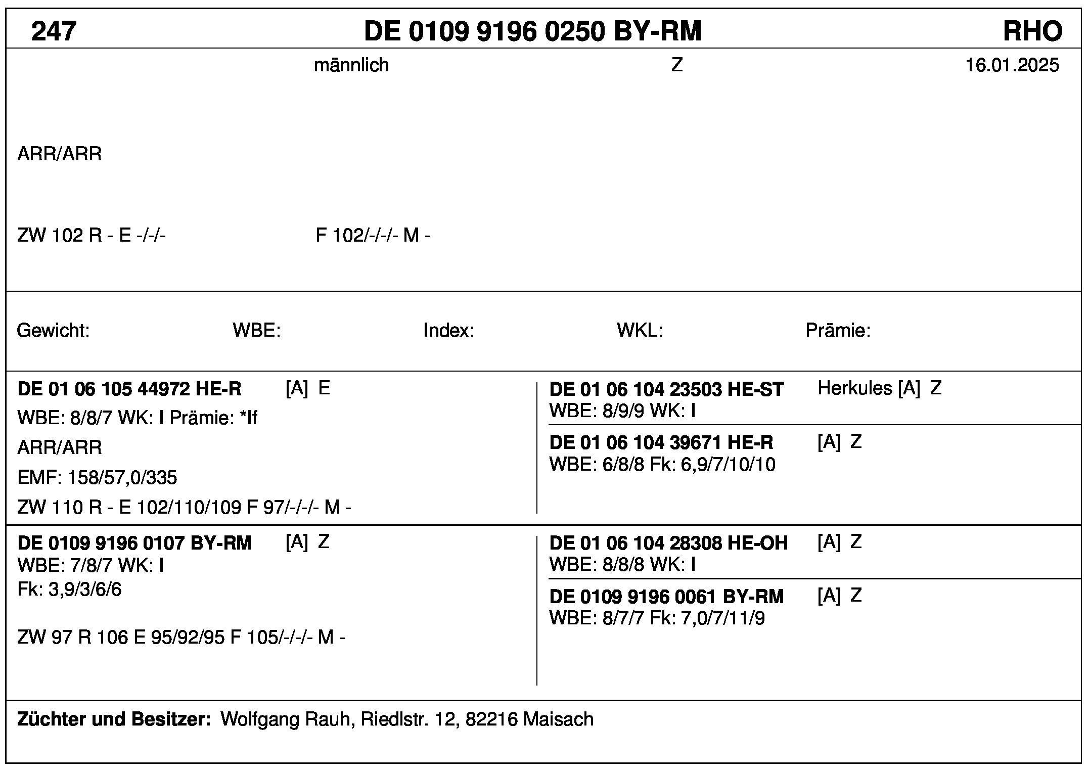 *** nicht für Herdbuchzüchter, nicht stationsgeprüft