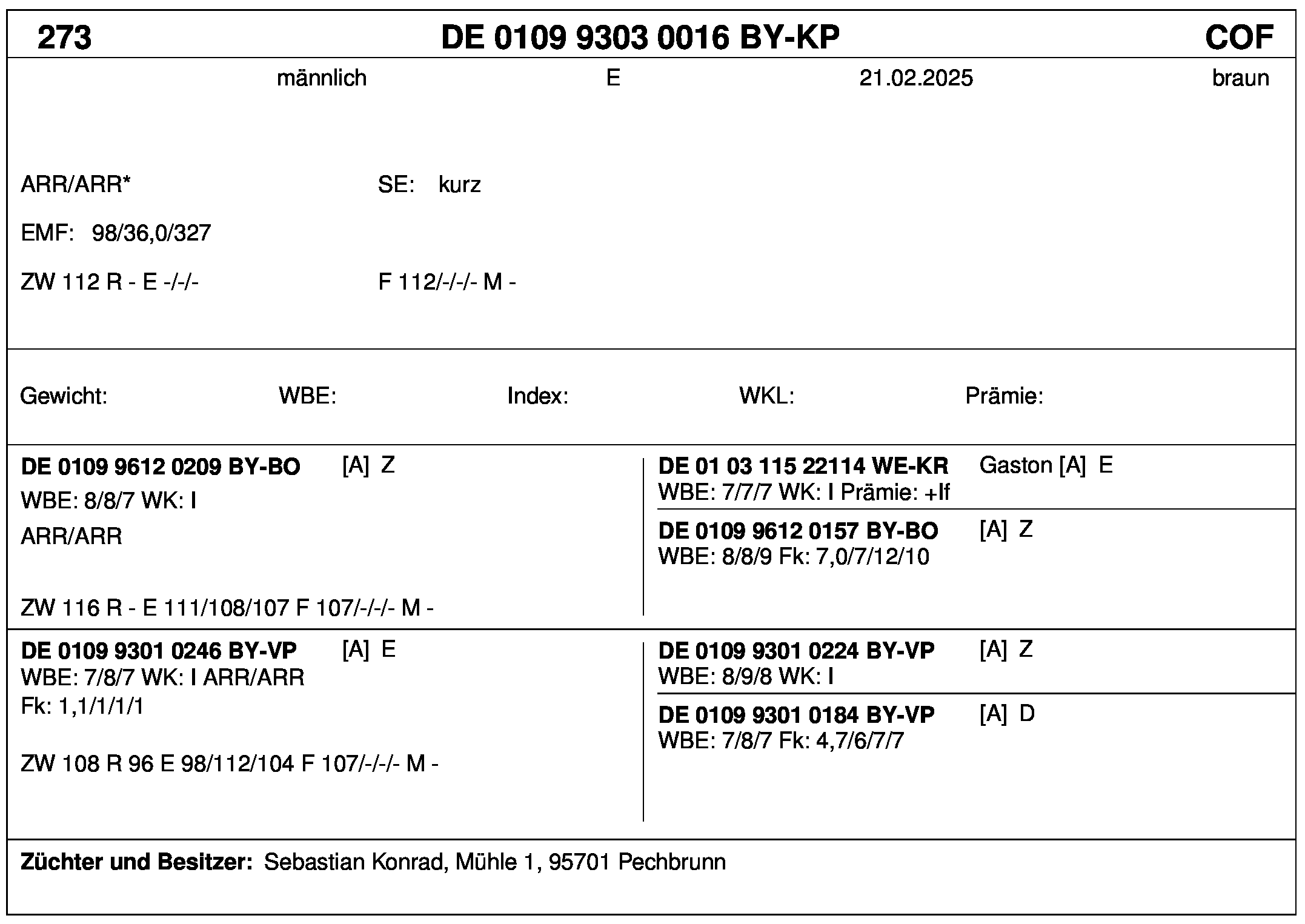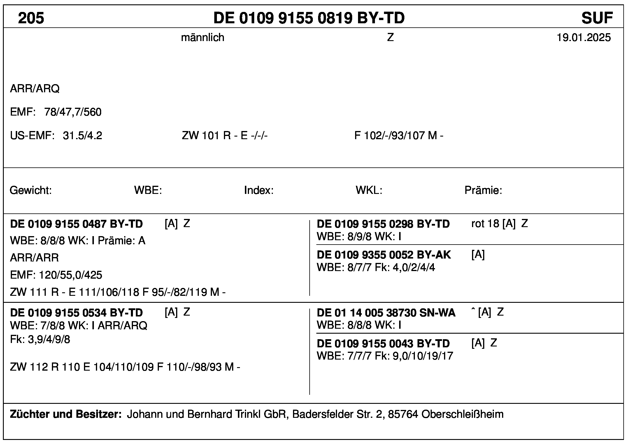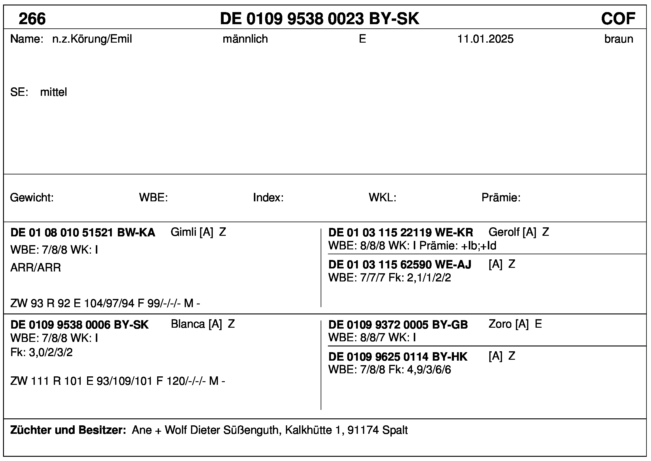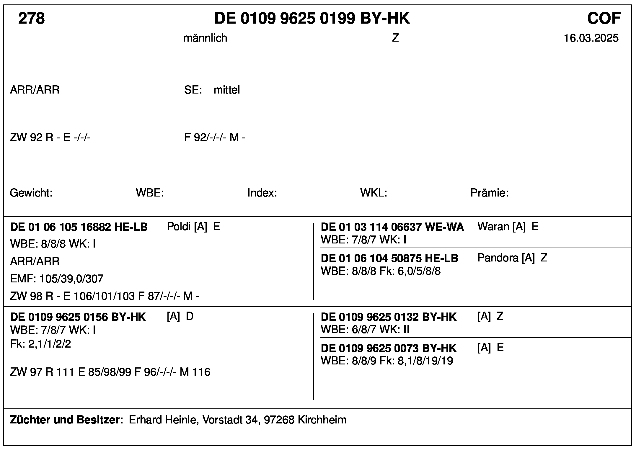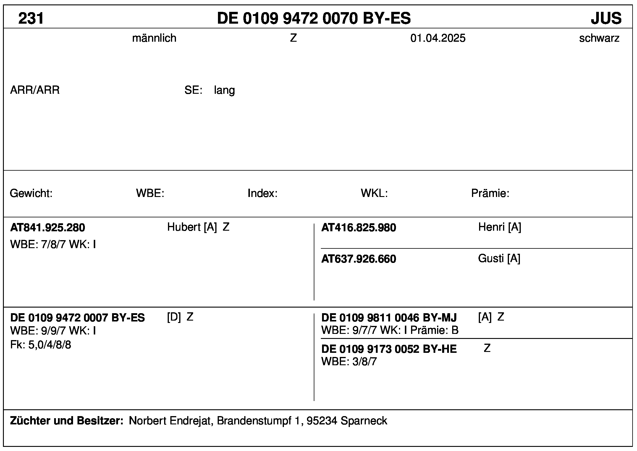 *** nicht für Herdbuchzüchter, nicht stationsgeprüft
