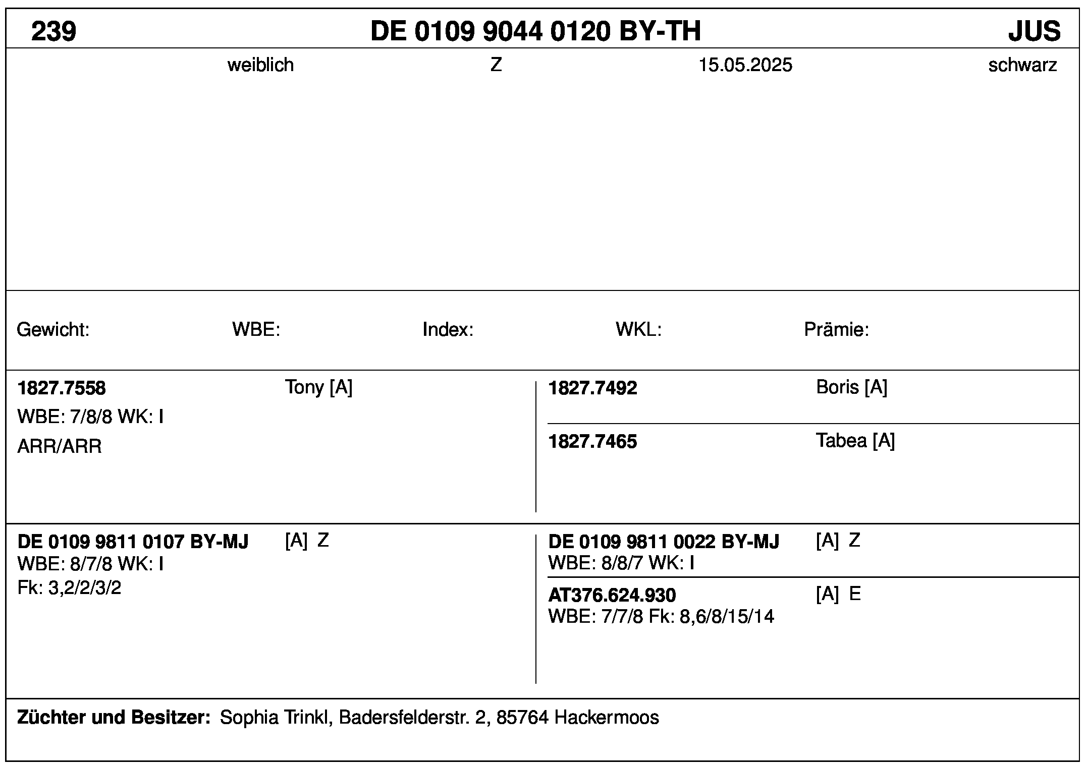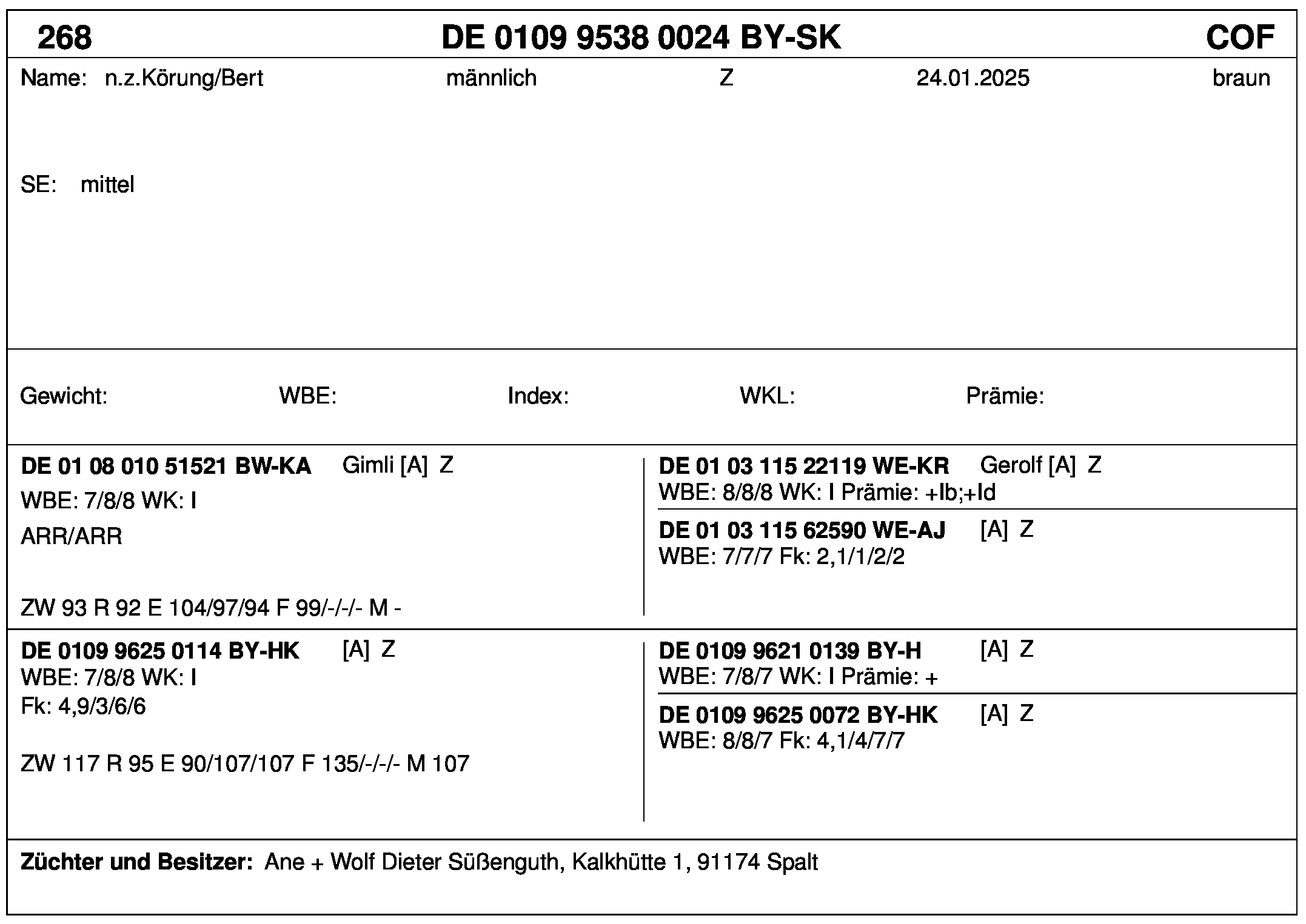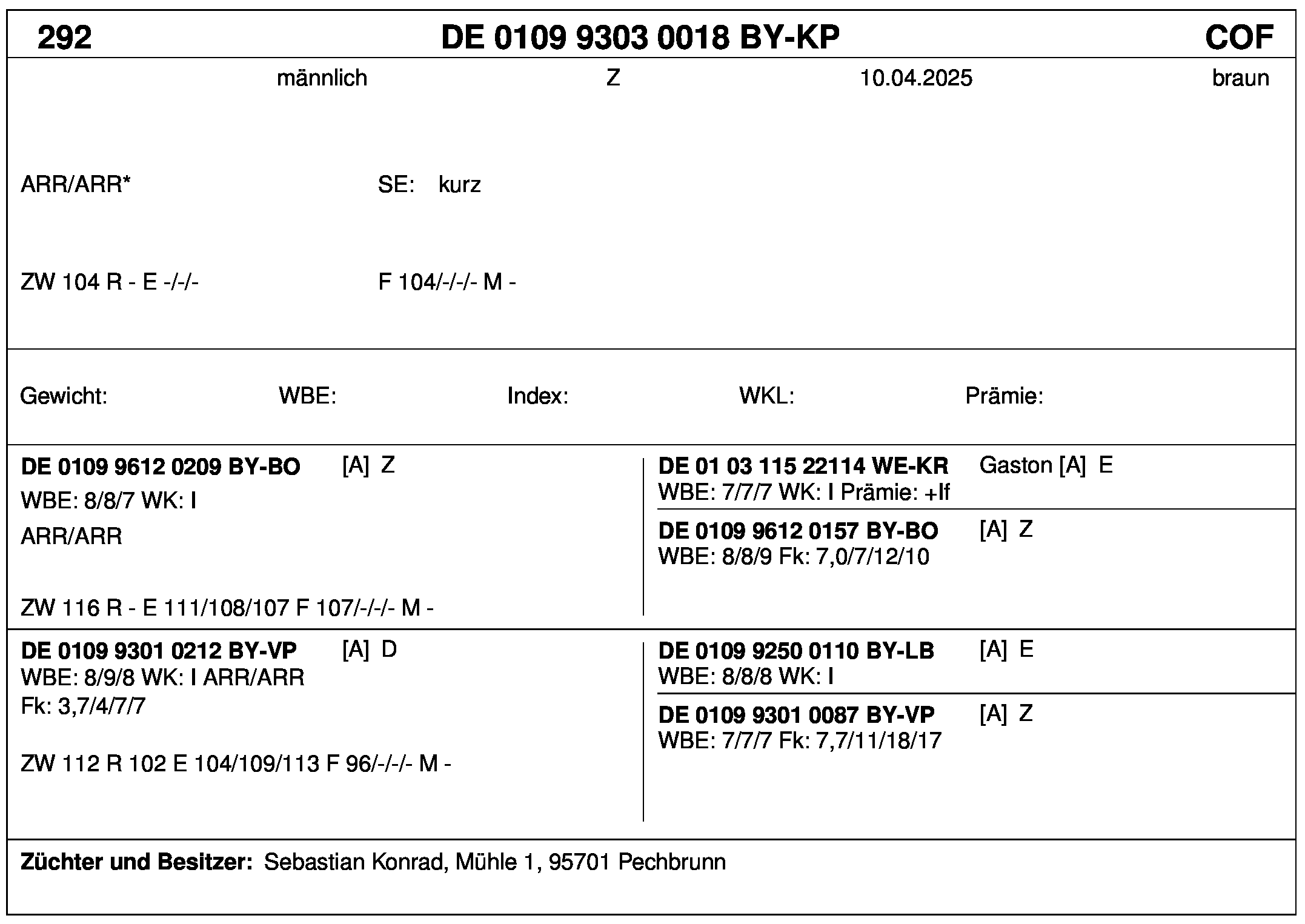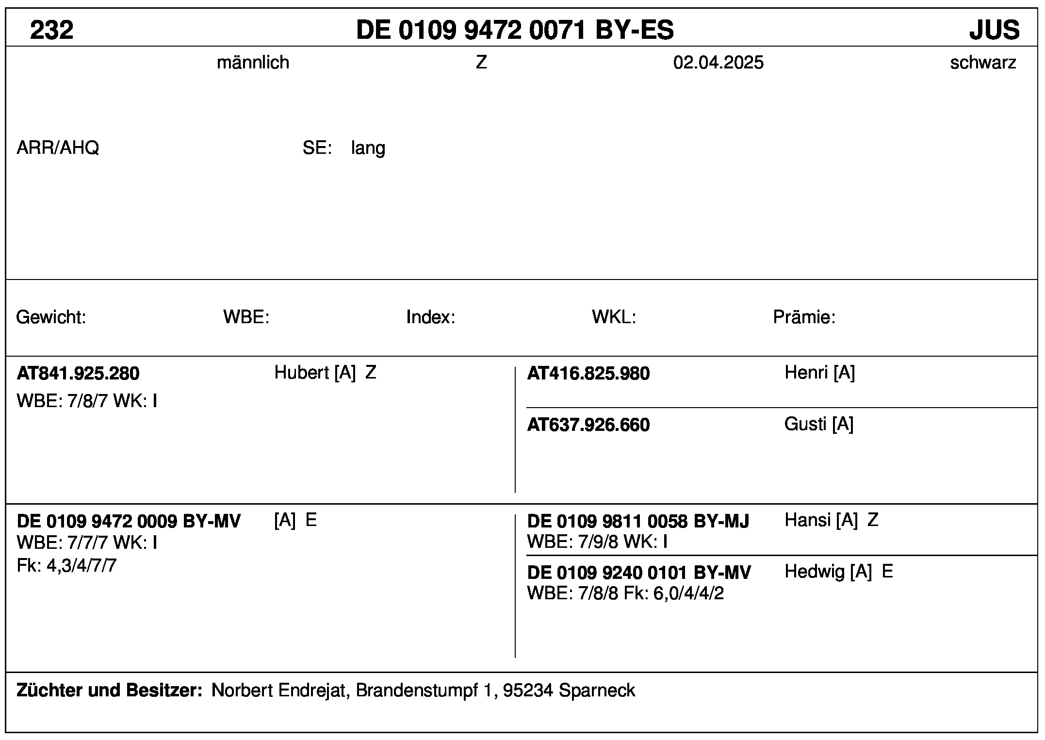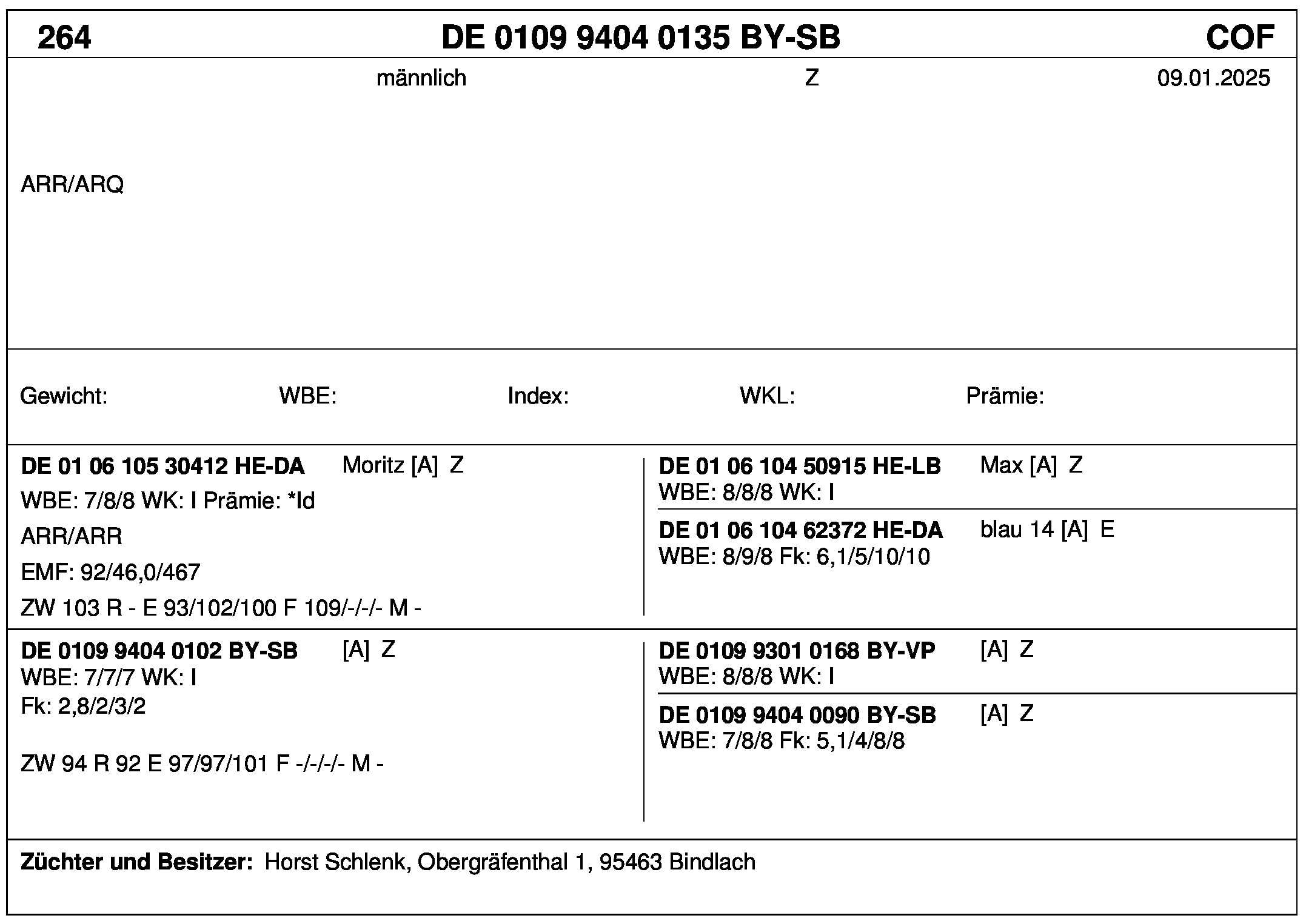 *** nicht für Herdbuchzüchter, nicht stationsgeprüft