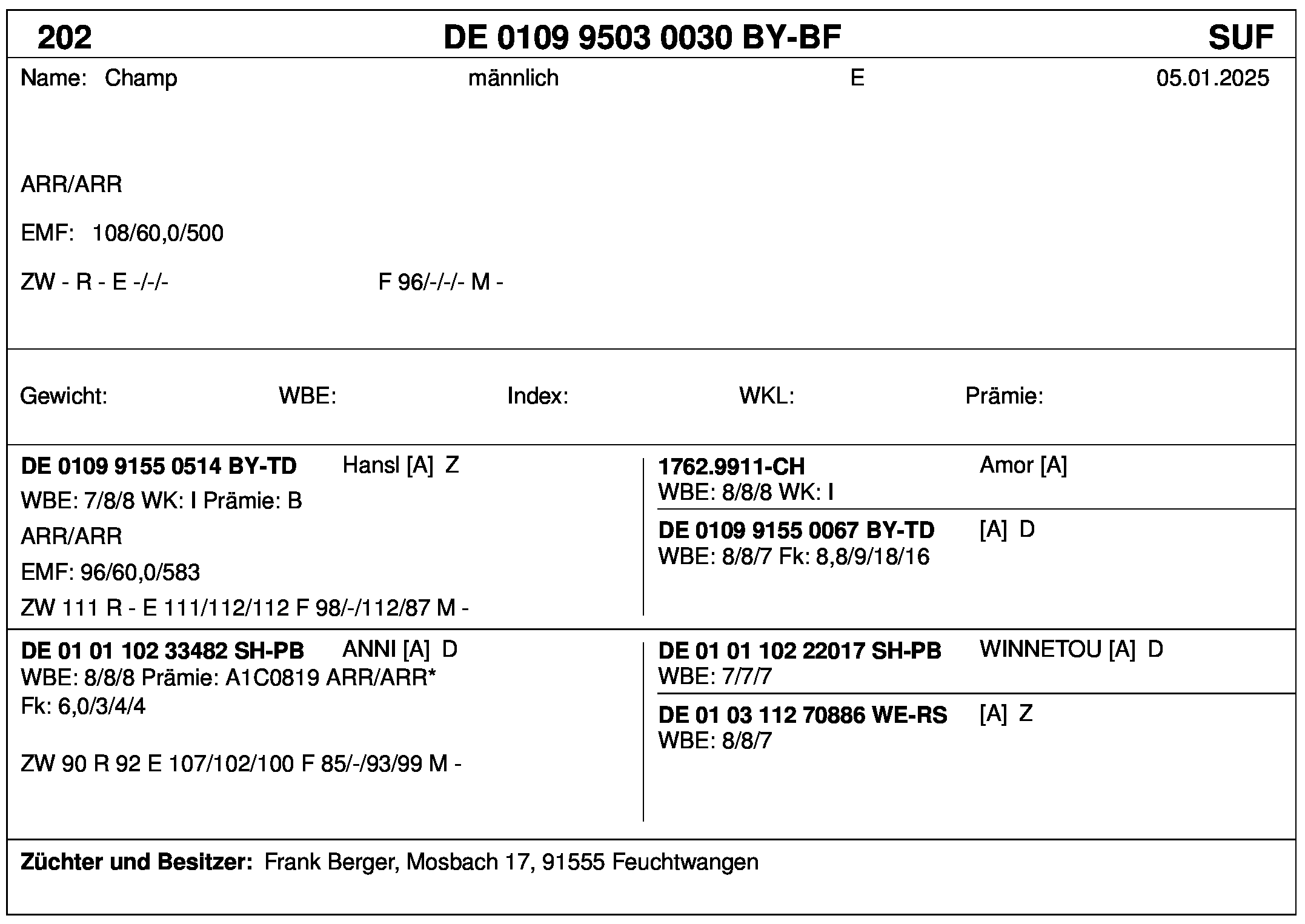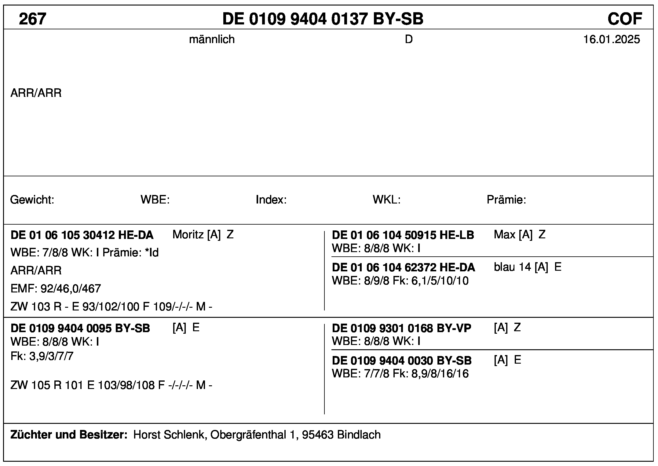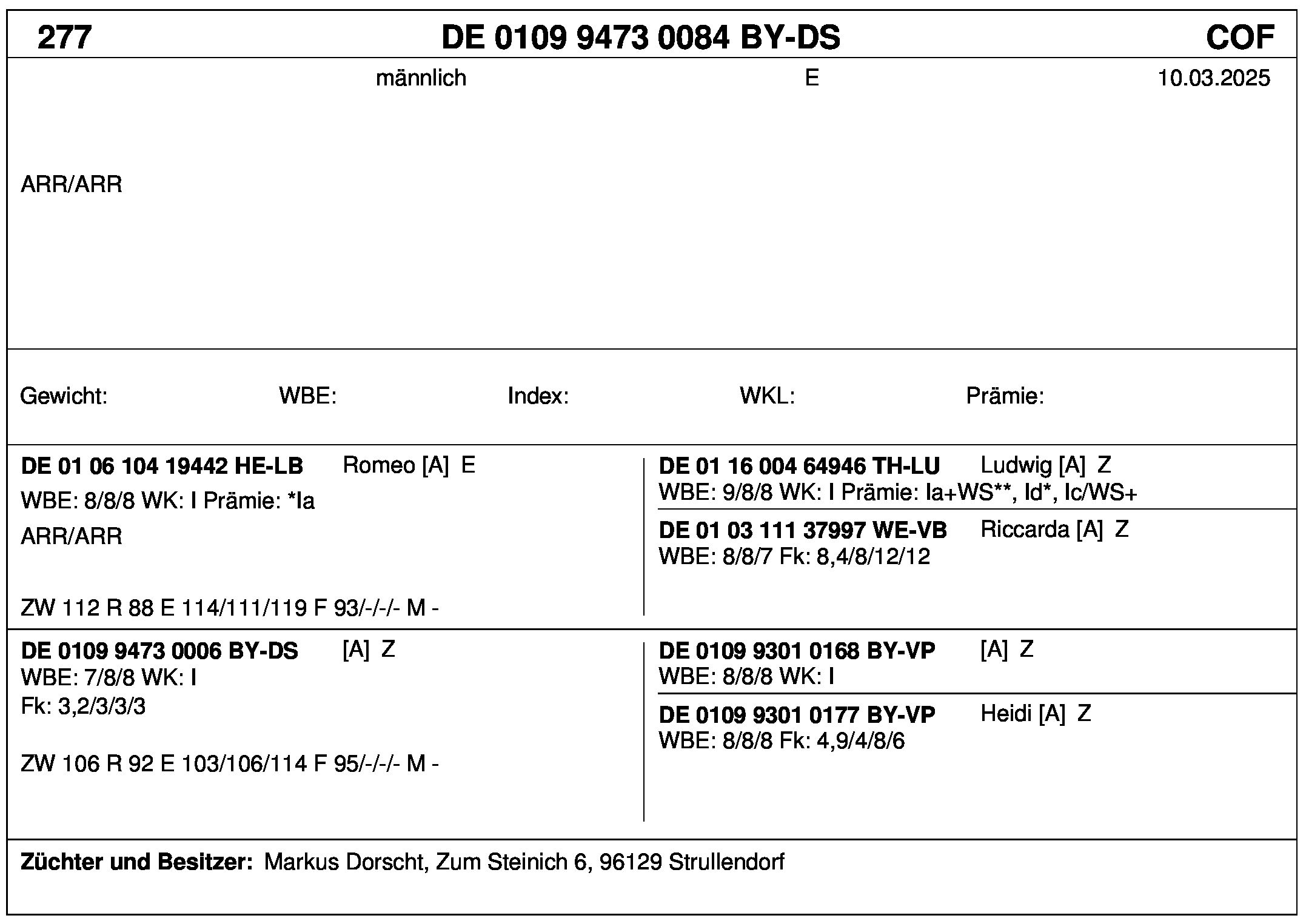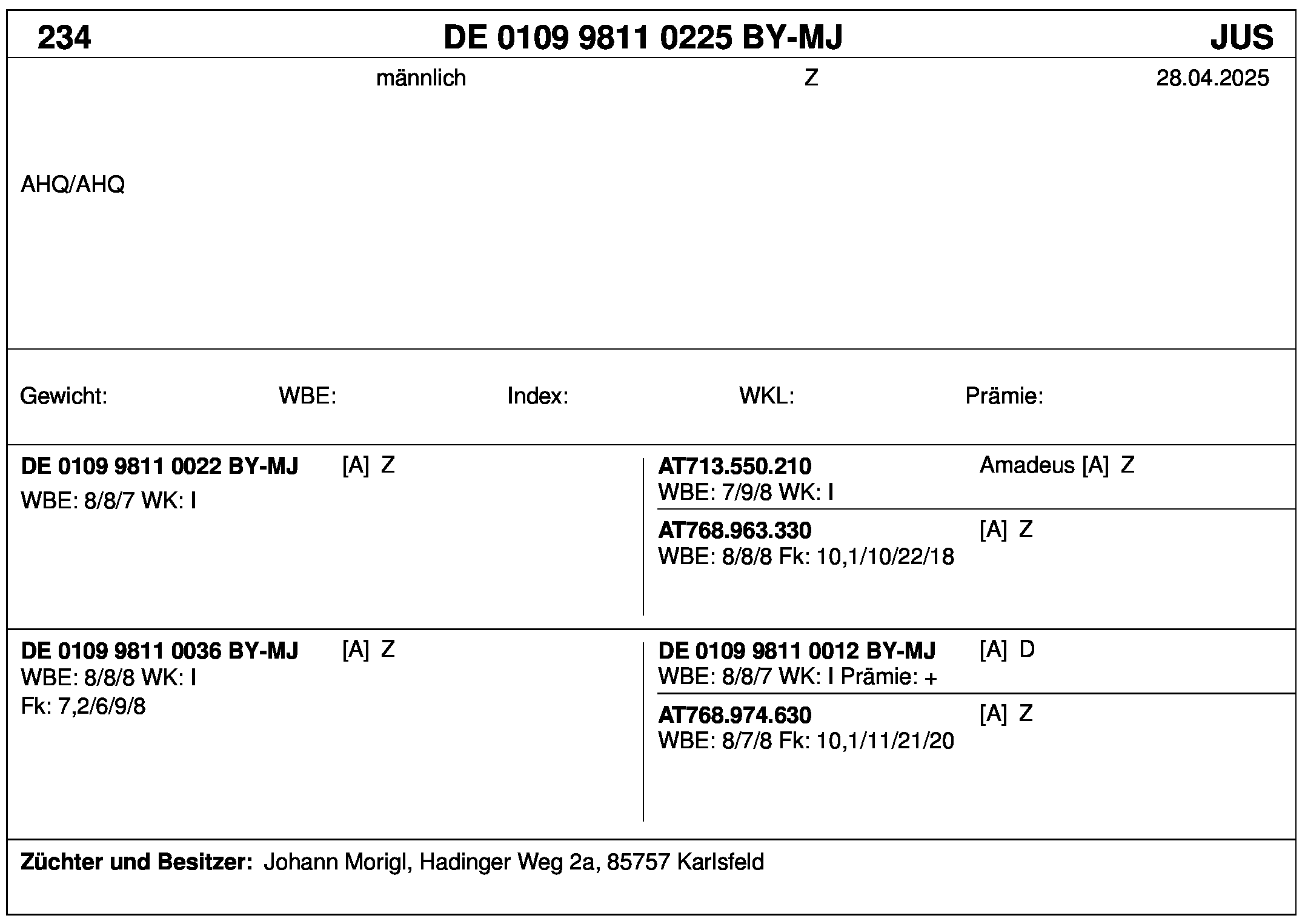 *** nicht für Herdbuchzüchter, nicht stationsgeprüft