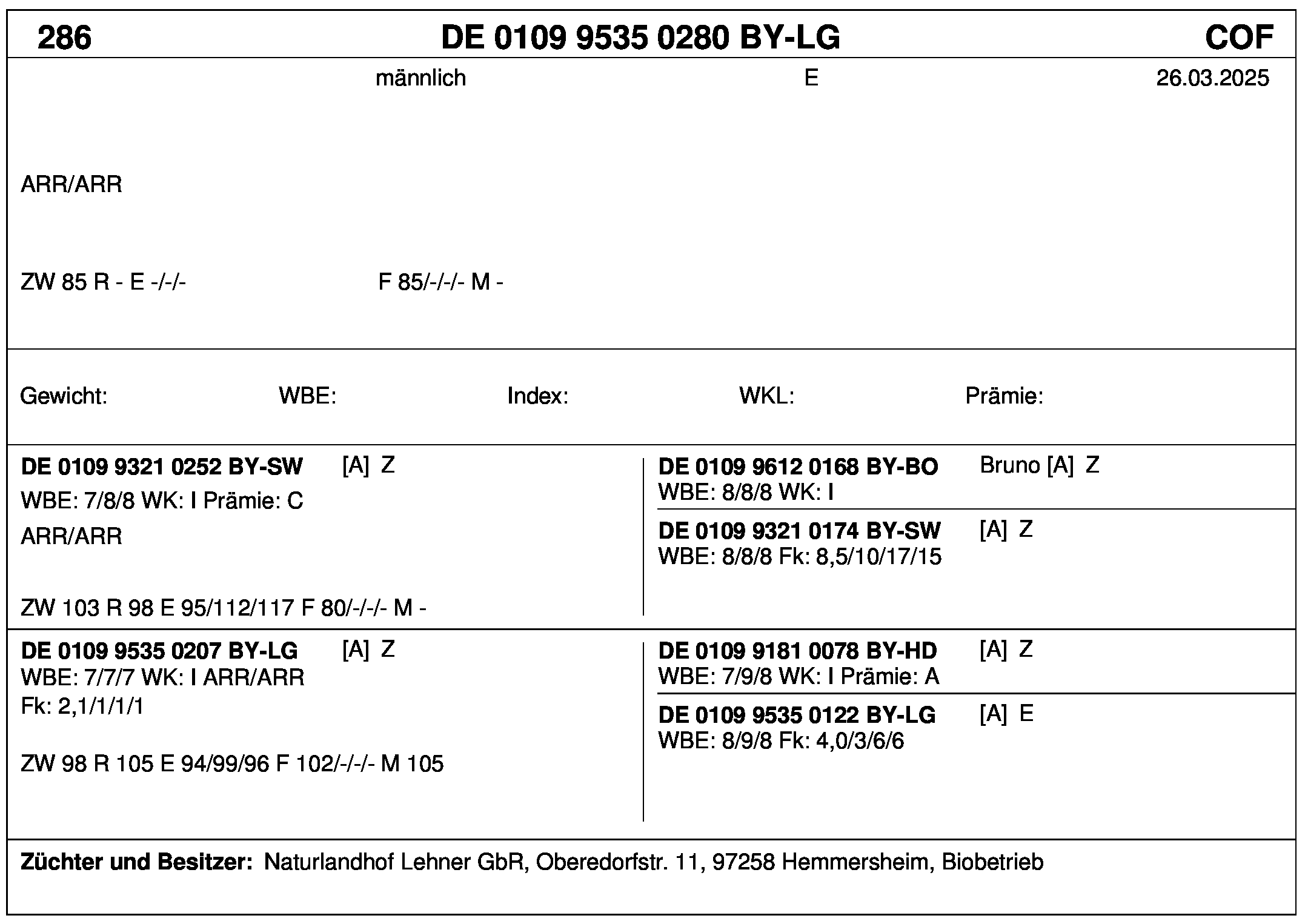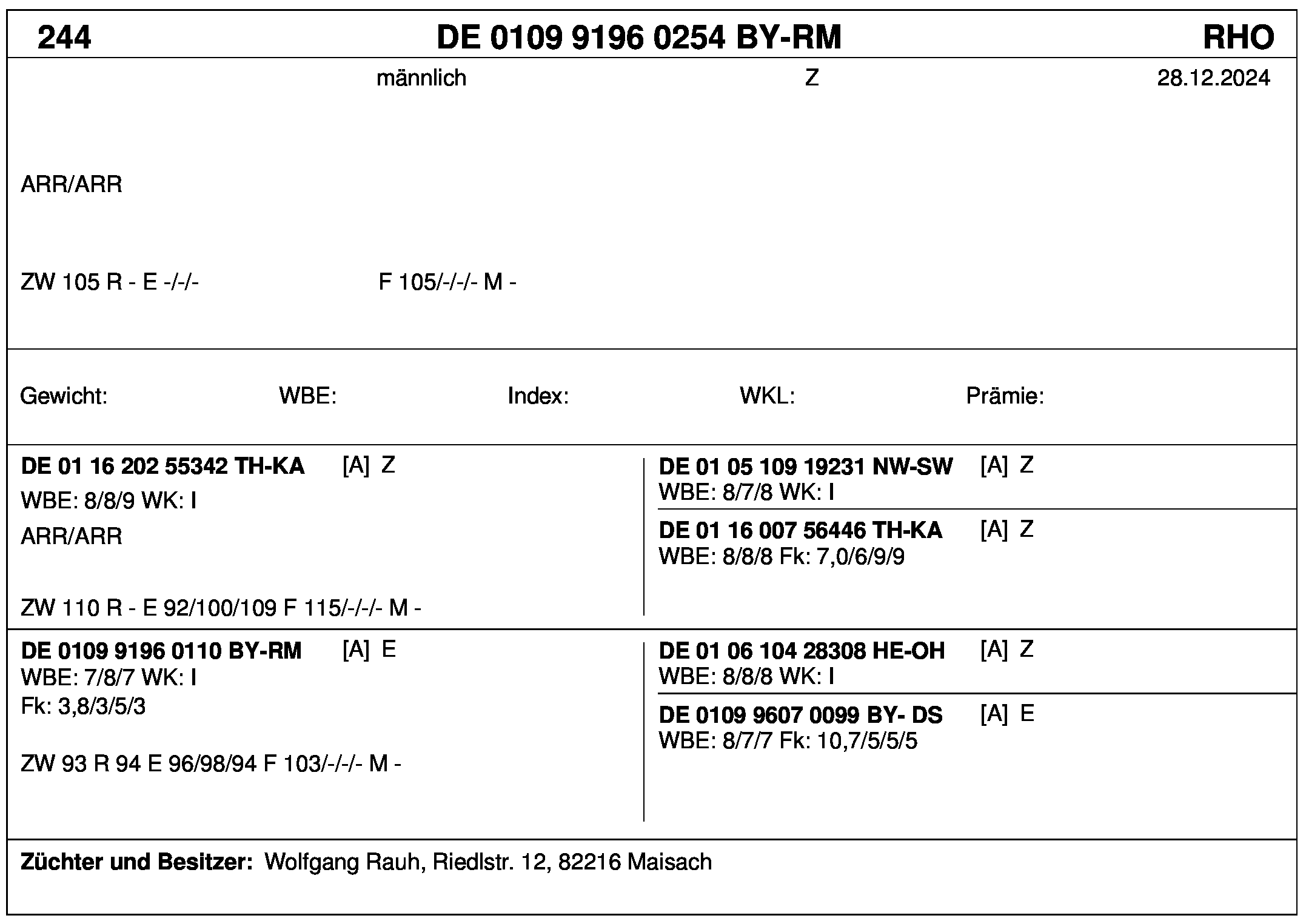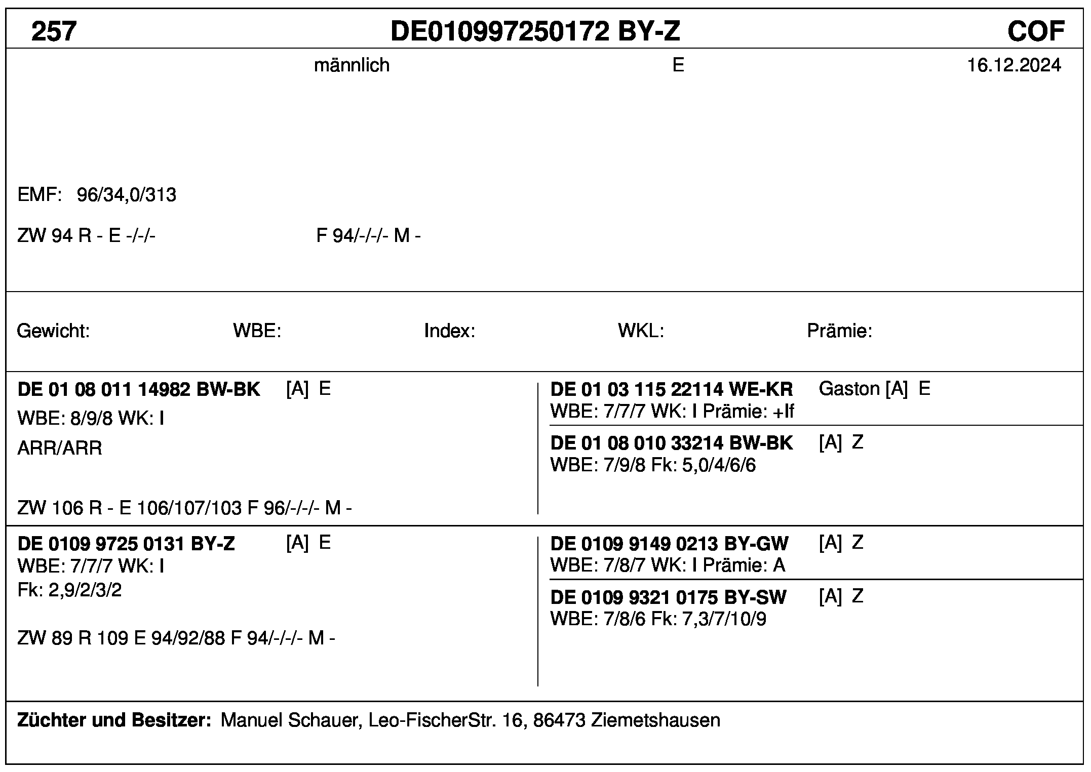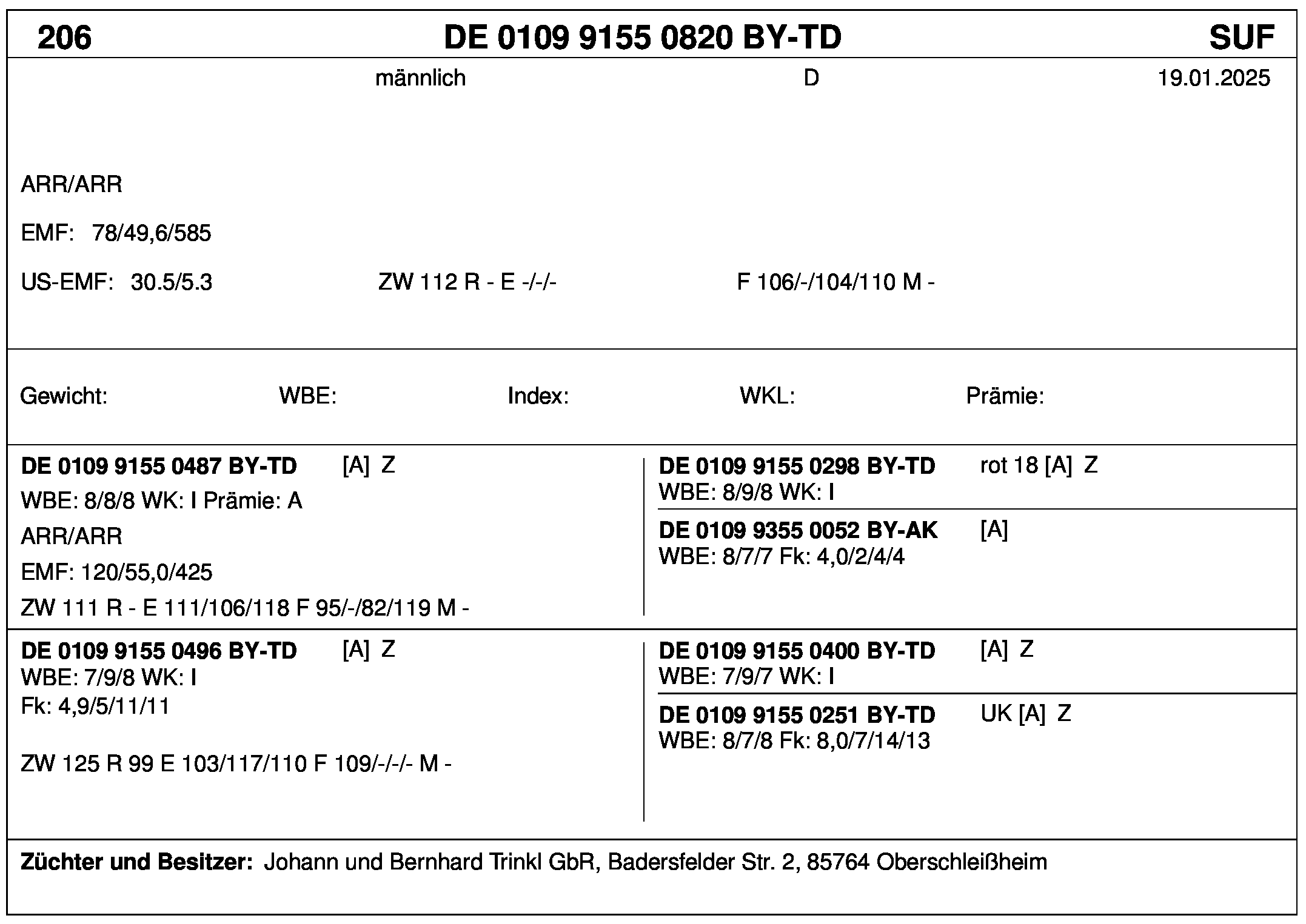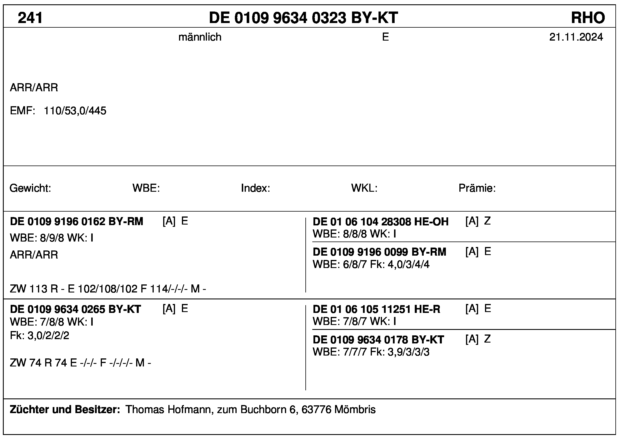*** nicht für Herdbuchzüchter, nicht stationsgeprüft