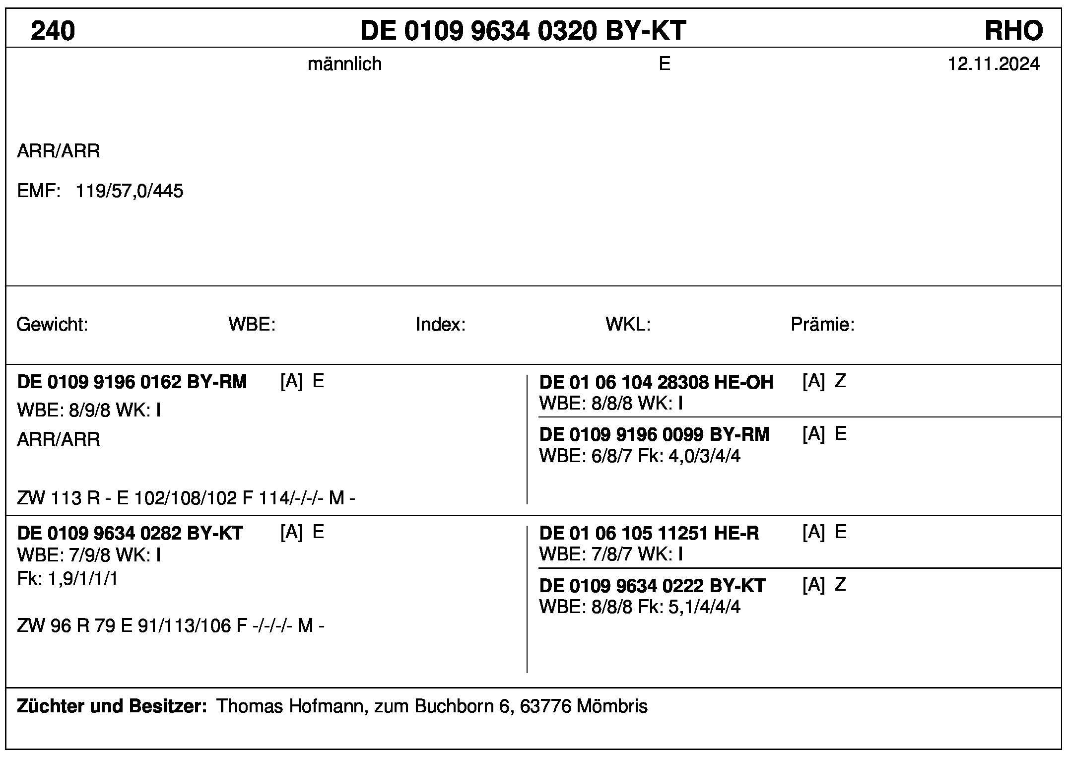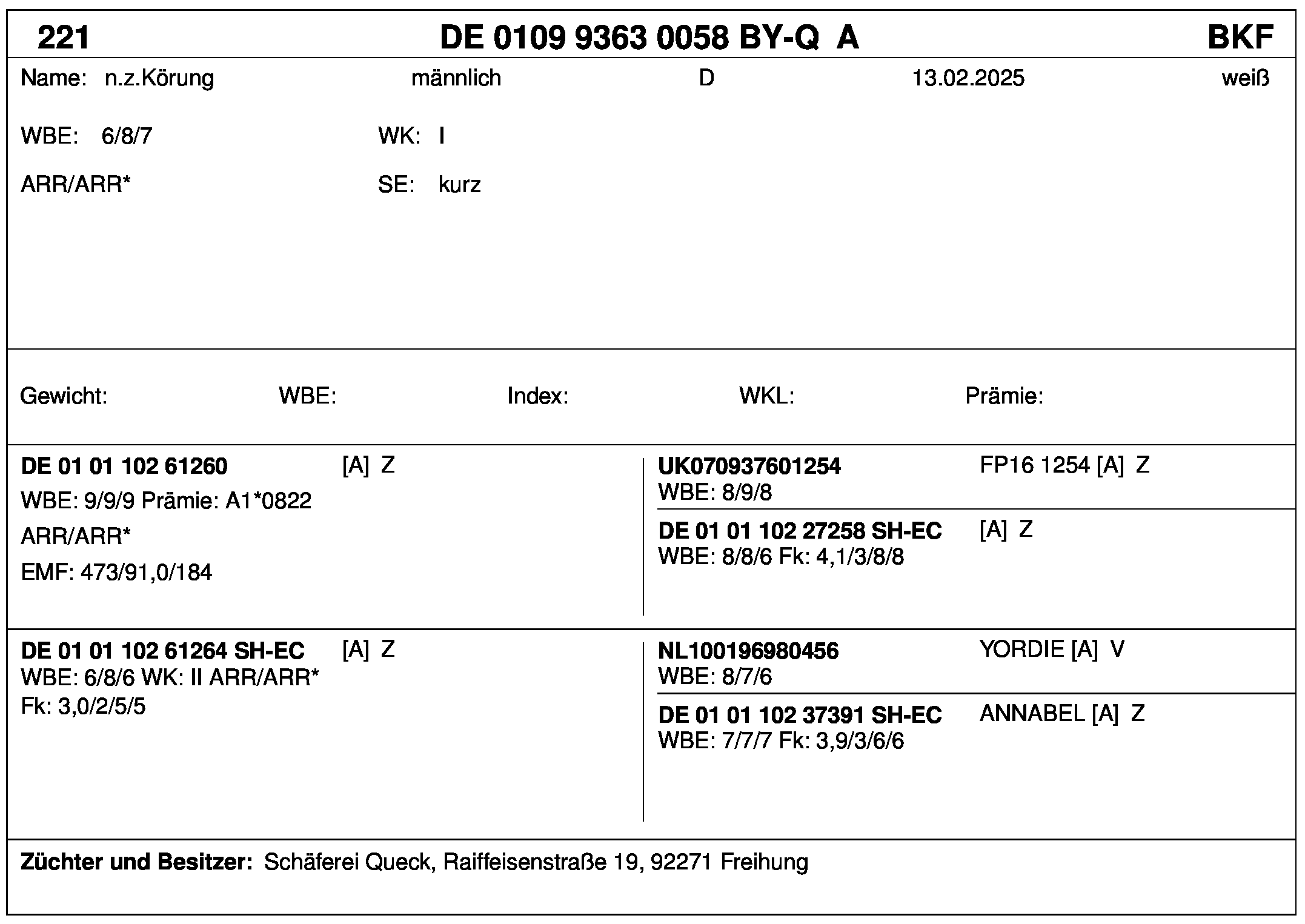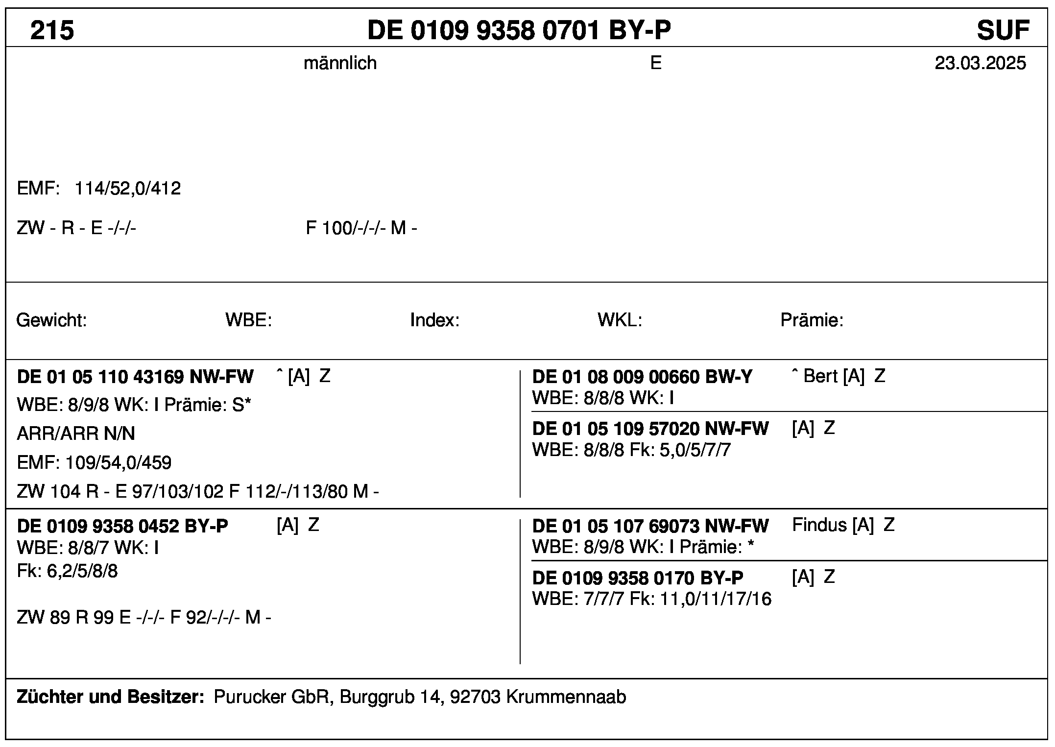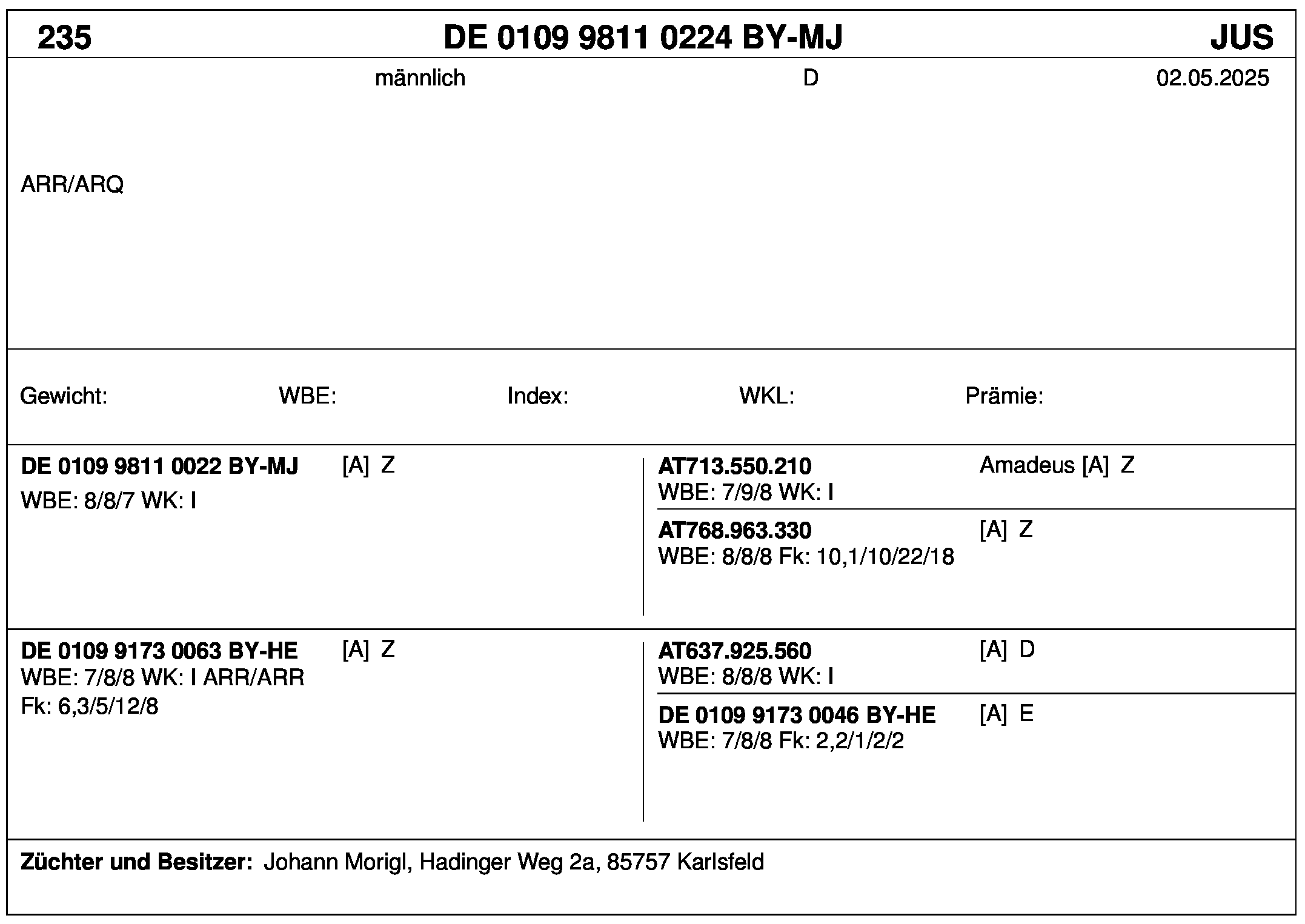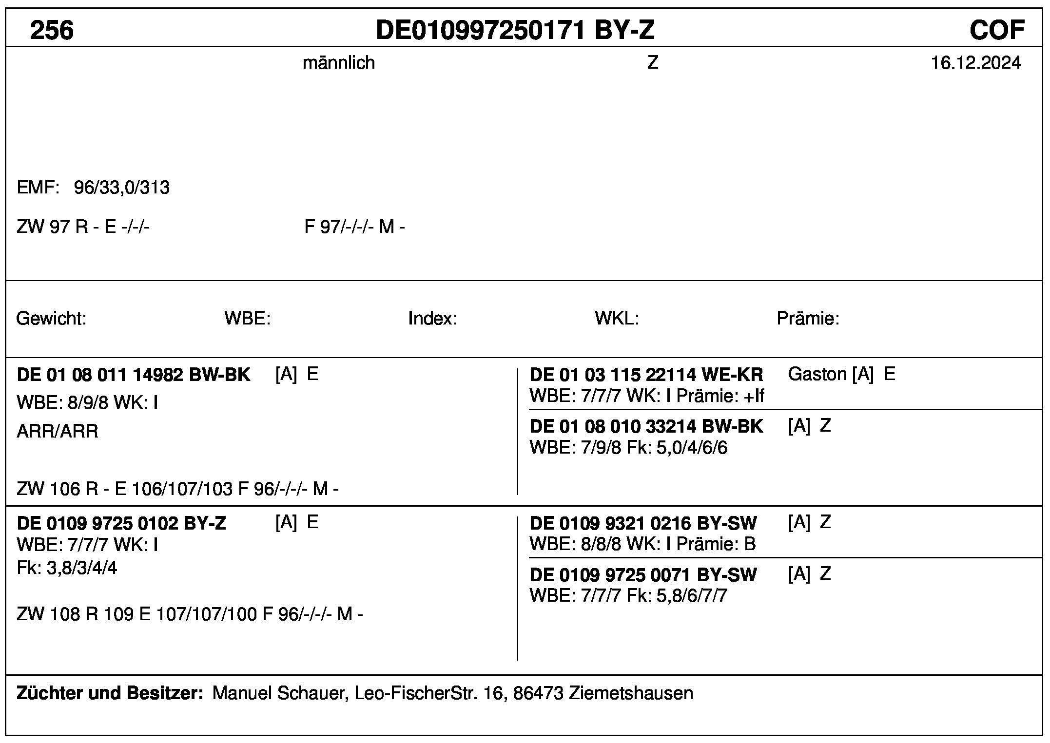 *** nicht für Herdbuchzüchter, nicht stationsgeprüft
