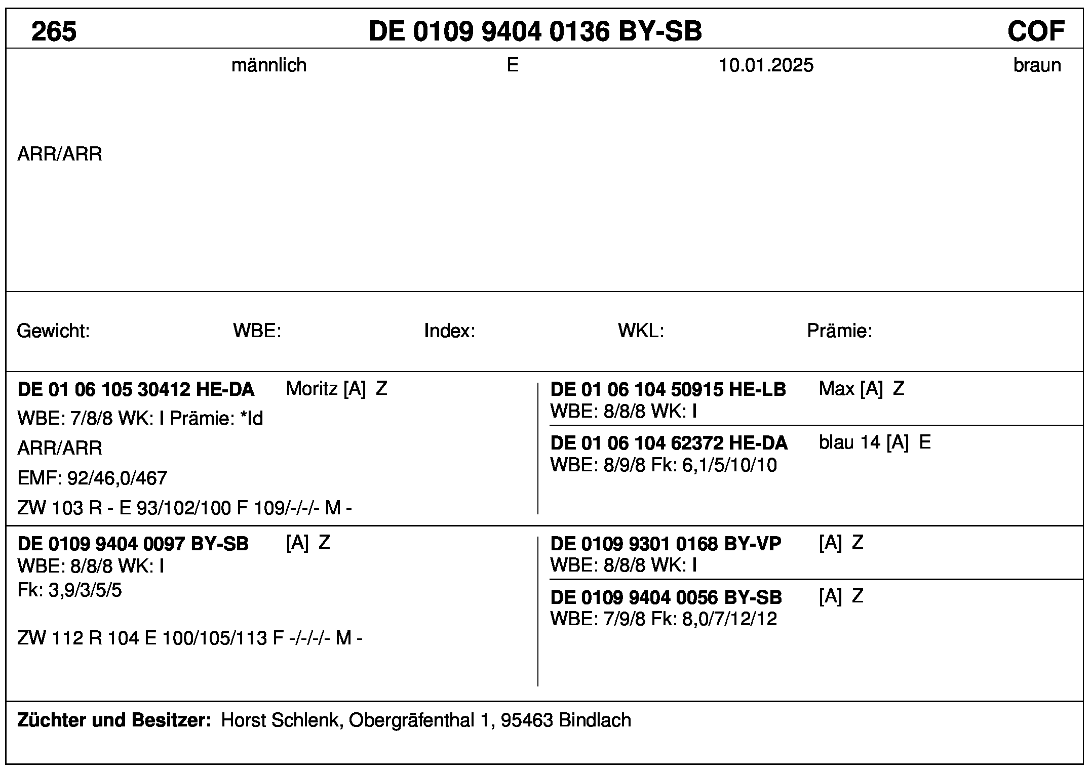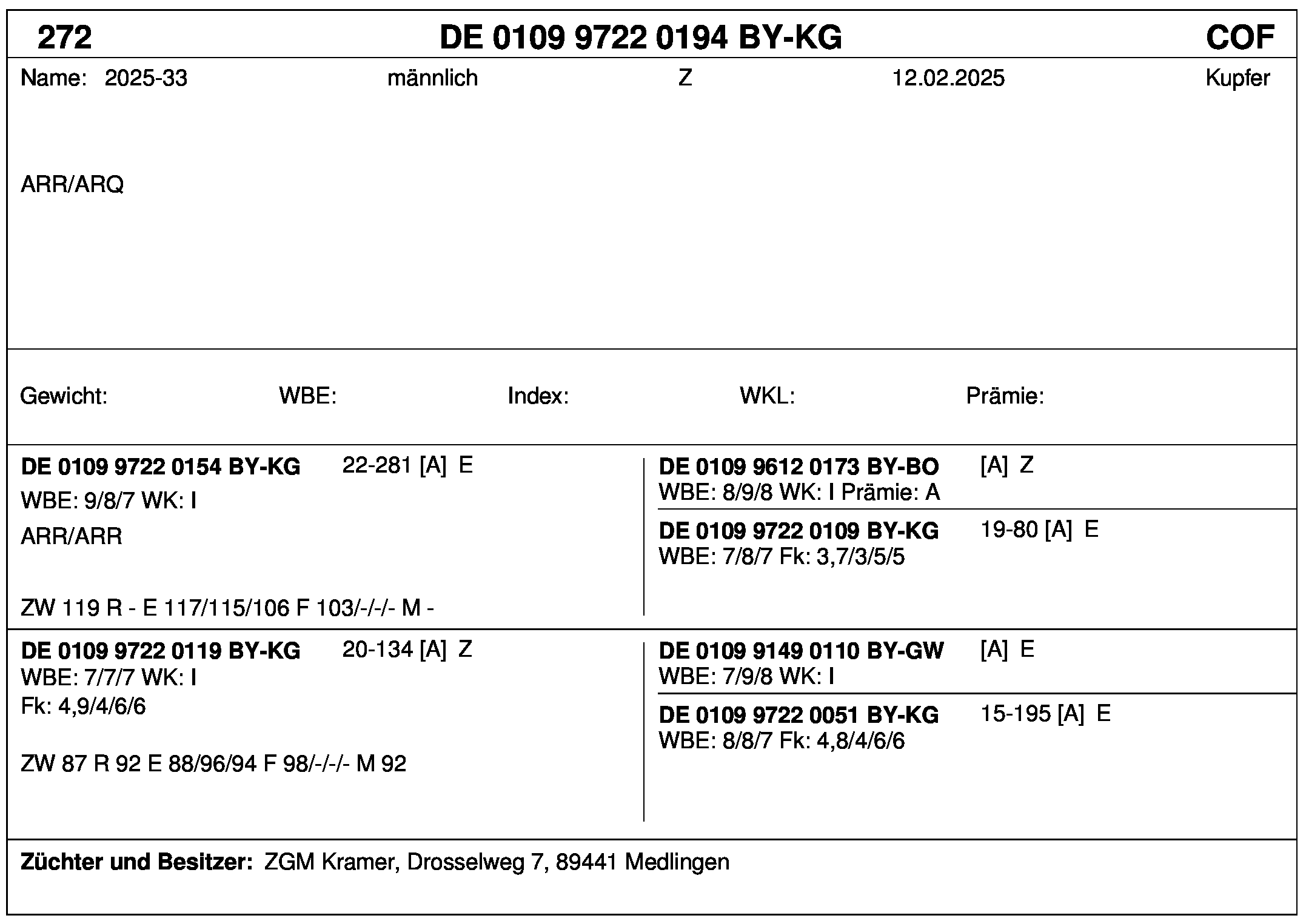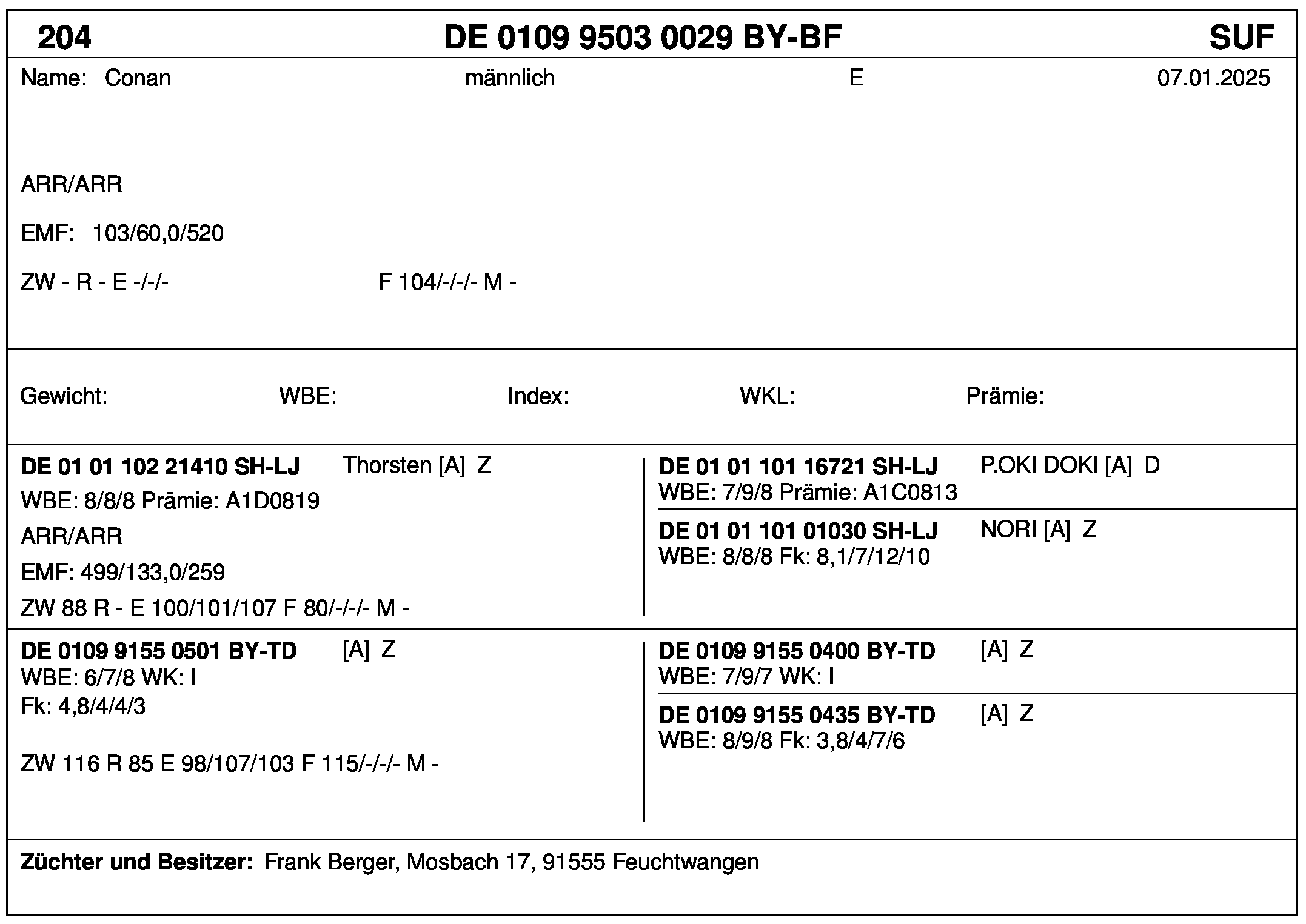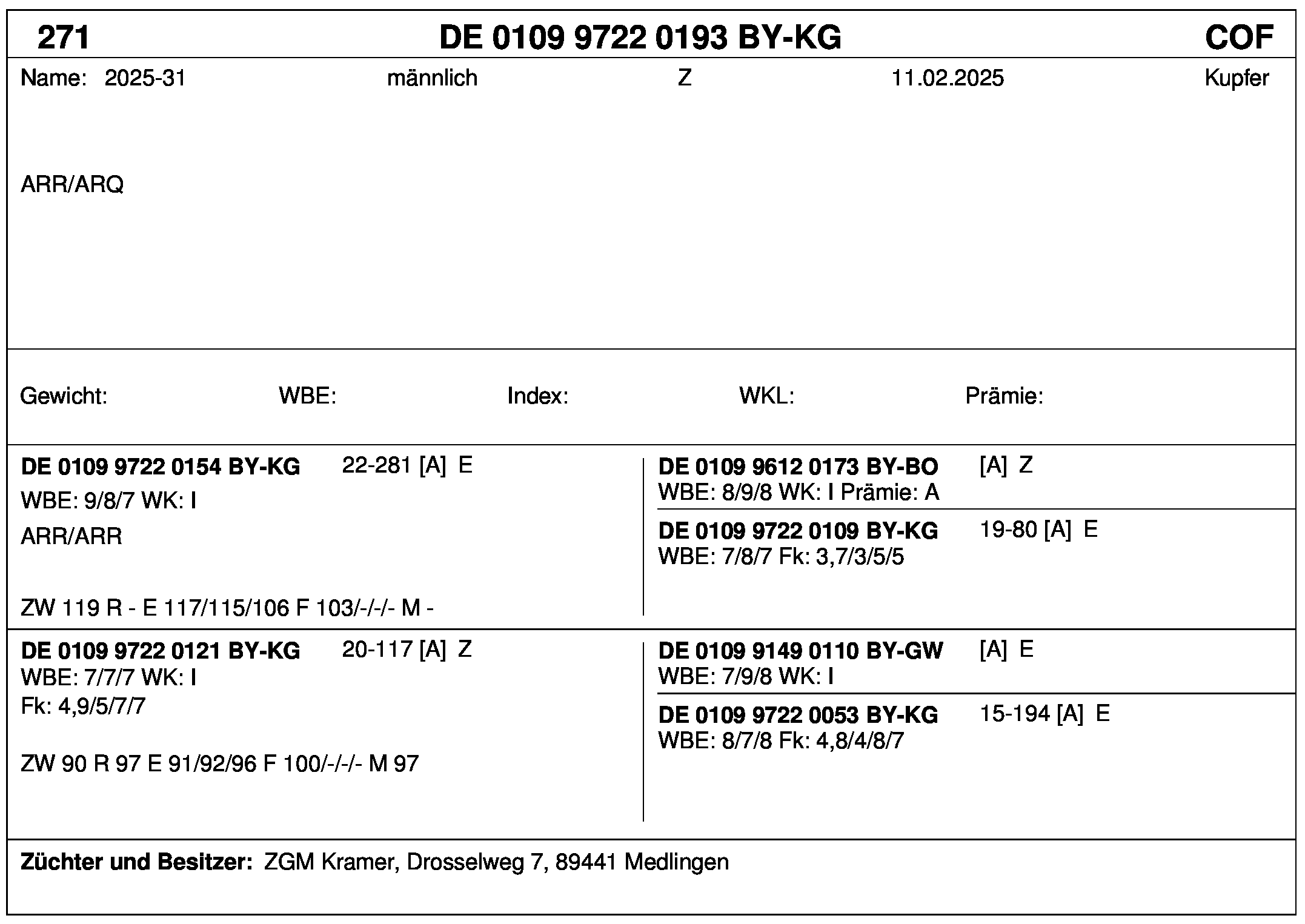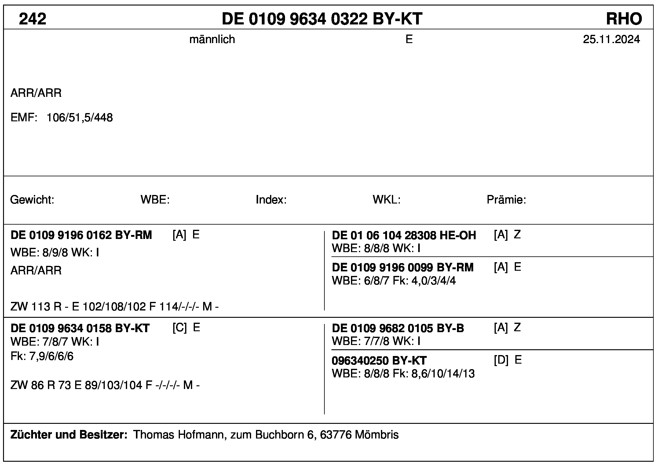 *** nicht für Herdbuchzüchter, nicht stationsgeprüft