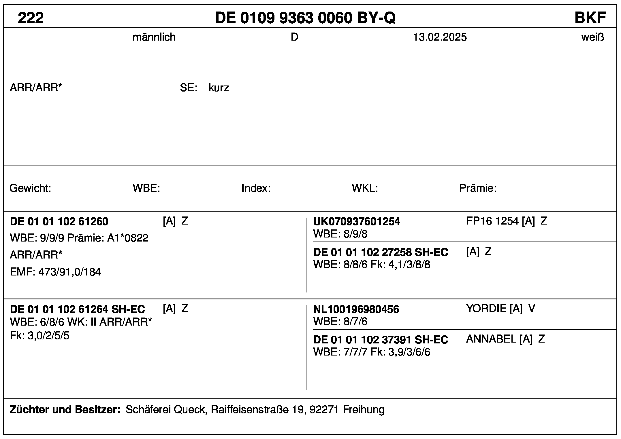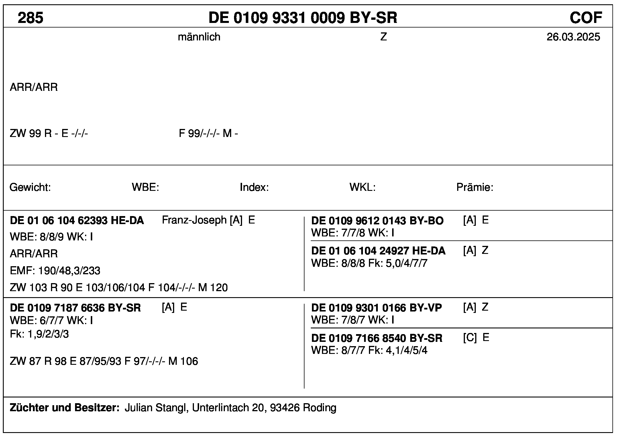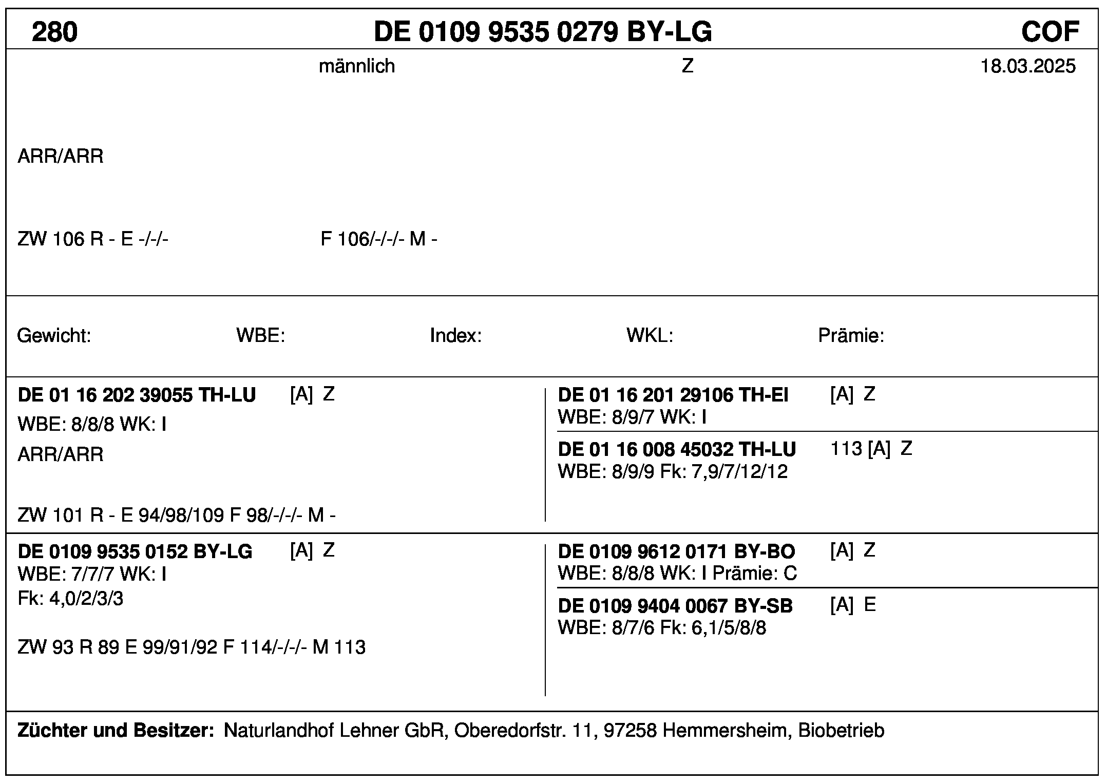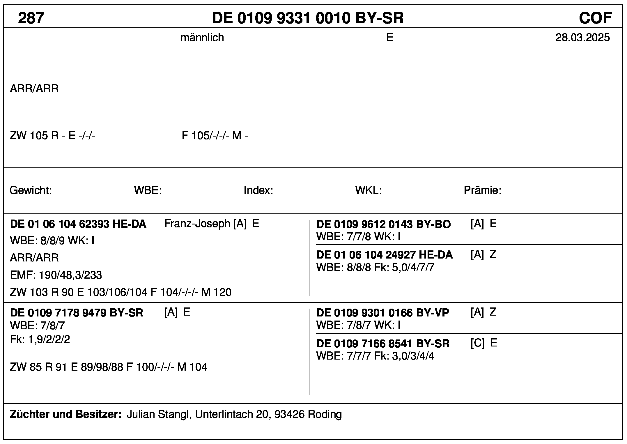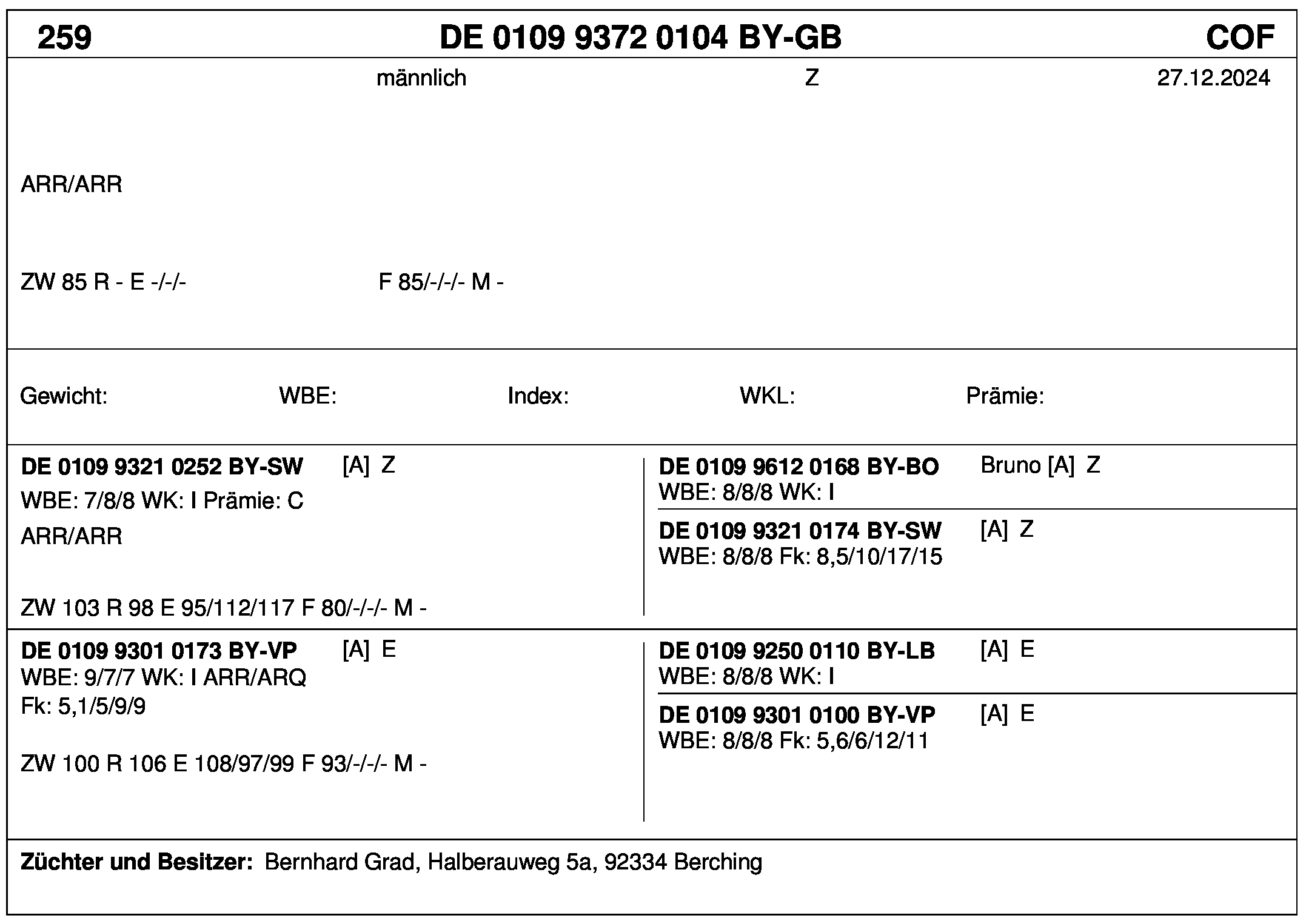 *** nicht für Herdbuchzüchter, nicht stationsgeprüft