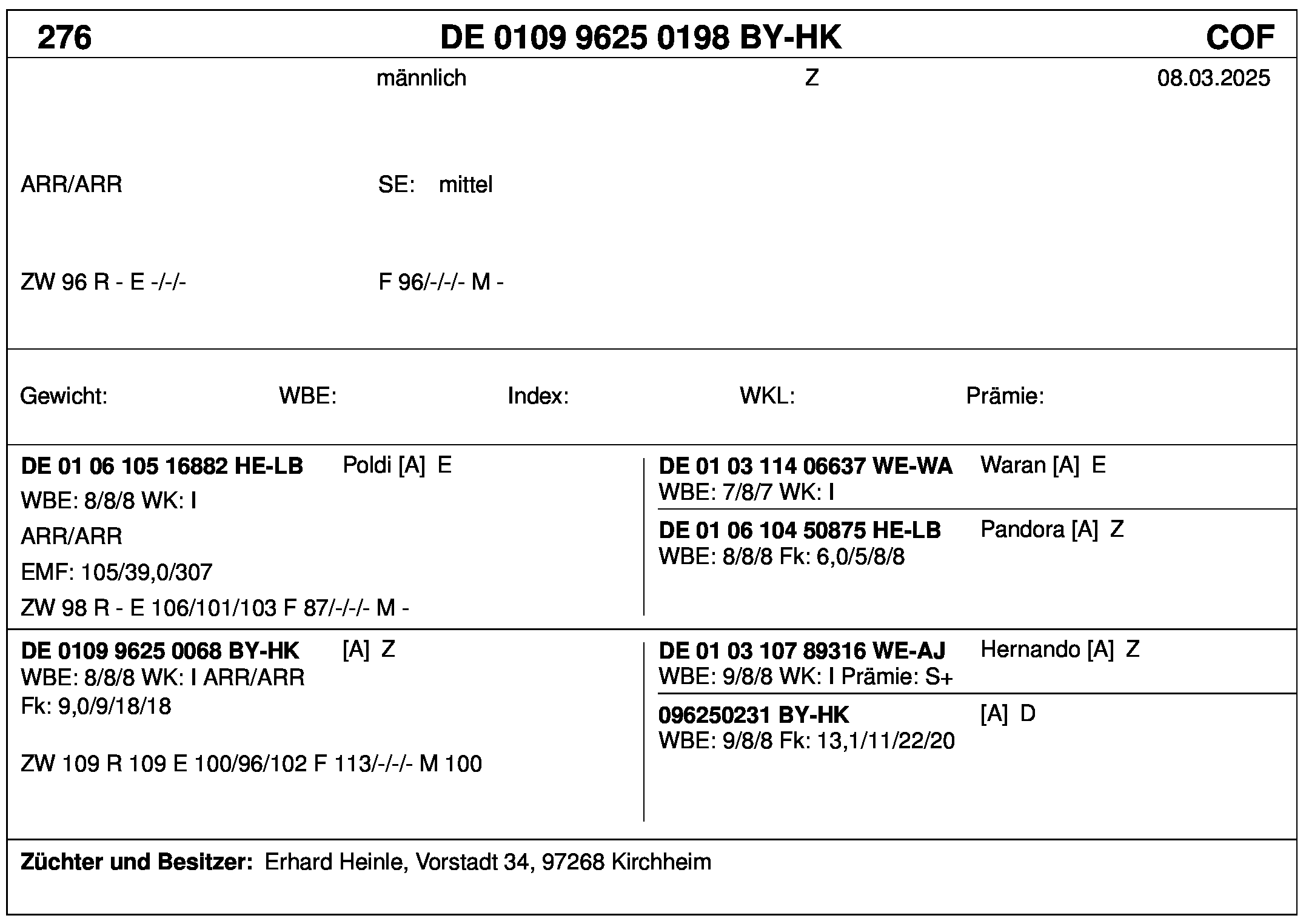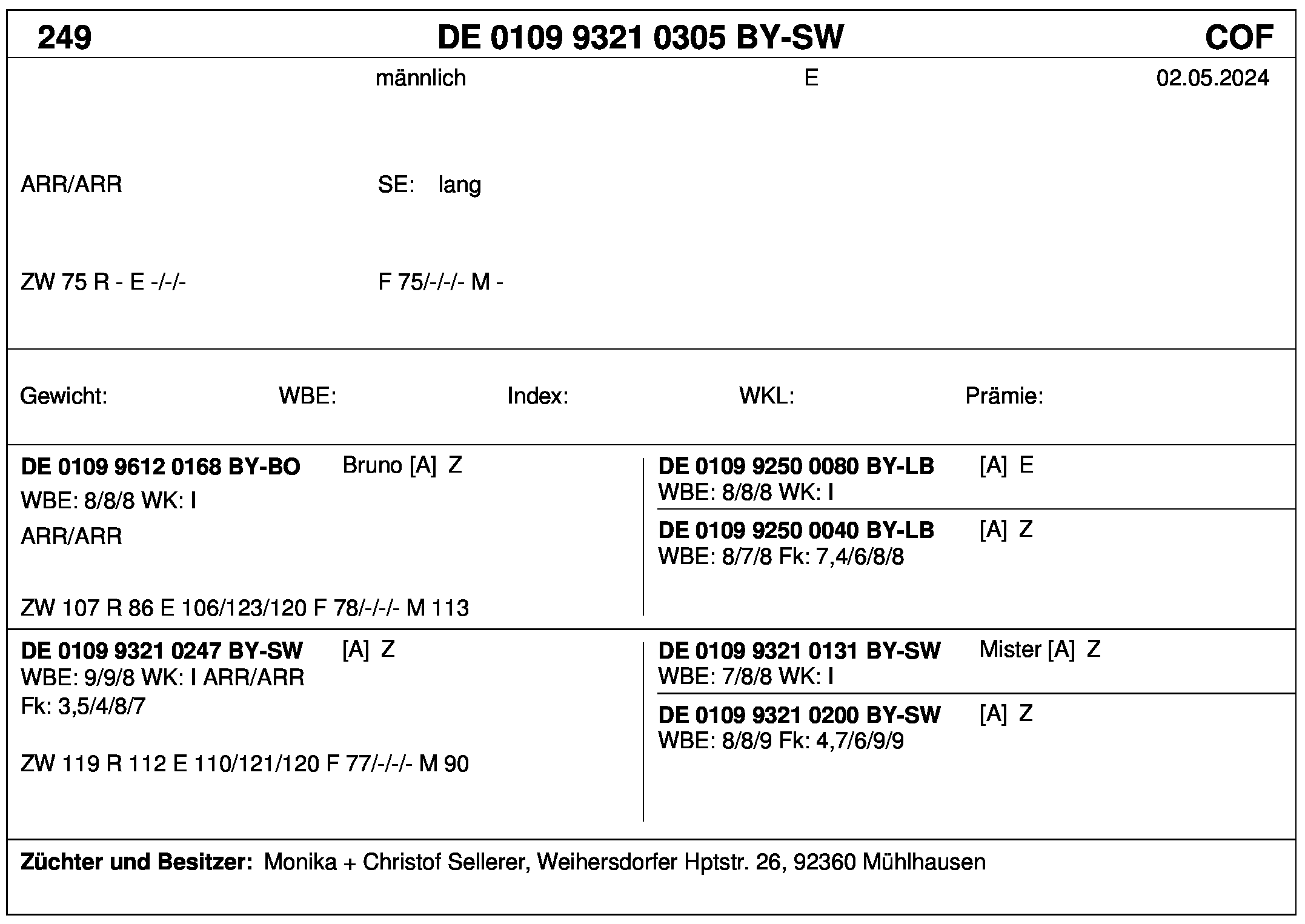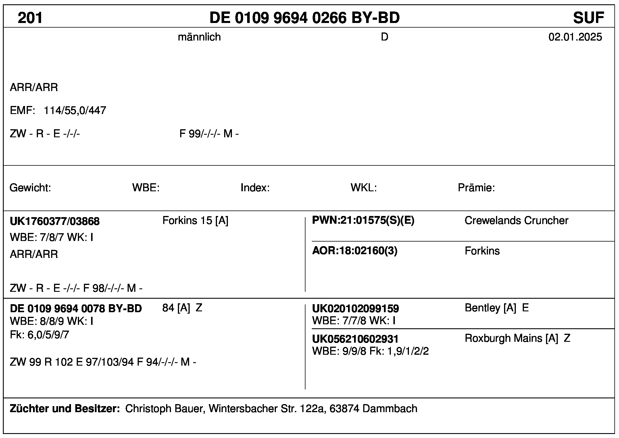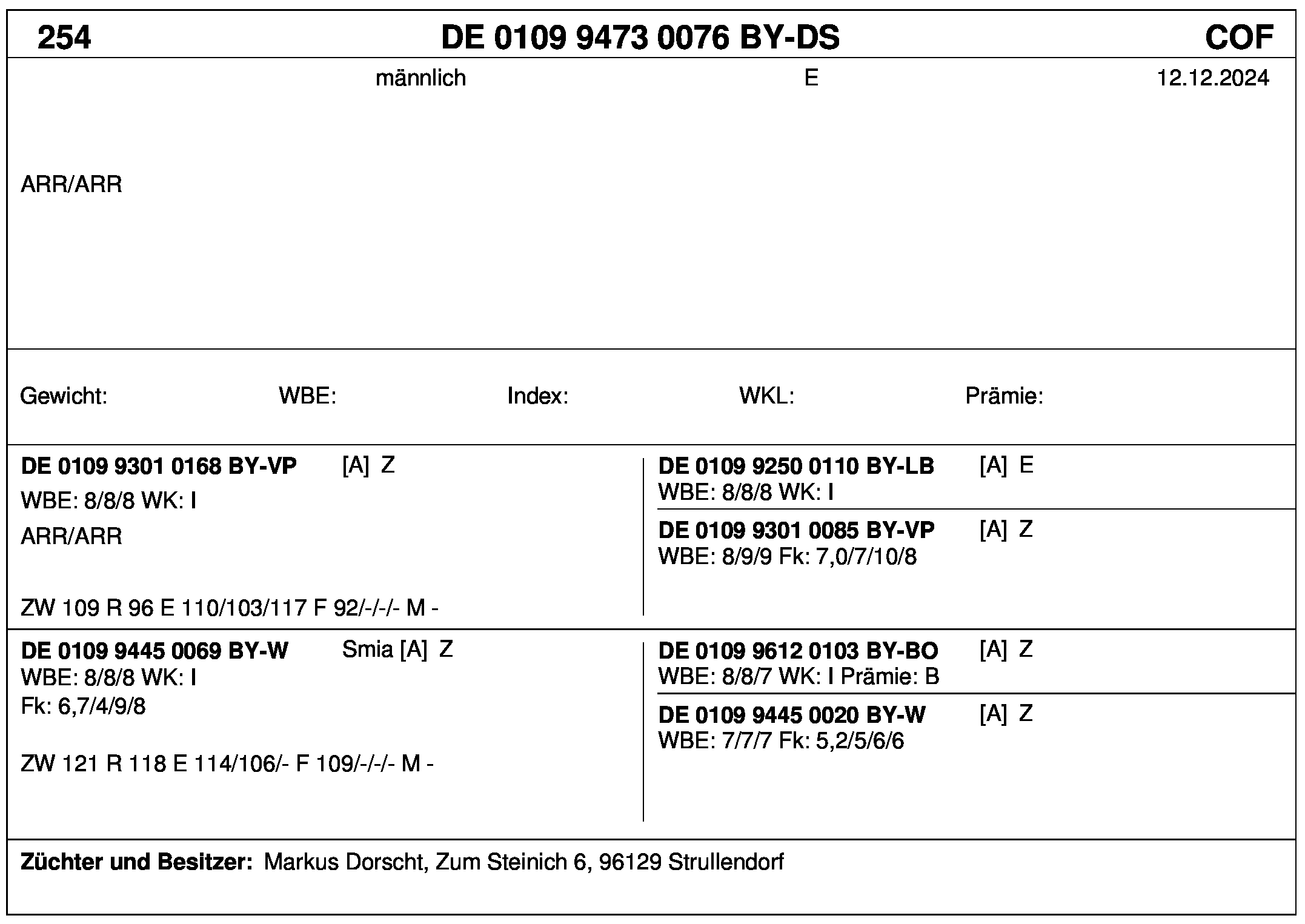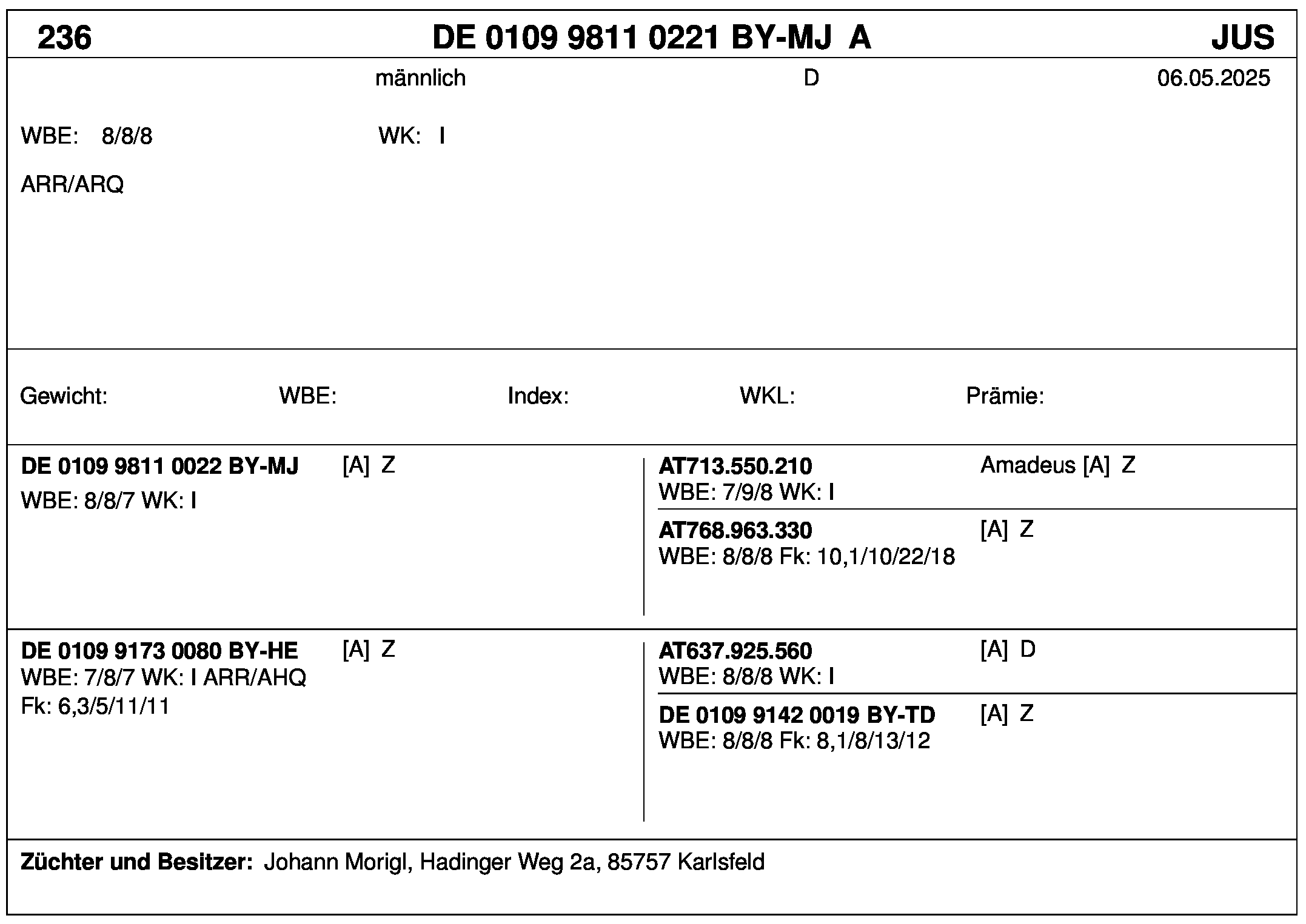 *** nicht für Herdbuchzüchter, nicht stationsgeprüft