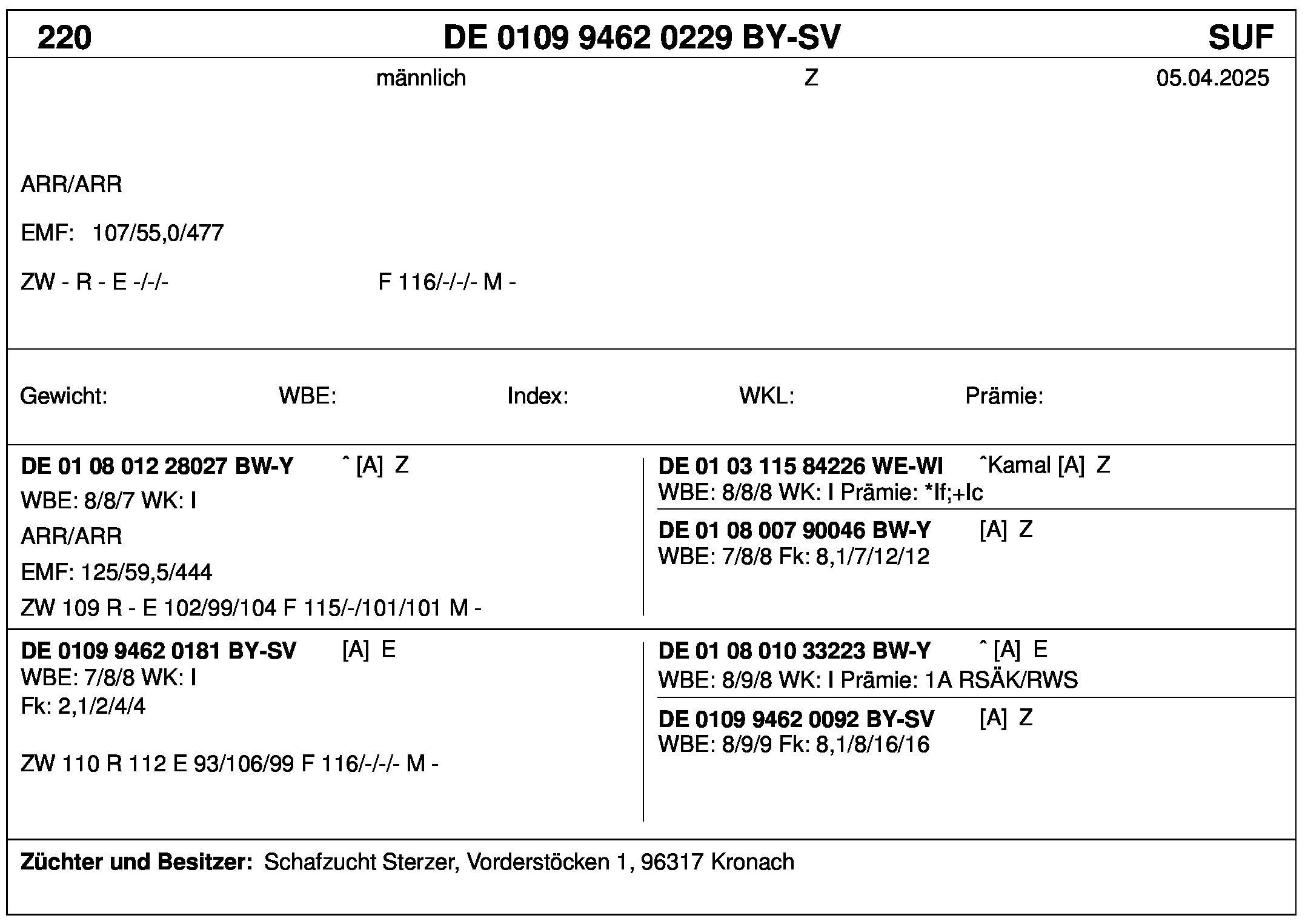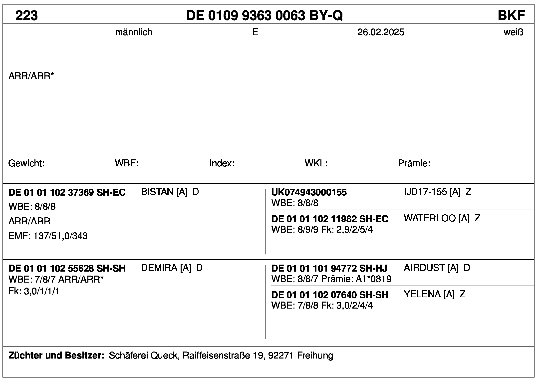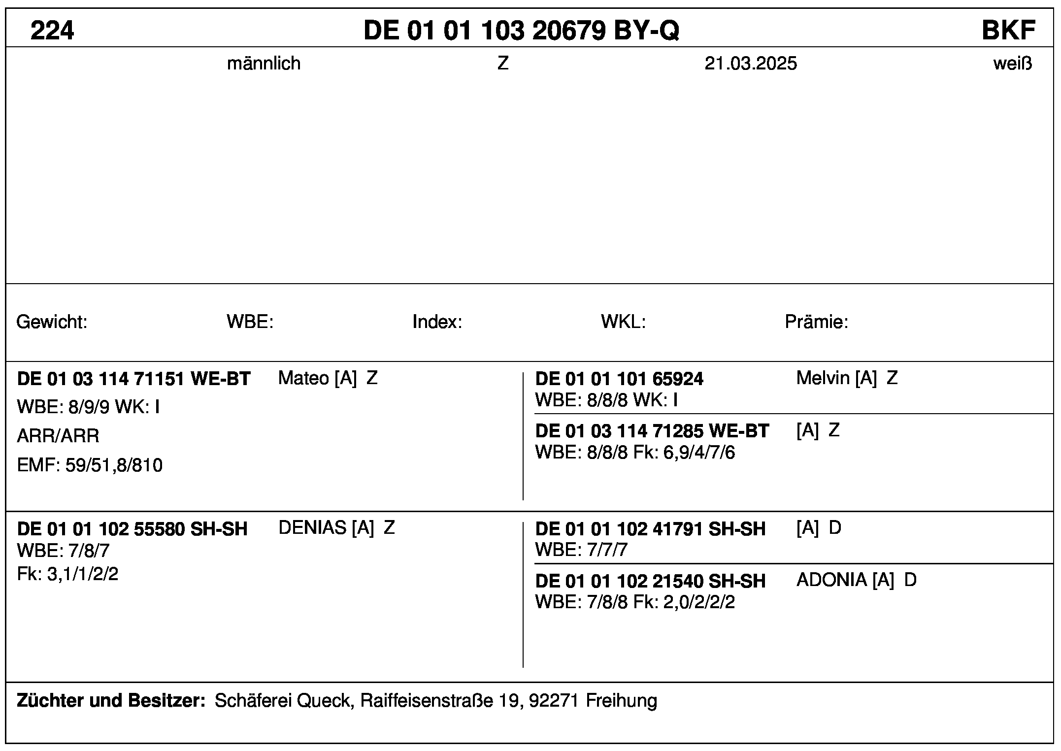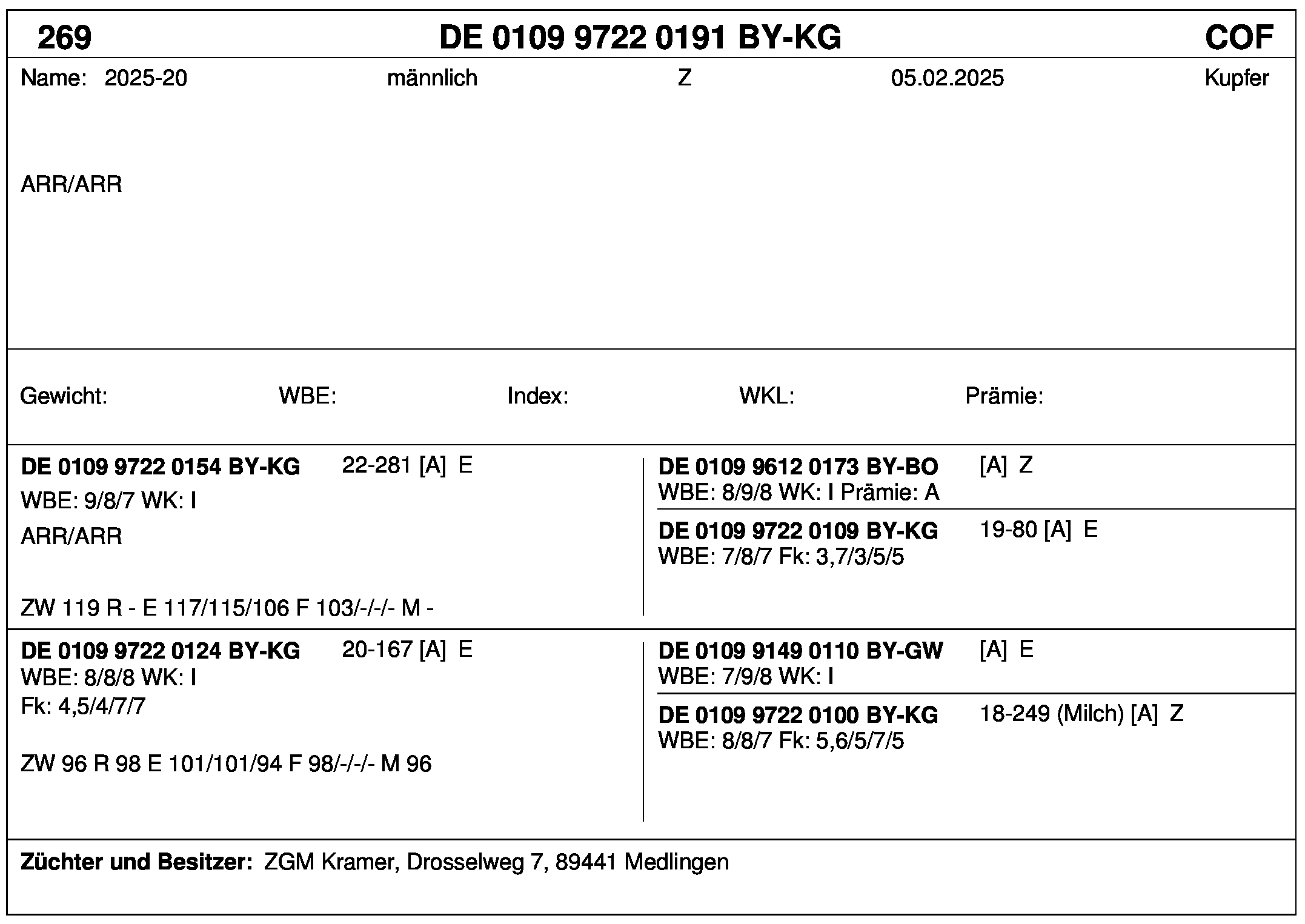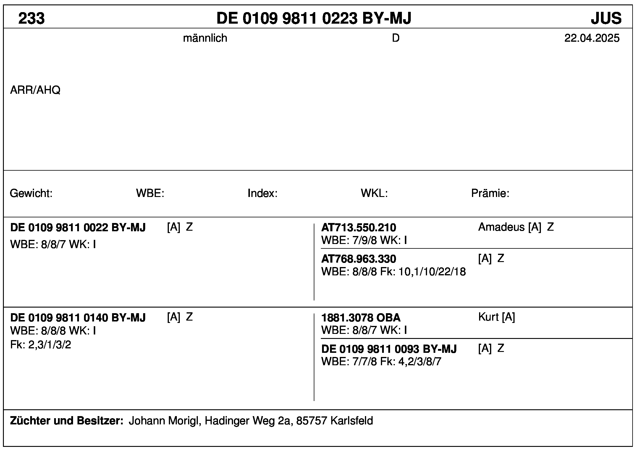 *** nicht für Herdbuchzüchter, nicht stationsgeprüft